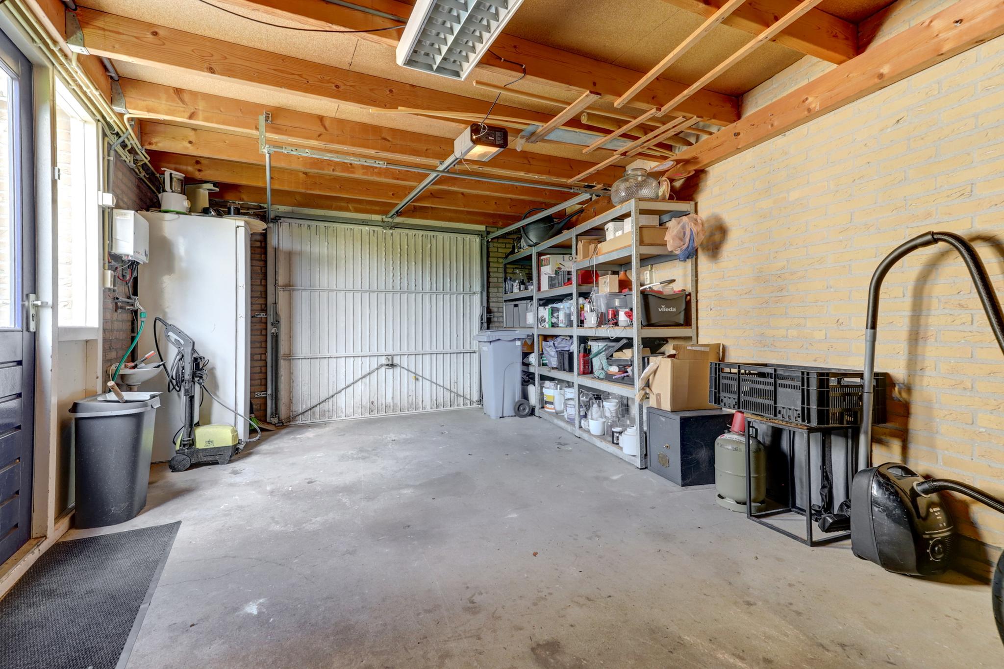 Een ruime hobbygarage o.a. met een elektra- en wateraansluiting.