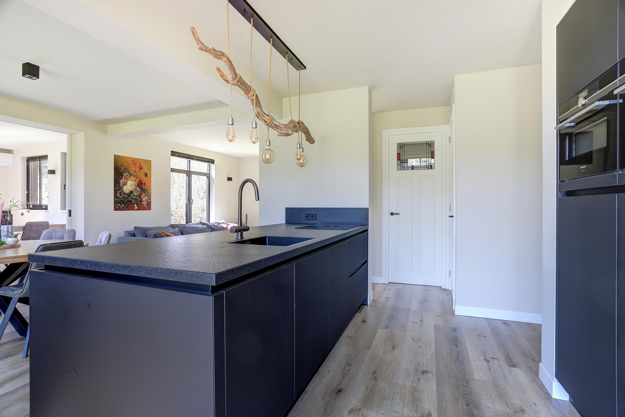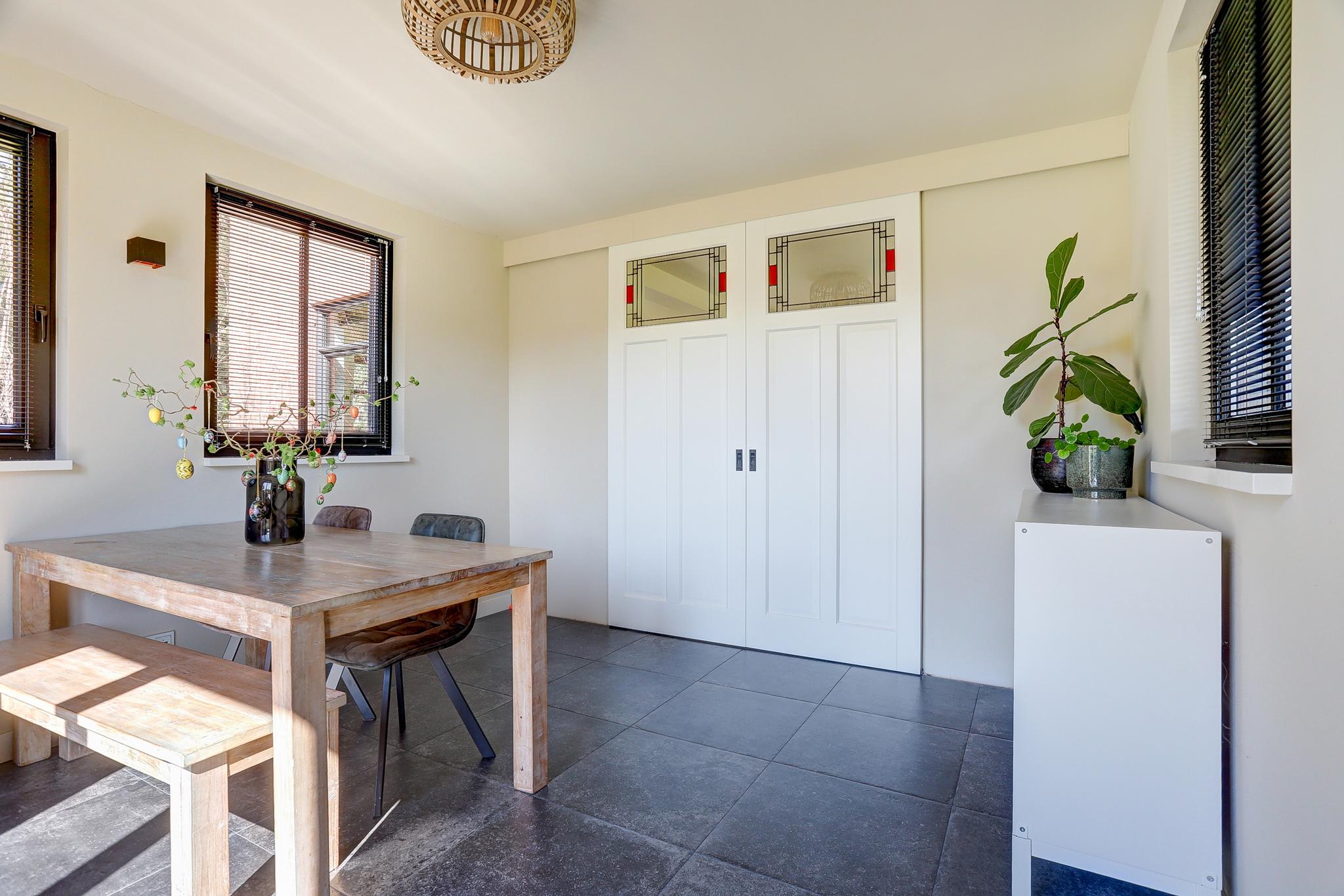 Begane grond: hal met meterkast en toegang tot de provisiekelder. Een speels ingedeelde woonkamer met erker aan de voorzijde en openslaande tuindeuren naar het terras. Een open keuken met o.a. een kookeiland en een complete en luxe keukenopstelling. De aangebouwde tuinkamer biedt een extra woonruimte die voor verschillende doeleinden te gebruiken is. De bijkeuken met de aansluitingen van het witgoed, toiletruimte en technische ruimte.