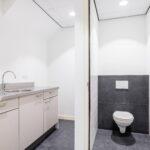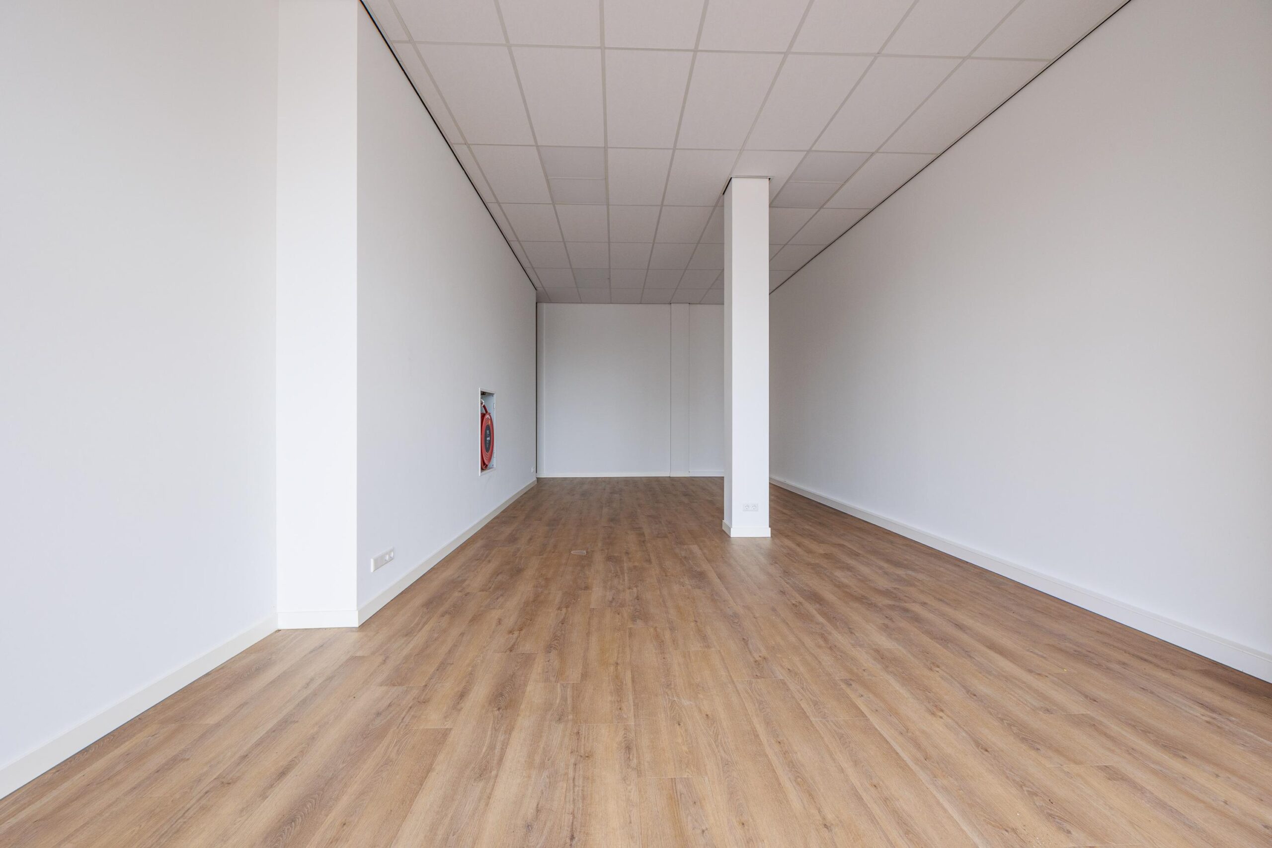 De kantoor-/ winkelruimte is voorzien van een pvc-vloer.