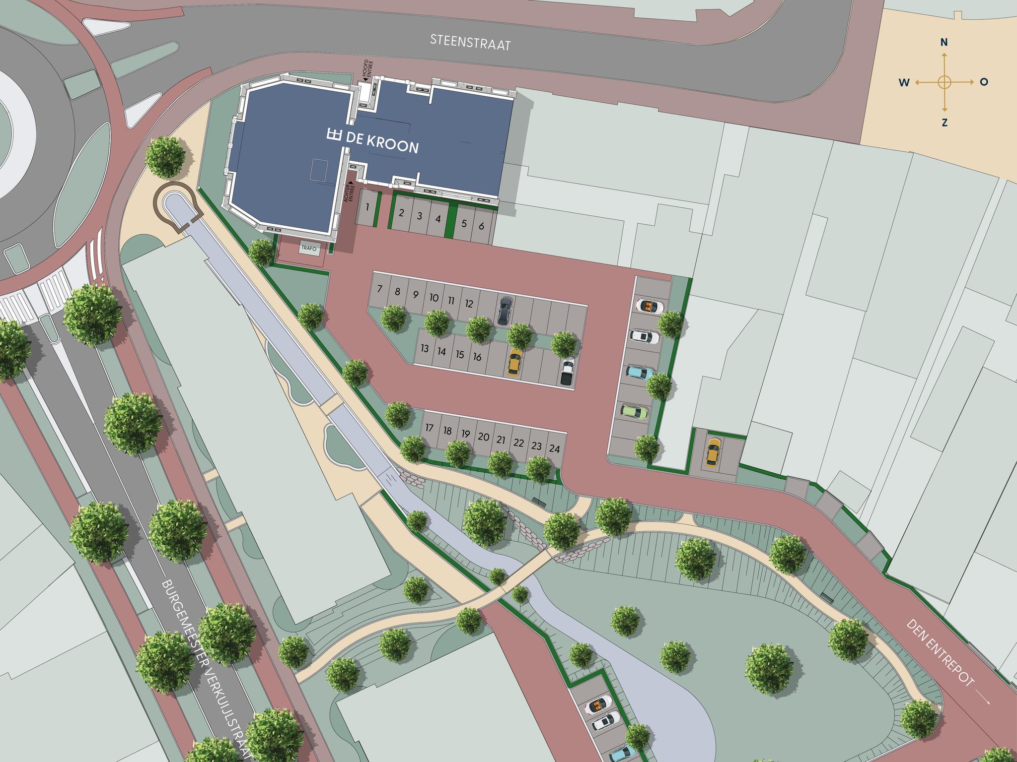 In De Kroon wordt het royaal wonen op een zeer bijzondere plek in het centrum van Boxmeer. Het gebouw met daarin 16 appartementen vormt de spreekwoordelijke kroon op de karaktervolle Steenstraat. De historiserende architectuur van het plan sluit perfect aan op het Boxmeer van weleer. De appartementen zelf zijn helemaal van deze tijd: duurzaam, comfortabel en van alle gemakken voorzien.