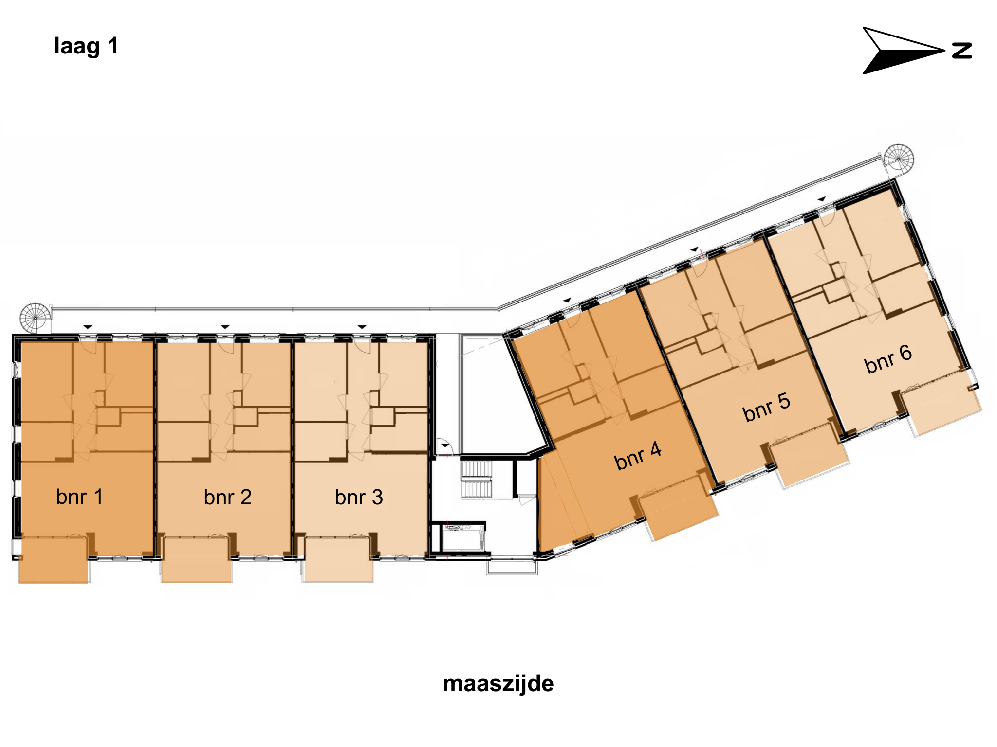 Met de auto of fiets rijd je de binnenplaats op, waarna je beiden veilig parkeert. De fiets(en) in jouw eigen berging onder het gebouw, en hier is ook een overdekte parkeerplaats voor de auto. In de centrale entreehal pak je de trap of lift naar de voordeur van deze woningen, grenzend aan de open galerij. Alle appartementen zijn lekker licht en de open keuken zorgt voor een fijne verbinding tussen wonen, koken en eten. De twee slaapkamers, badkamer - voorzien van een douche, wastafel en toilet - en een tweede separaat toilet bereik je via de hal. Maar de kers op de taart is toch wel het balkon, dat fantastisch uitzicht biedt over de Maas.