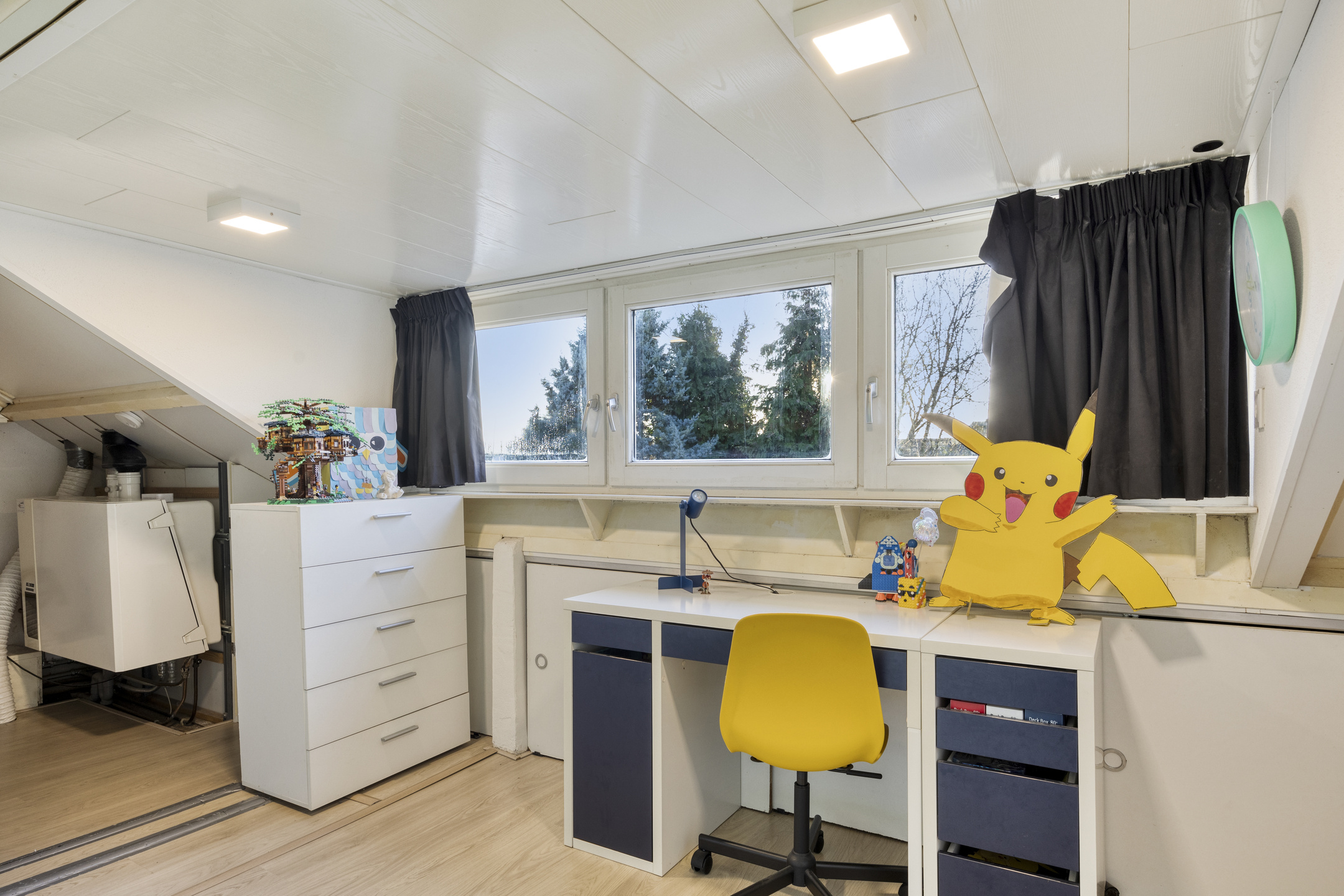 2e verdieping: middels een vaste trap te bereiken voorzolder met de opstelling van de cv-ketel, zolderkamer met dakkapel.
