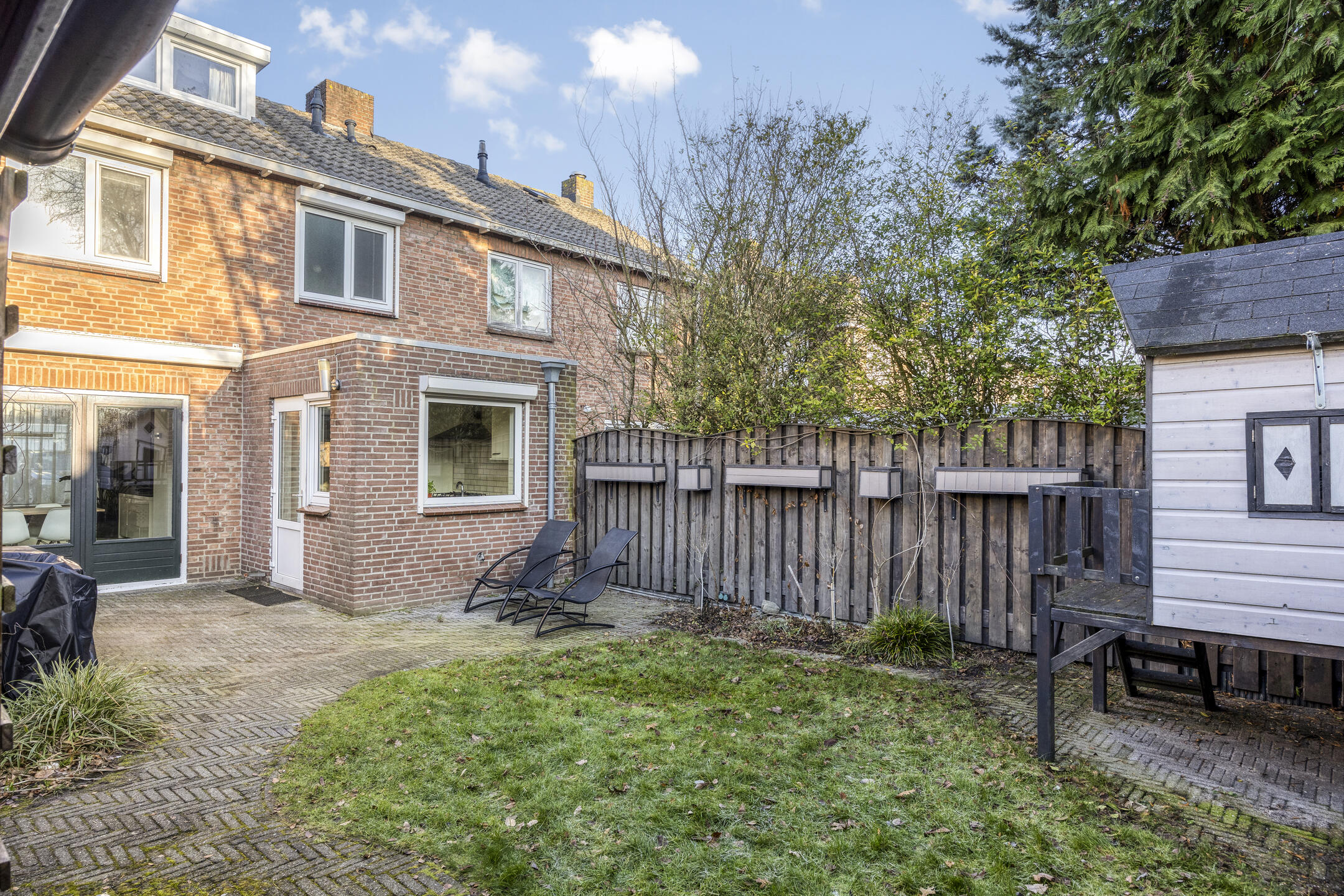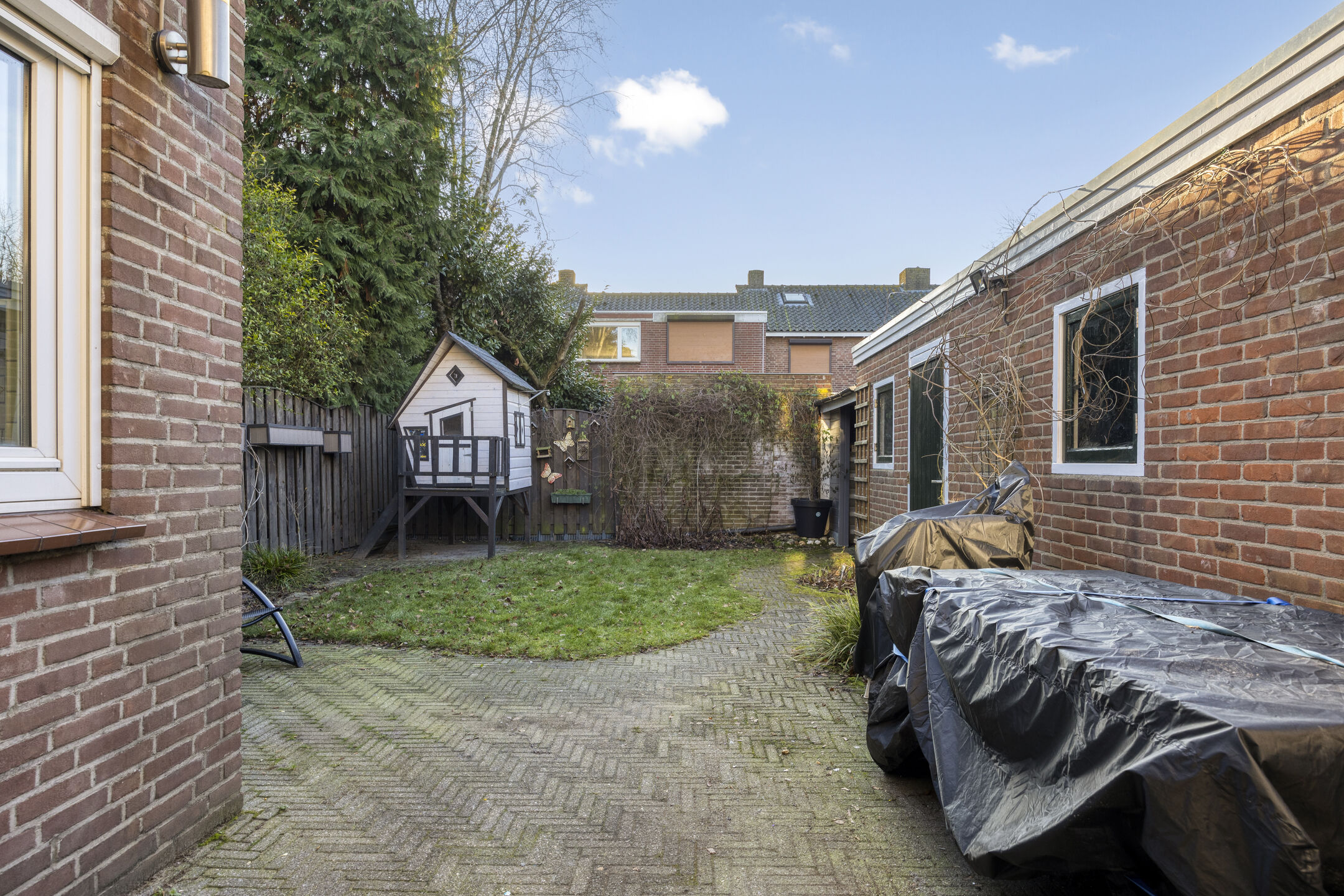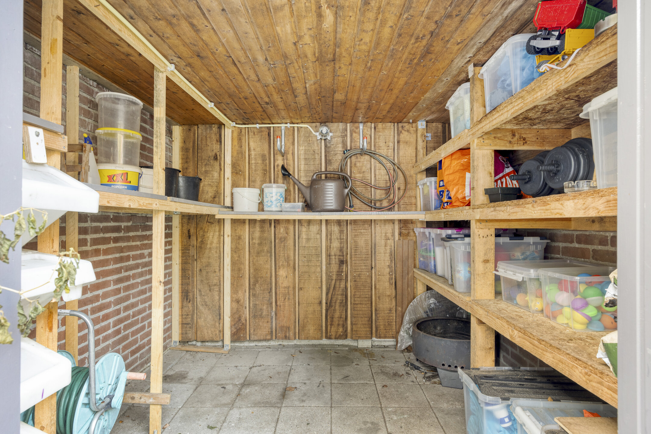 De privé gelegen achtertuin beschikt over een overkapping met opslagmogelijkheden.