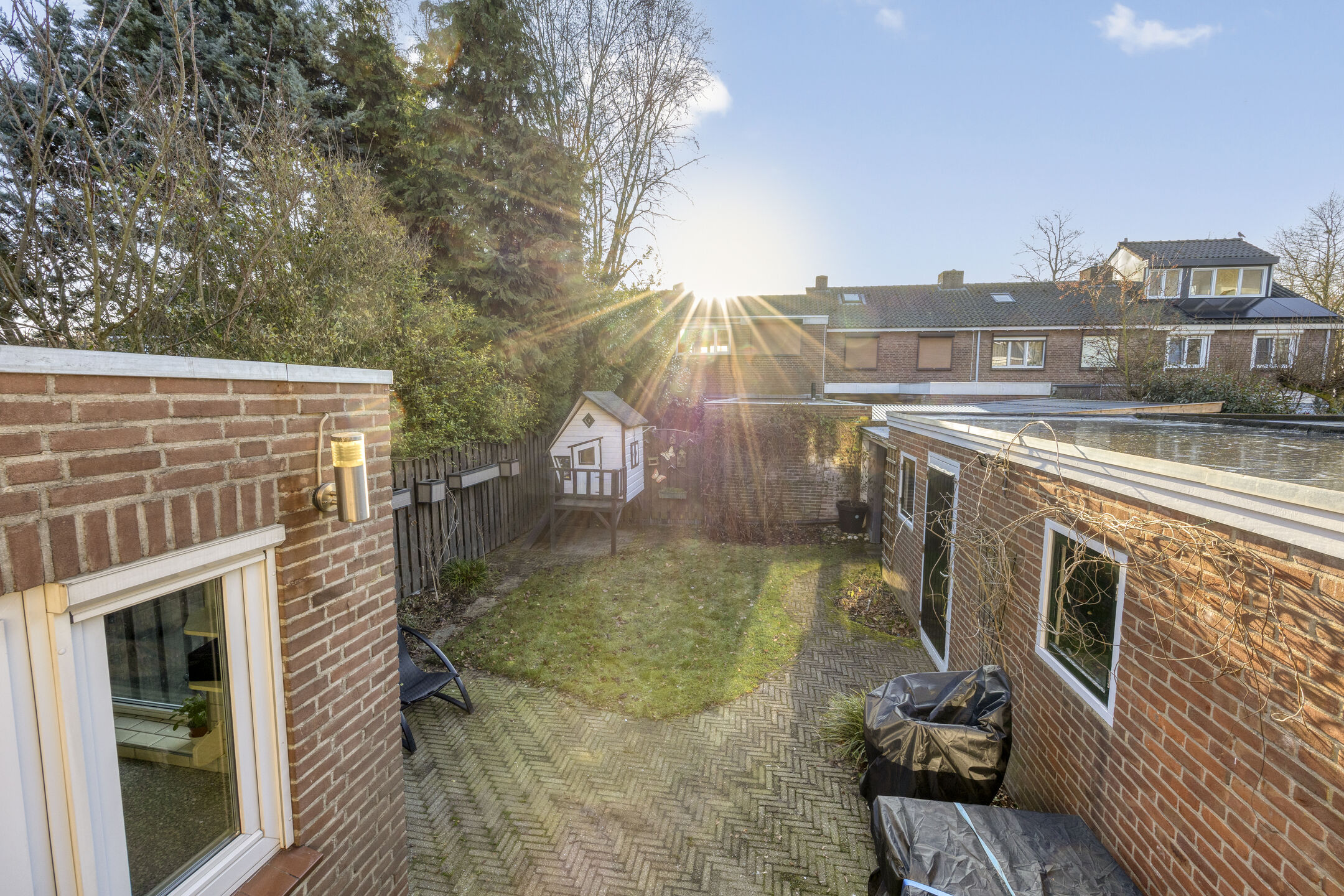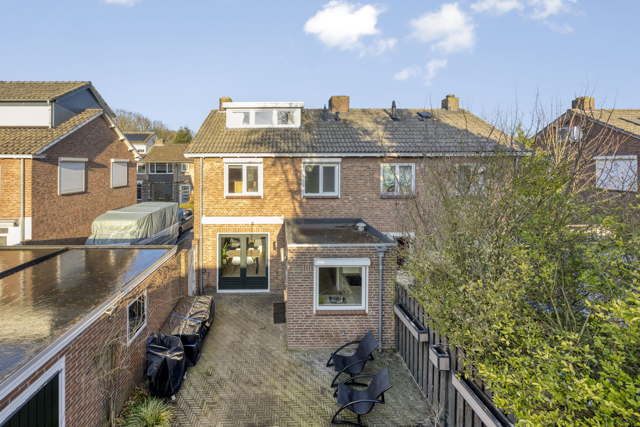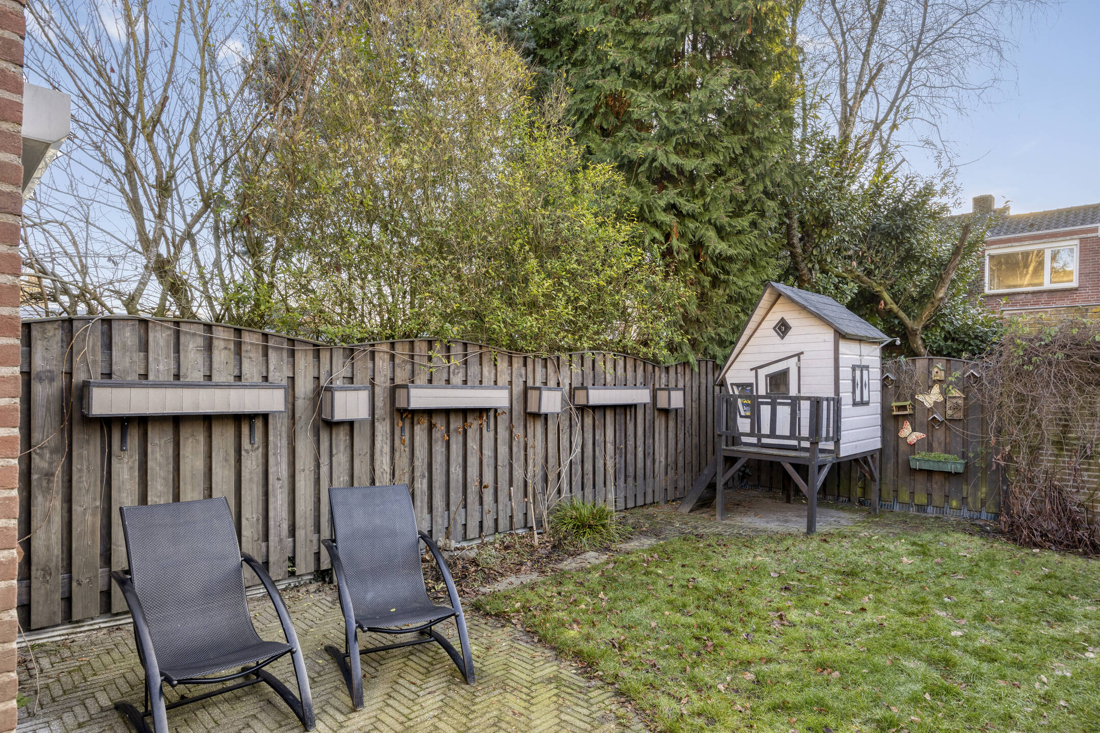 De privé gelegen achtertuin beschikt over een overkapping met opslagmogelijkheden.