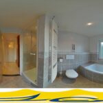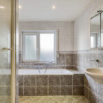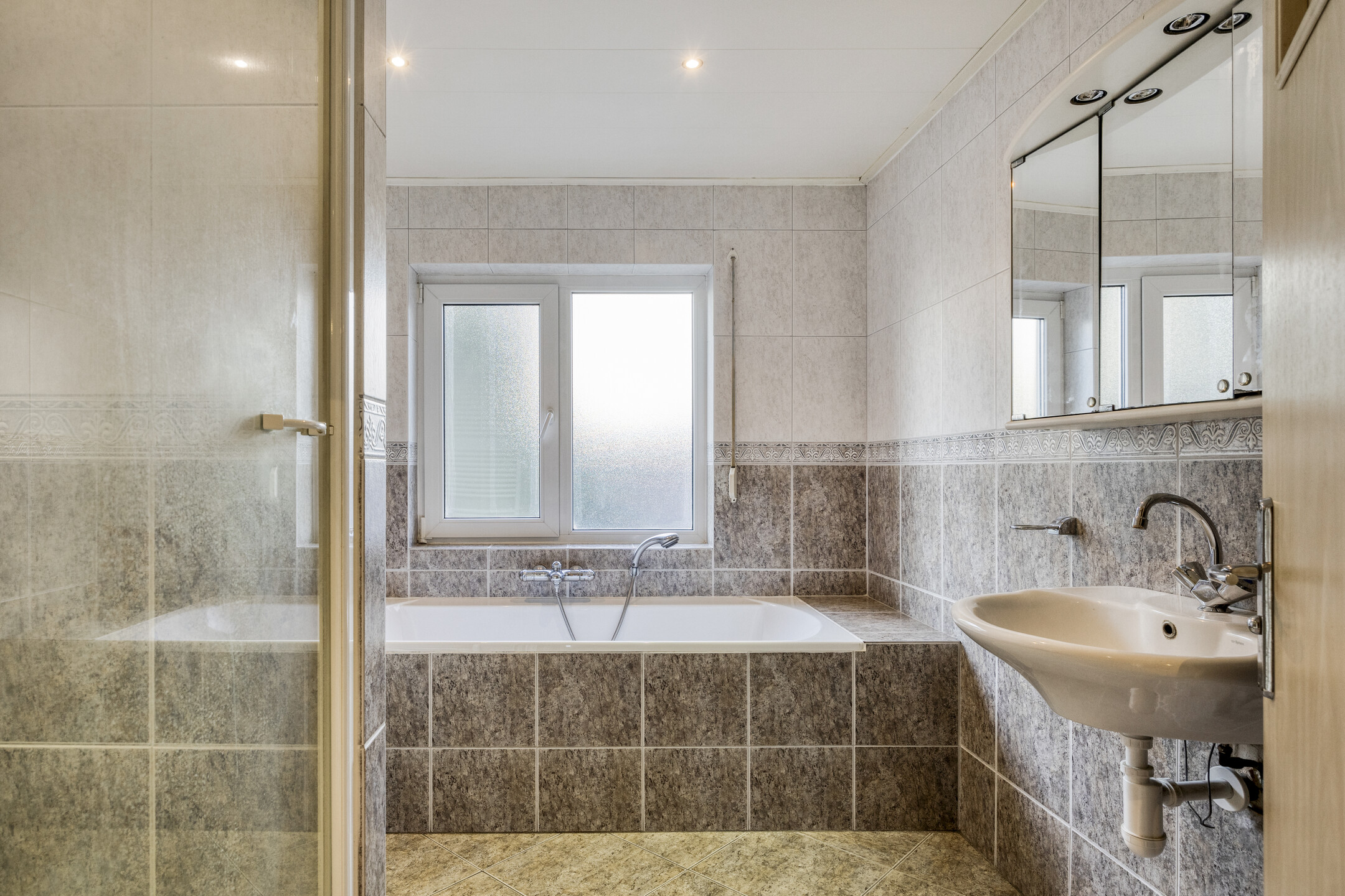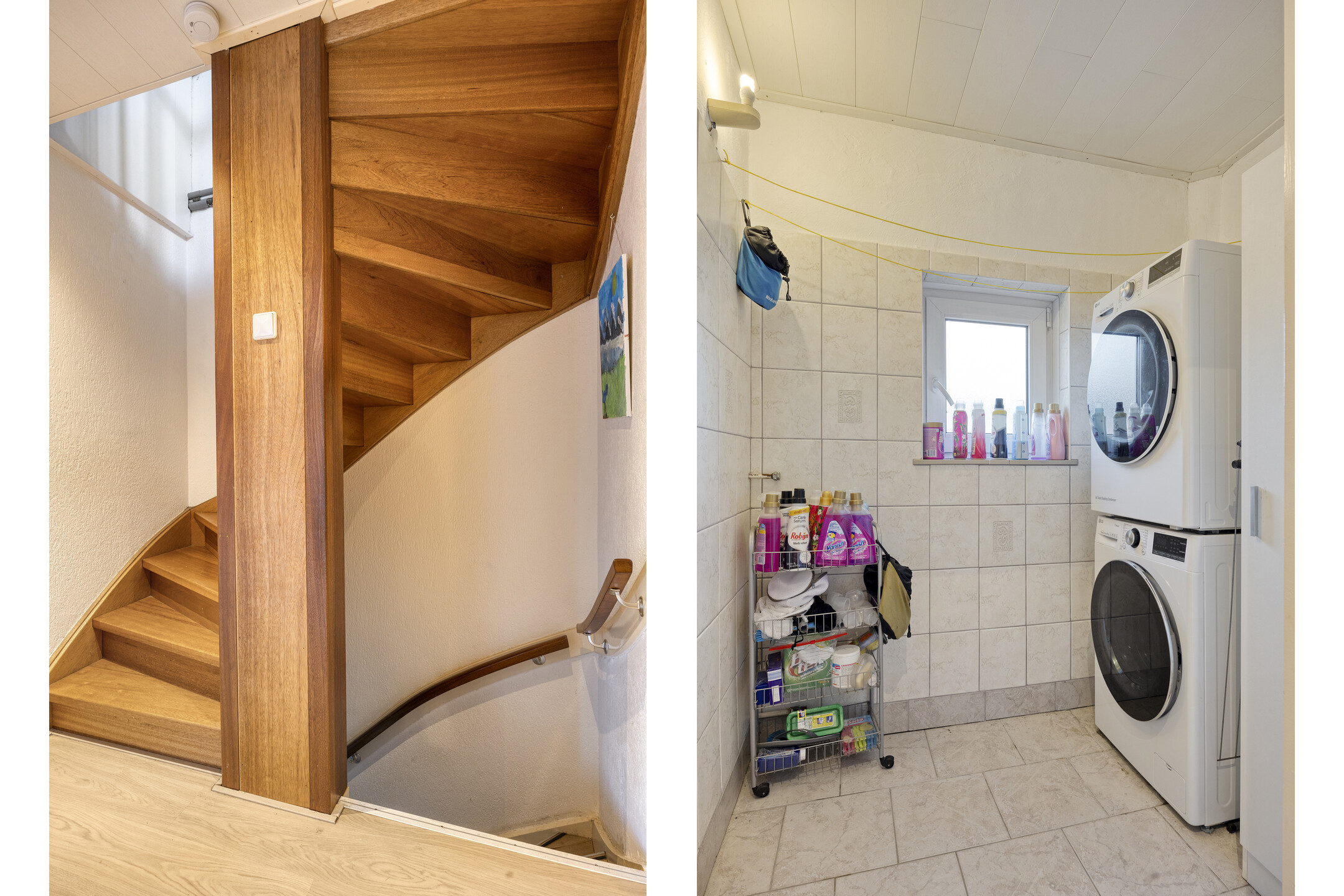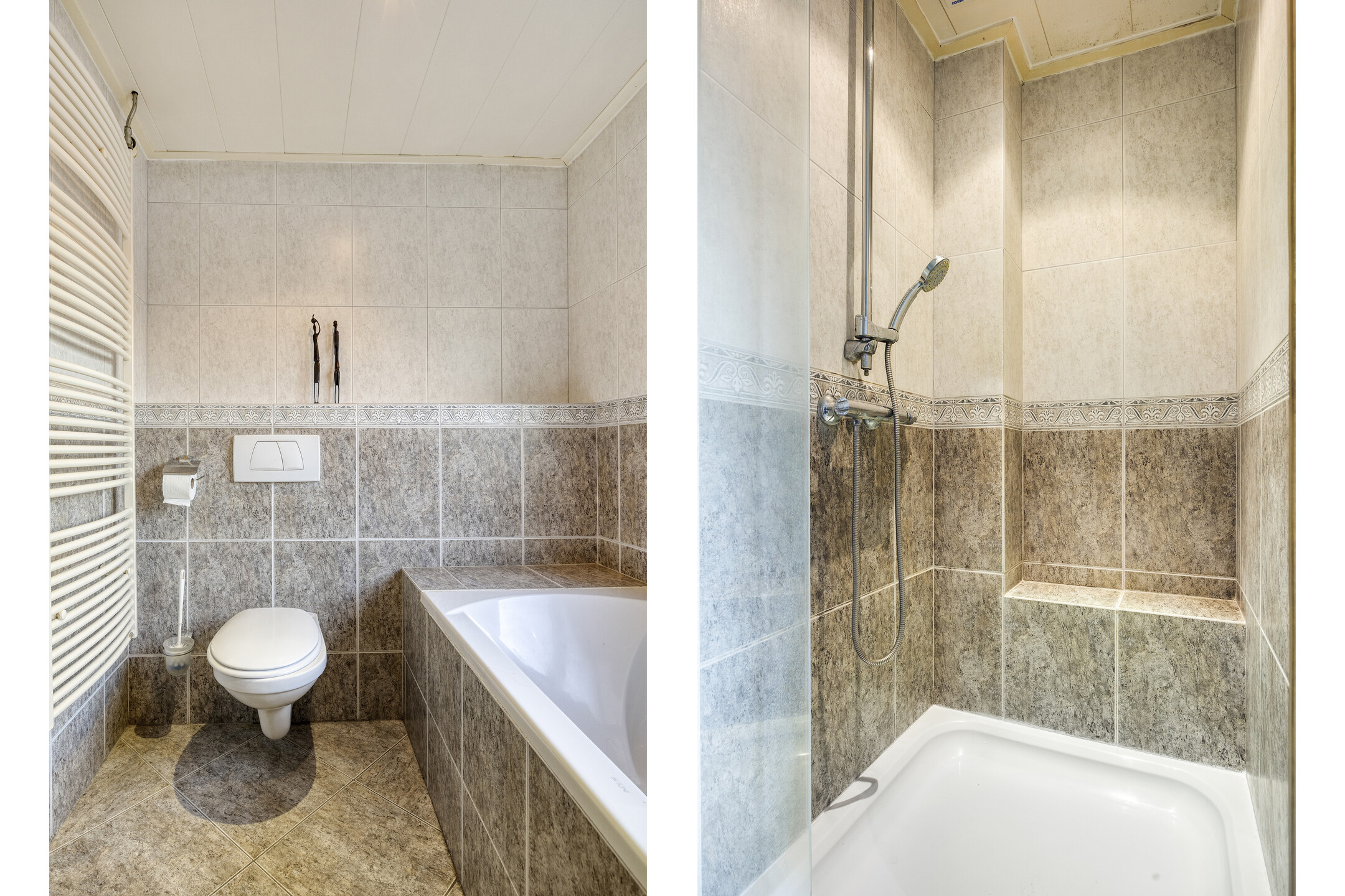 1e verdieping: overloop, 2 slaapkamers, wasruimte, badkamer voorzien van een ligbad, douche, wastafel en toilet.