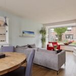 Begane grond: hal met vernieuwde meterkast, praktische trapkast, nieuw ingerichte toiletruimte met wandcloset en fonteintje. Woonkamer met een royale erker en een laminaat vloer en aansluitend een open keuken met een moderne en complete keukeninrichting.