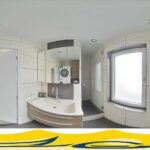 De keukenopstelling is voorzien van een 5-pits inductiekookplaat, afzuigkap, koelkast, quooker, combi-stoomoven, vaatwasser en spoelbak.