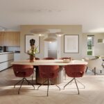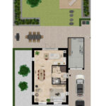 Deze woning krijgt een warme, bruin gemêleerde gevelsteen met witte kaders rondom de ramen, wat het klassieke karakter versterkt. De woonkamer lig aan de straatzijde en biedt uitzicht op de voortuin. De leefkeuken bevindt zich aan de…