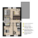De eerste verdieping biedt ruimte aan drie slaapkamers, een complete badkamer en een separaat tweede toilet. De badkamer is in basis voorzien van een douche en een wastafel. De hoofdslaapkamer strekt zich uit over de volledige breedte van de woning. In alle slaapkamers geniet je van fijn daglicht dankzij de mooie raampartijen. De royale zolder dankzij de gedraaide kap is geschikt als extra bergruimte, werk-, sport- of speelruimte. Op deze verdieping tref je de opstelplaatsen voor de wasmachine. Ook zijn hier de technische installaties opgesteld, die je woning super comfortabel, duurzaam en energiezuinig maken.