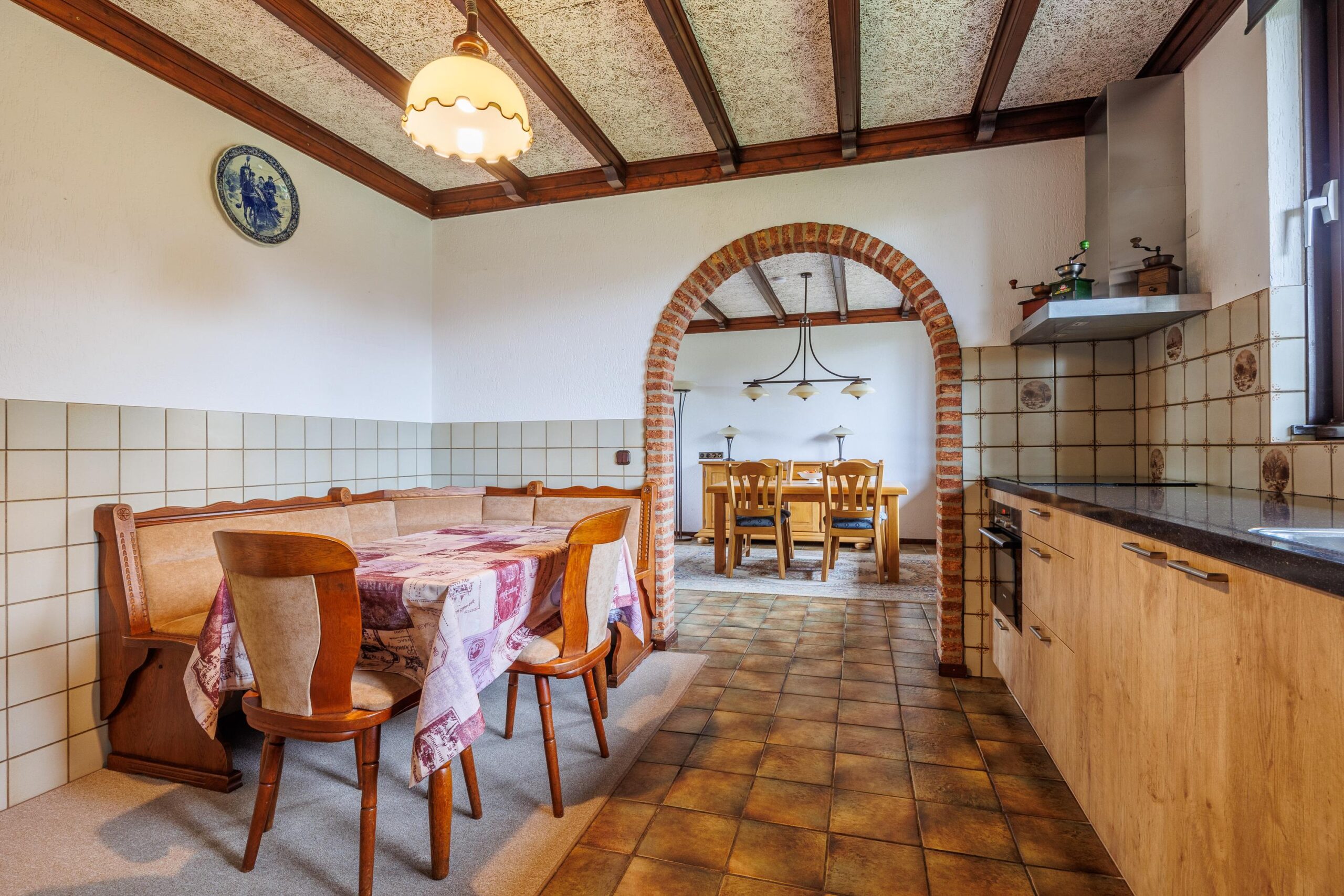 De keukenopstelling (2017) is voorzien van de volgende inbouwapparatuur: koelkast, inductiekookplaat, afzuigkap en een combimagnetron.