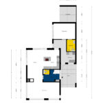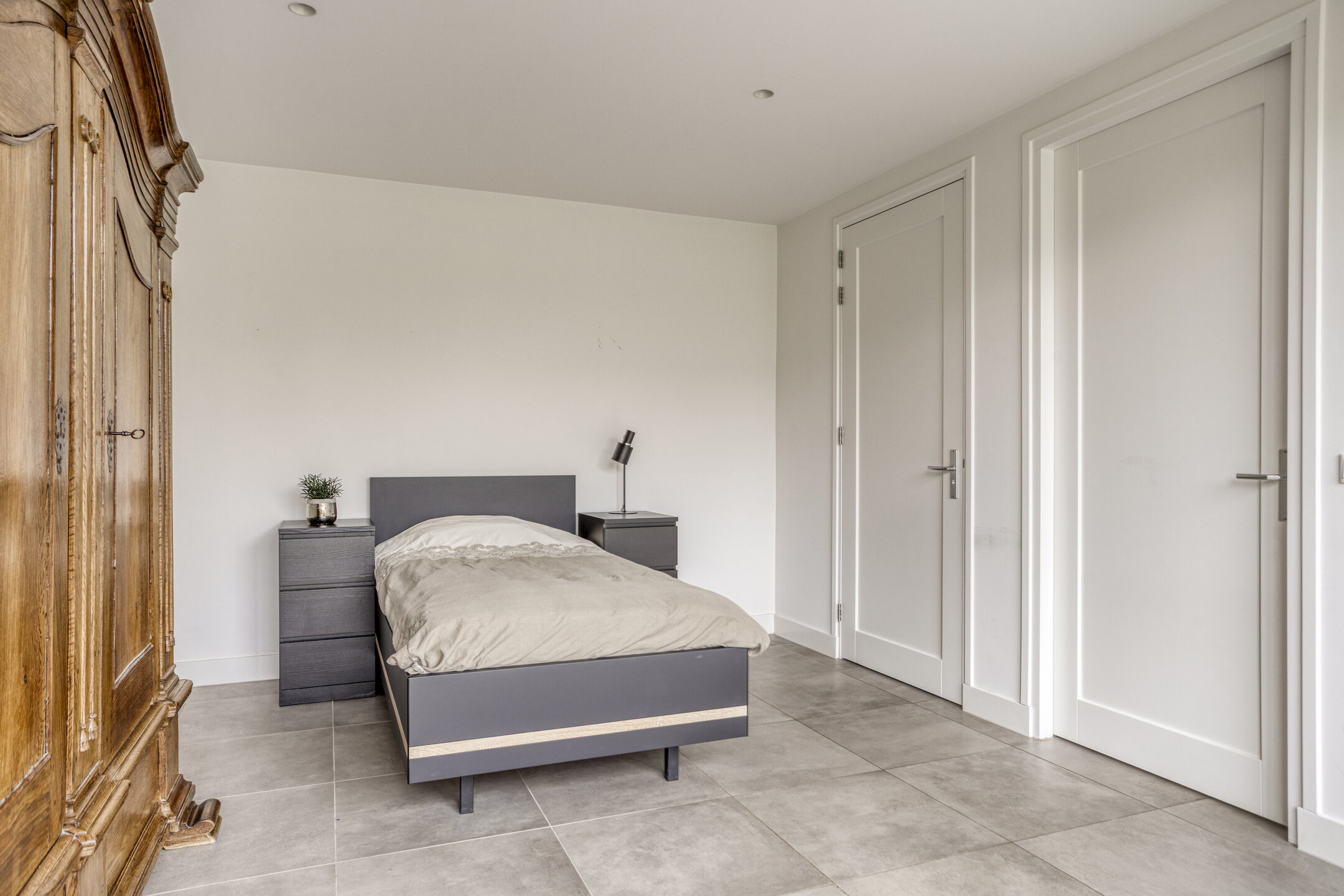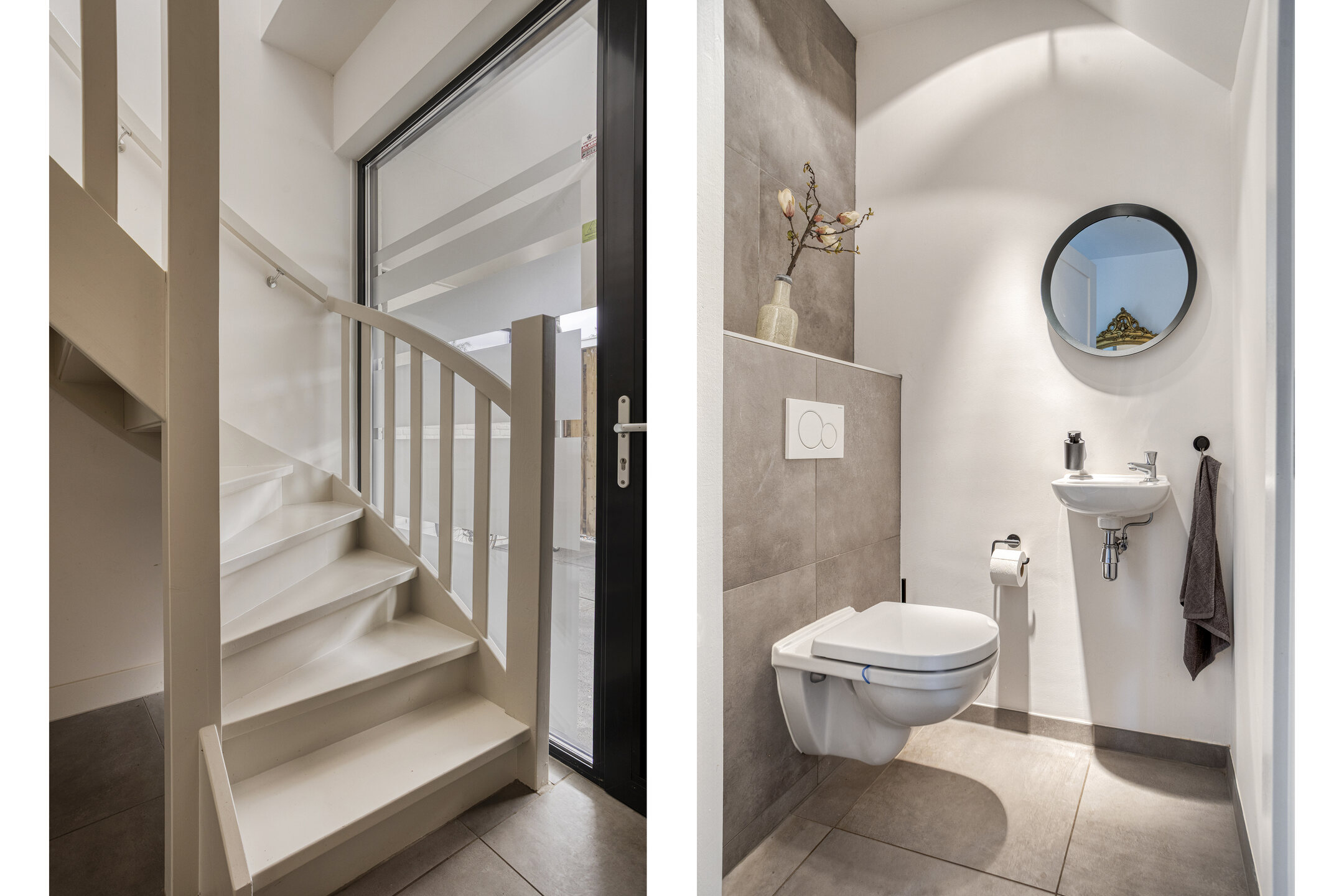 Begane grond: hal met meterkast en toilet met wandcloset en fonteintje. L-vormige woonkamer met airconditioning, een gashaard en 2x schuifpui naar de zij- en achtertuin. Keuken met luxe en complete inrichting met o.a. een kookeiland, ruime bijkeuken met keukenblok en aansluitingen t.b.v. de wasapparatuur. De slaapkamer is aan de achterzijde gelegen en biedt middels een schuifpui toegang tot de achtertuin, de badkamer is voorzien van een inloopdouche, wandcloset en wastafel met meubel.