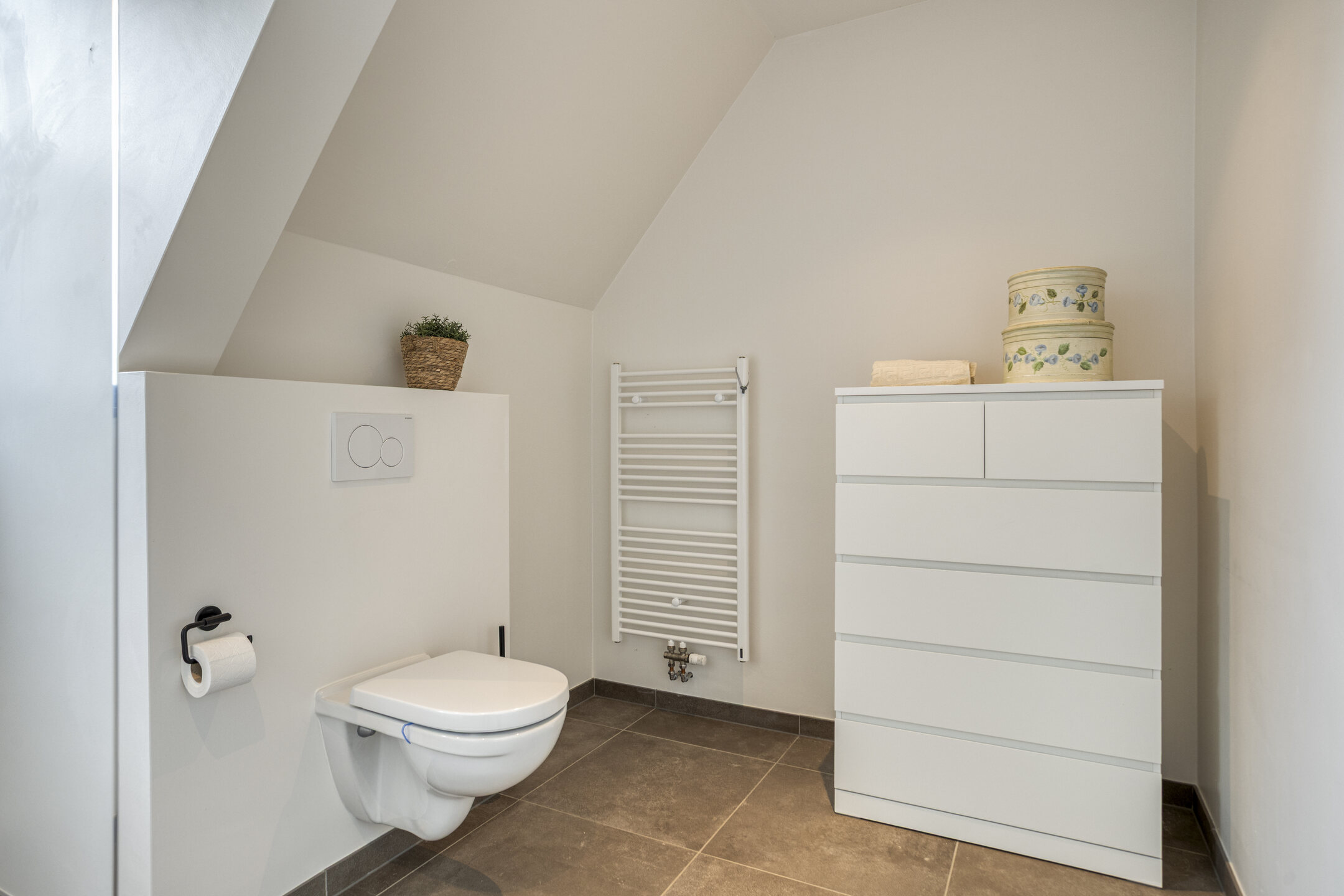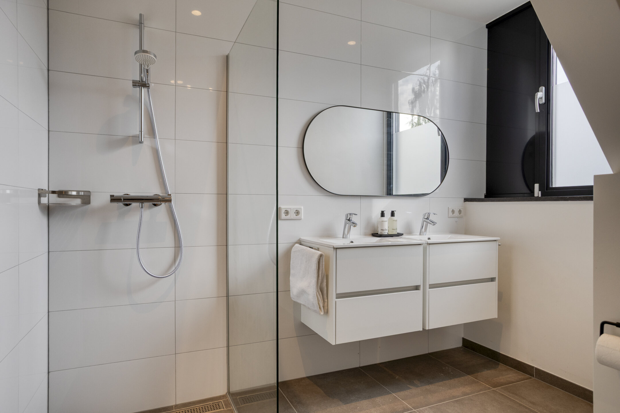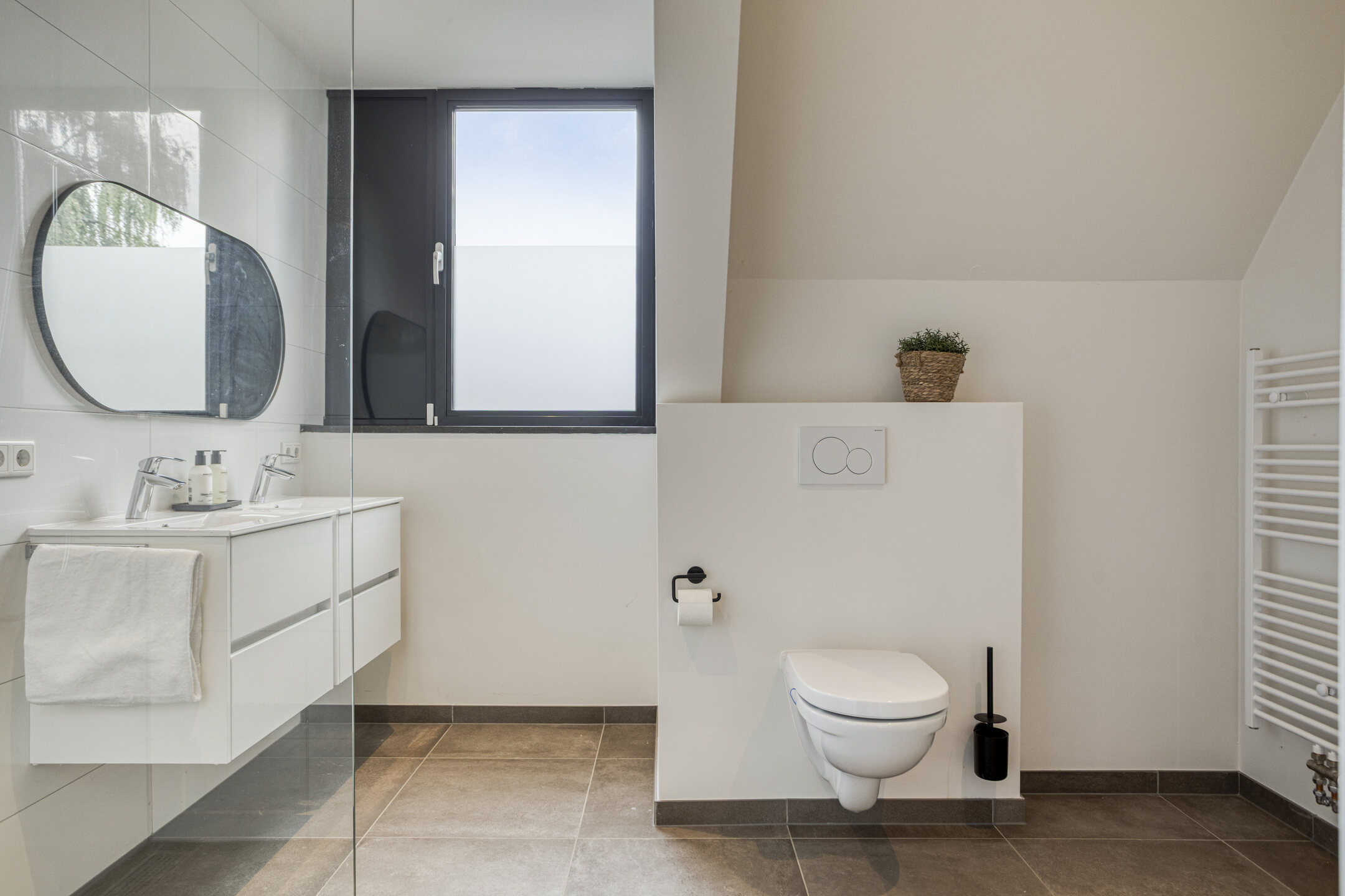 1e verdieping: overloop, 3 slaapkamers, cv-ruimte en badkamer voorzien van een inloopdouche, wandcloset en wastafel met meubel.