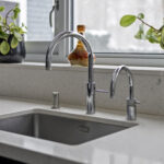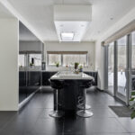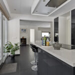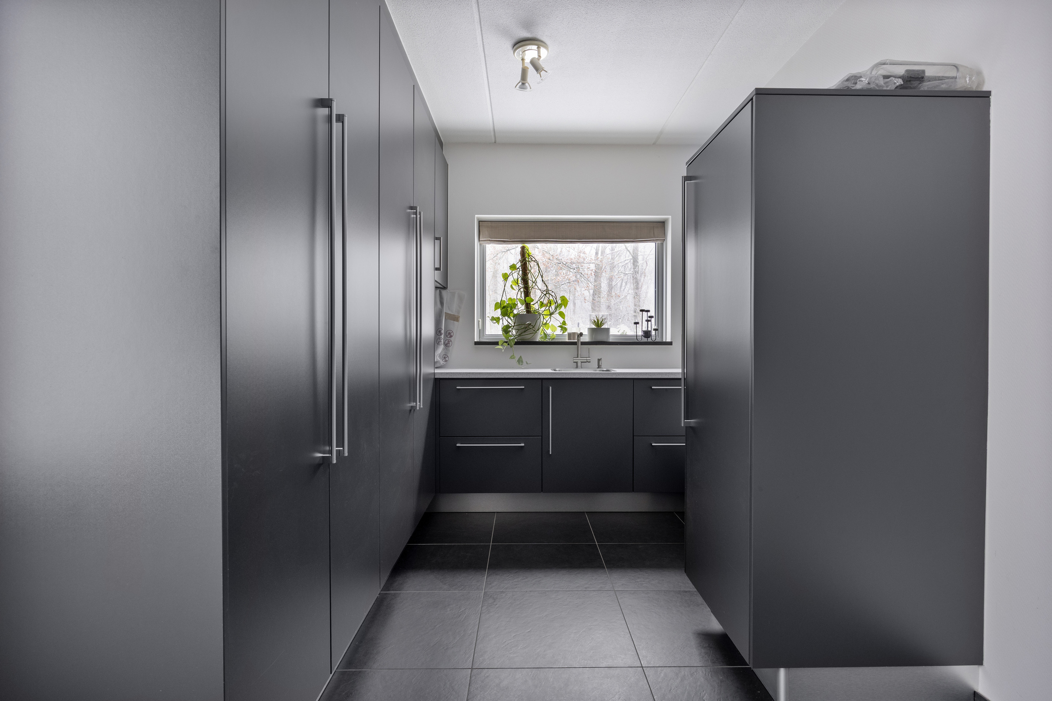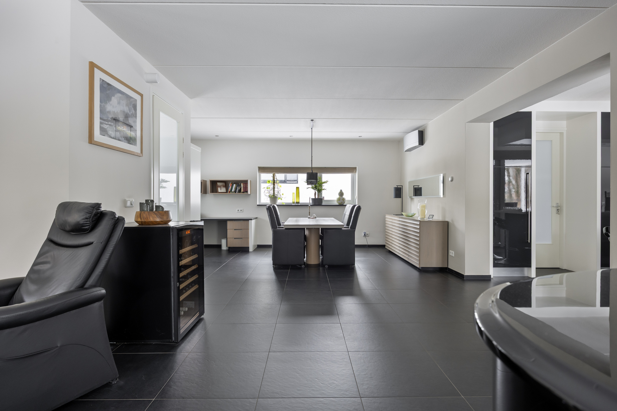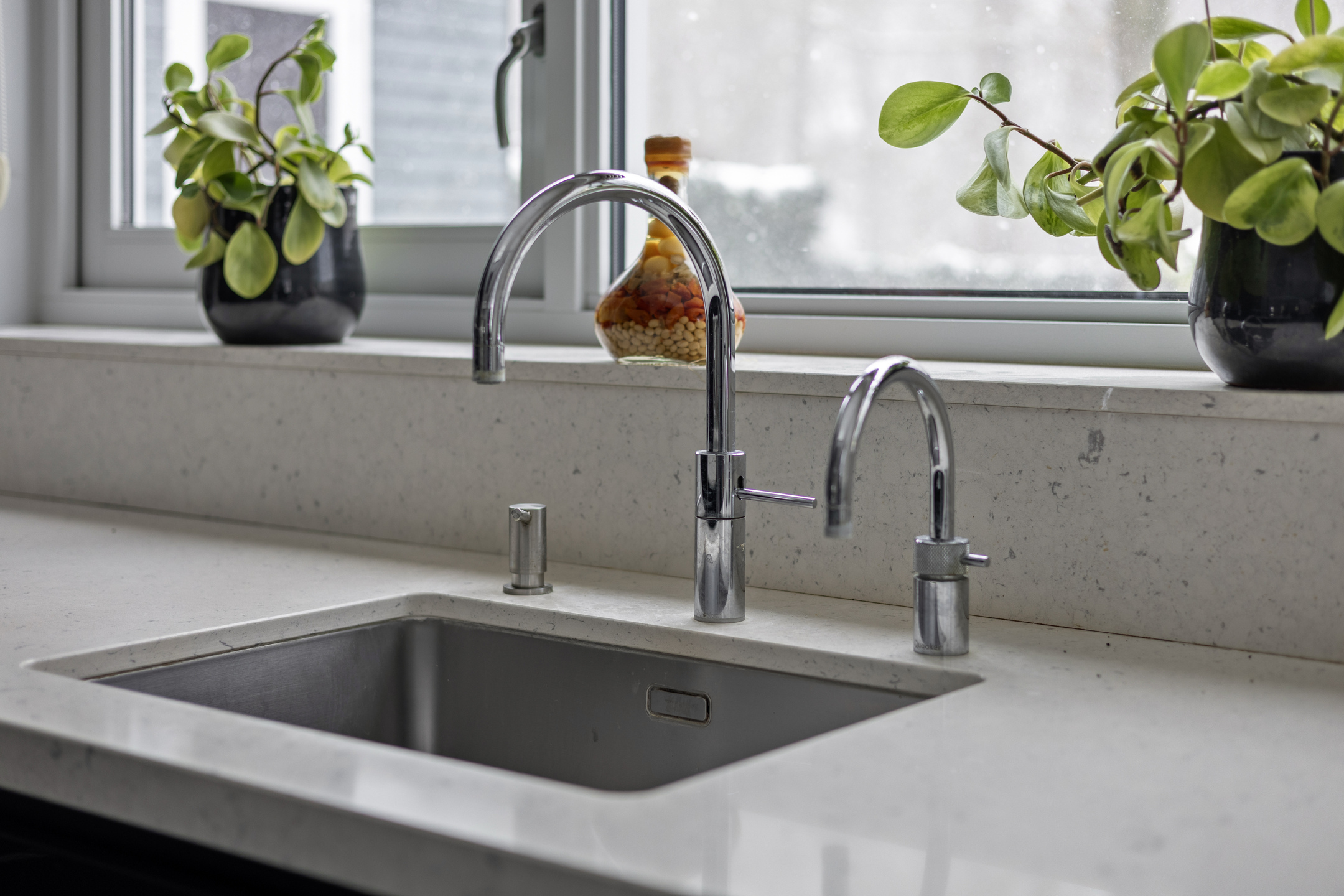 De keuken is voorzien van de volgende apparatuur; inductiekookplaat met wok-unit, koelkast, koffie-apparaat, combioven, stoomoven, vaatwasser en Quooker. Daarnaast is er een zitgedeelte aan het kookeiland.