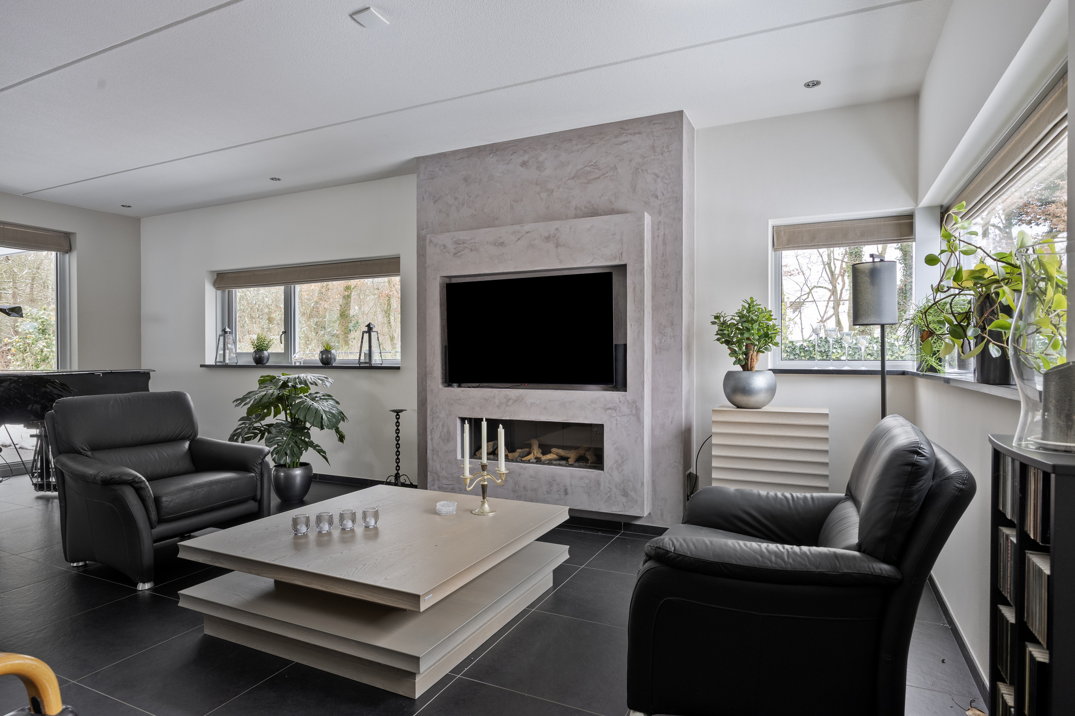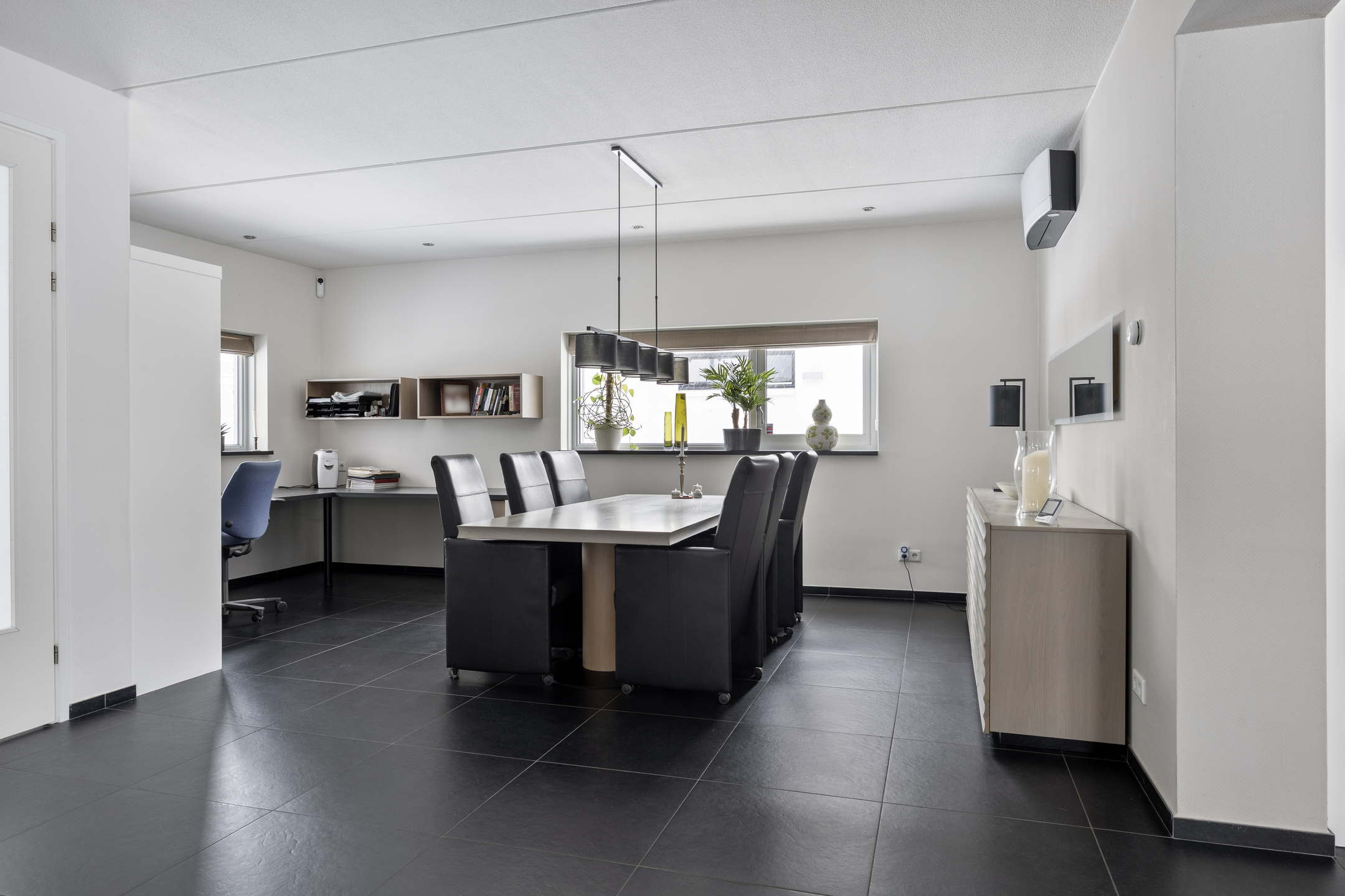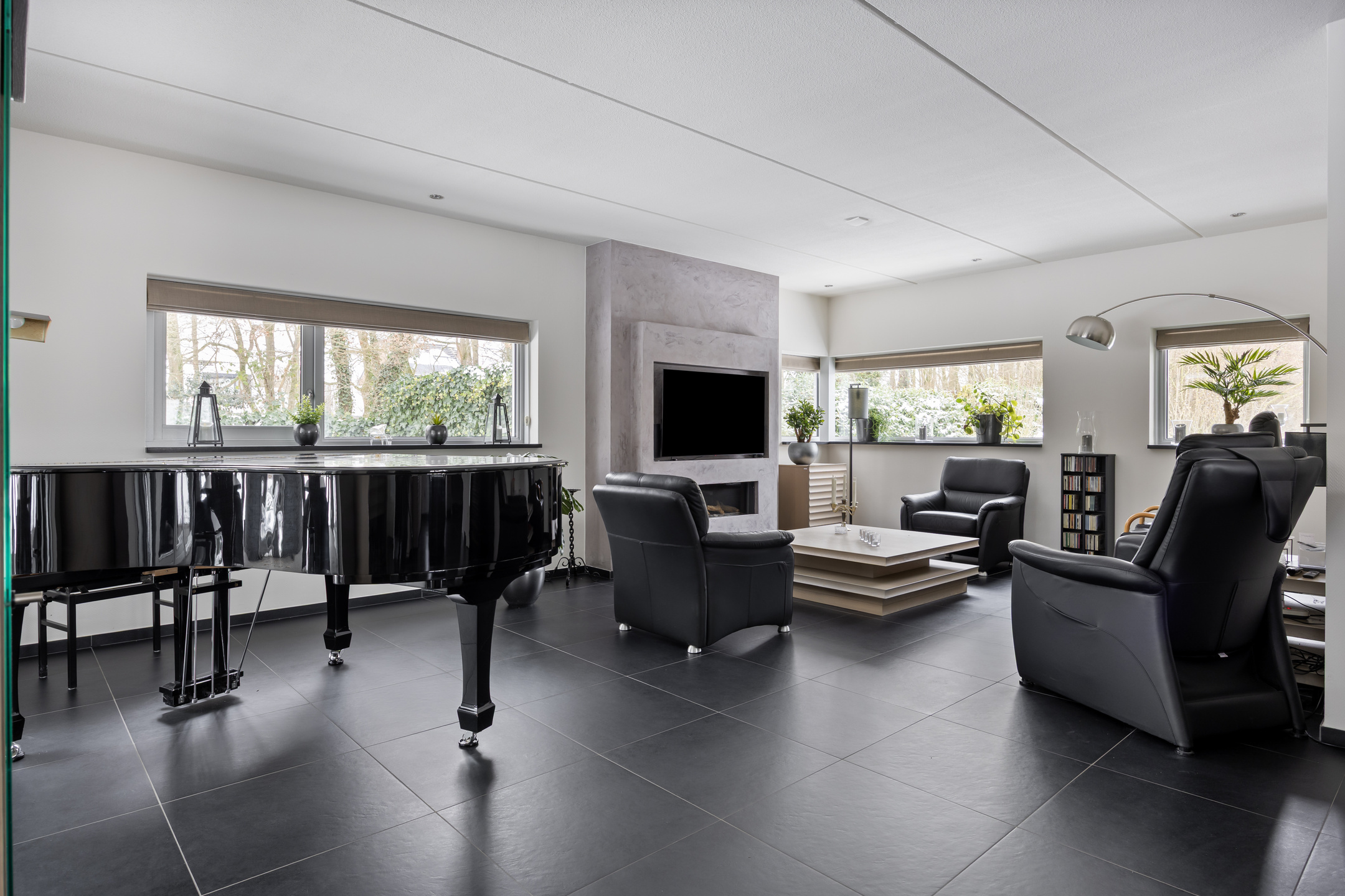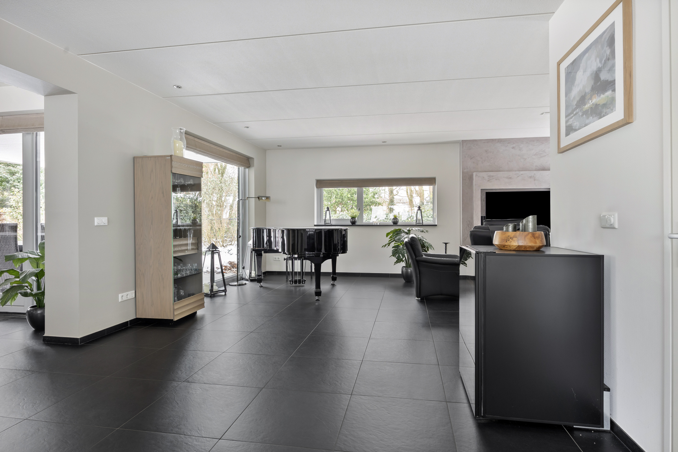 De begane grond is voorzien van een tegelvloer met vloerverwarming.
