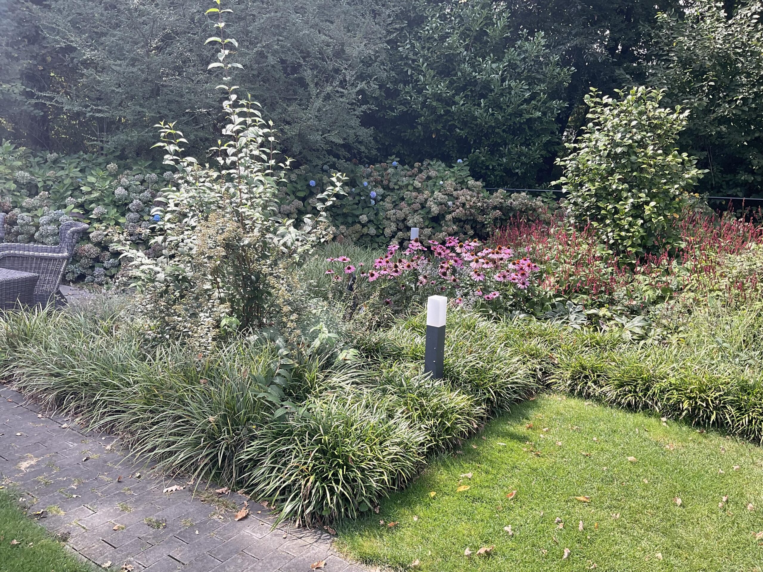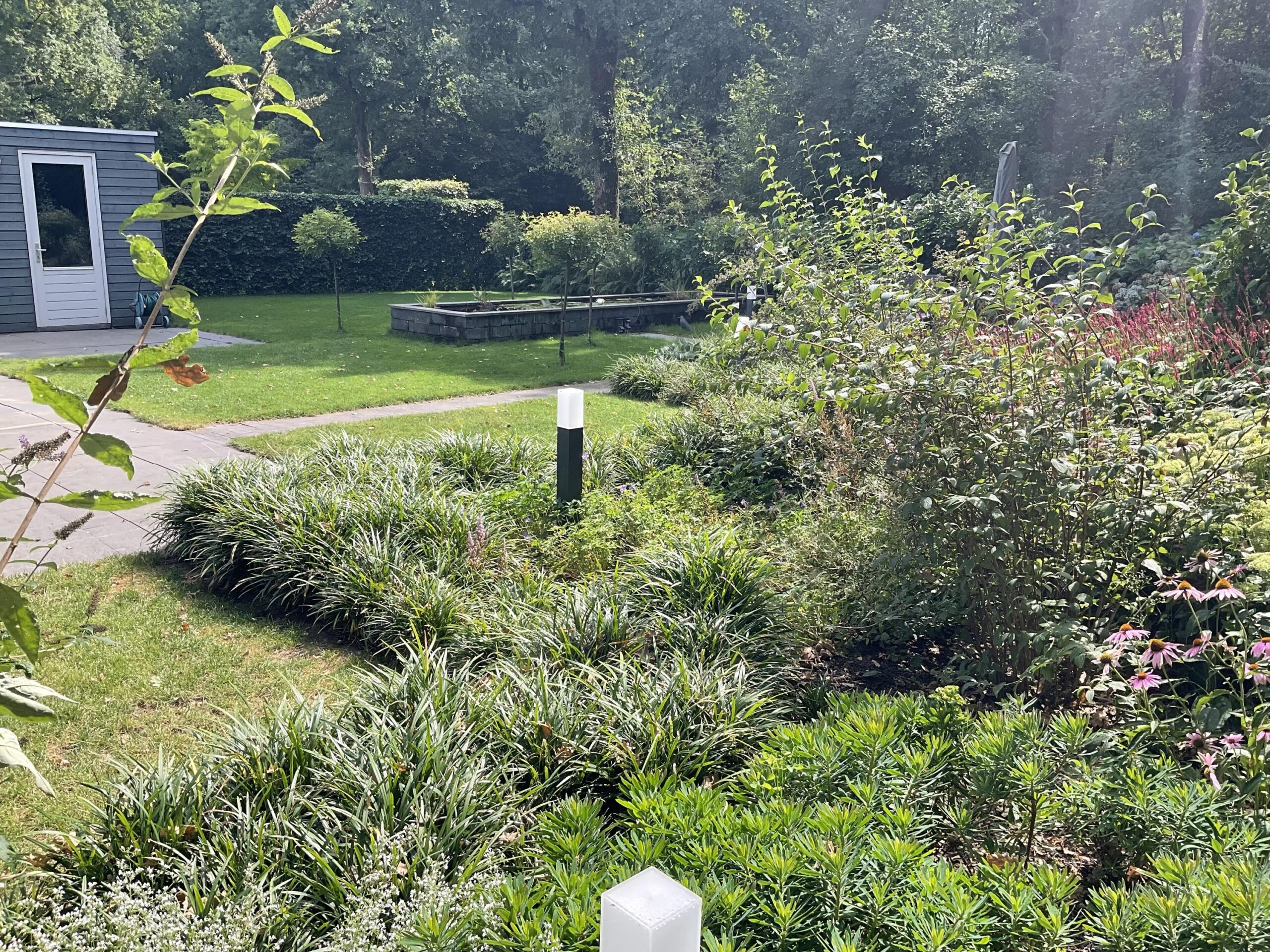 De tuin is voorzien van een automatische beregeningsinstallatie.