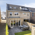 Begane grond: hal met meterkast, een zeer ruime woonkamer, uitgebouwd aan de achterzijde, met een fraaie lichtstraat en openslaande deuren naar het terras. De halfopen keuken is aan de voorzijde gesitueerd en ingericht met een complete keukeninrichting.…