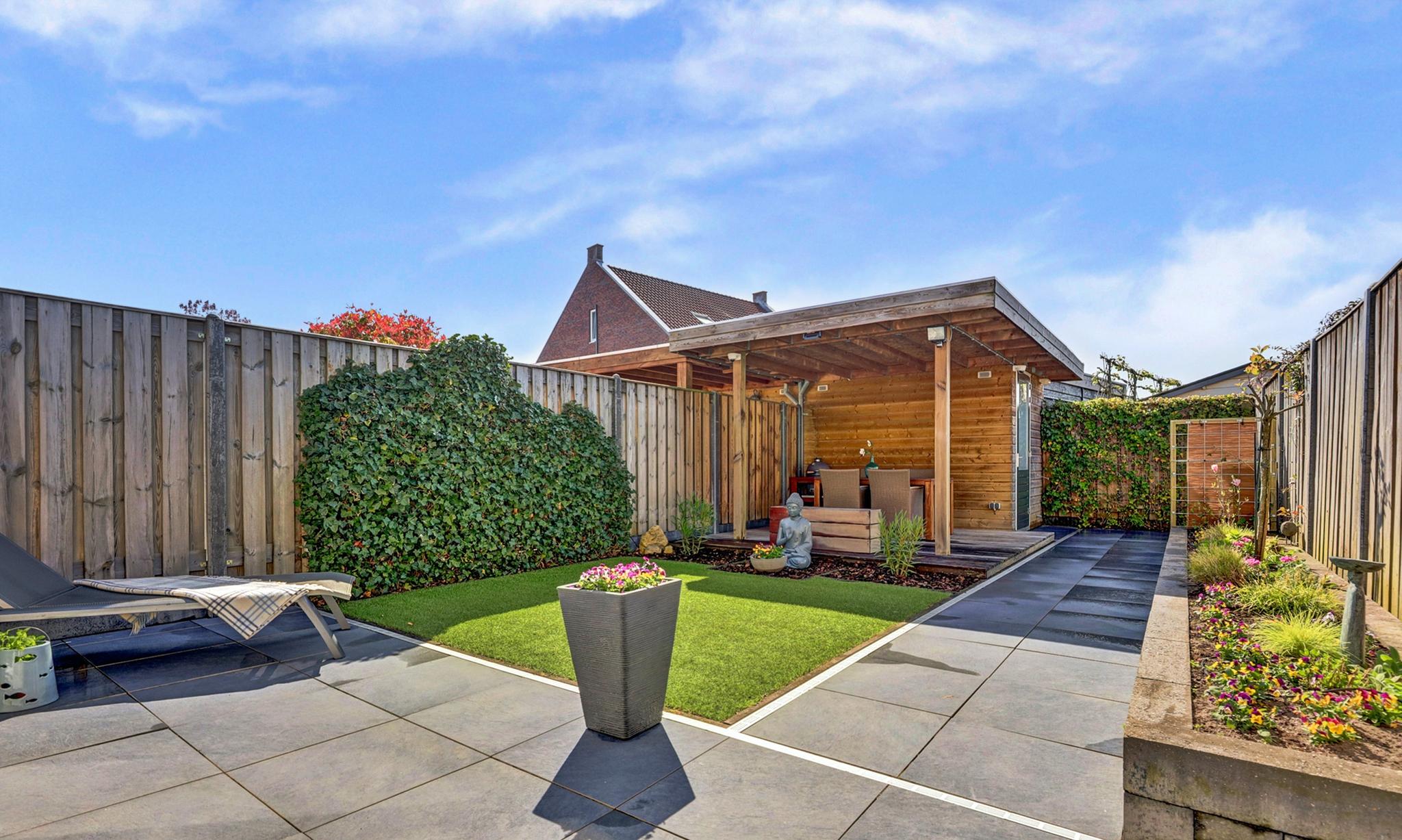 De royale achtertuin is gunstig gelegen t.o.v. de zon en biedt veel privacy.