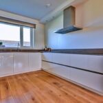 De complete keukenopstelling is voorzien van een inductiekookplaat, afzuigkap, stoomoven, vaatwasser, koelkast, vriezer en composiet aanrechtblad. Daarnaast beschikt de keuken over veel bergruimte in de vorm van lades.
