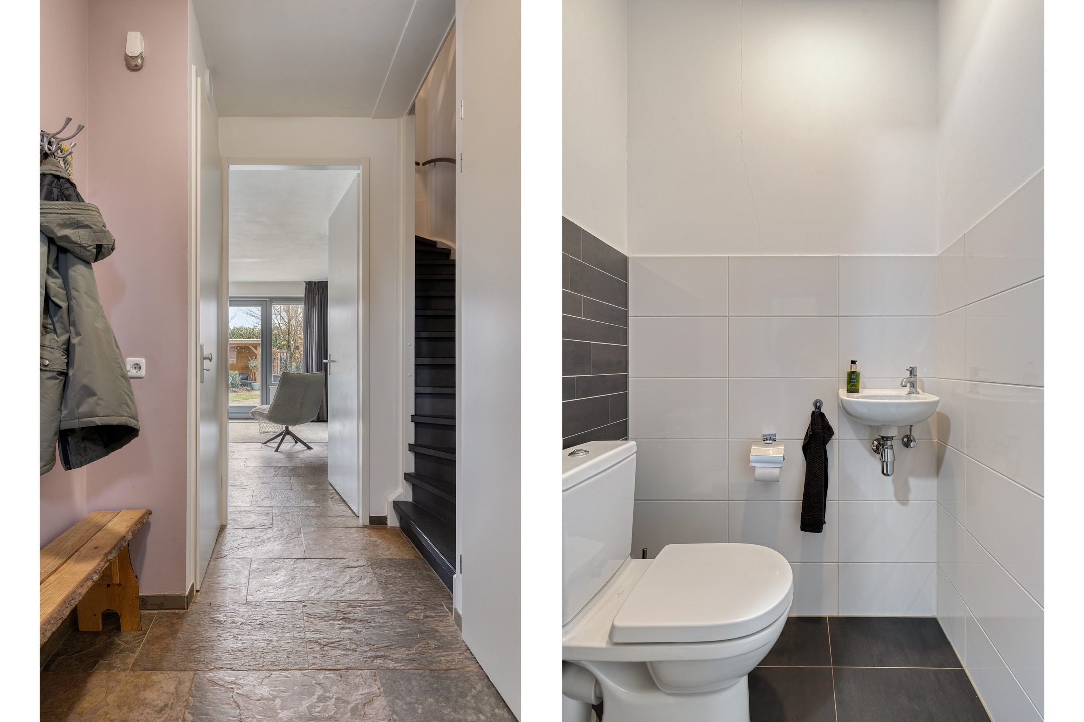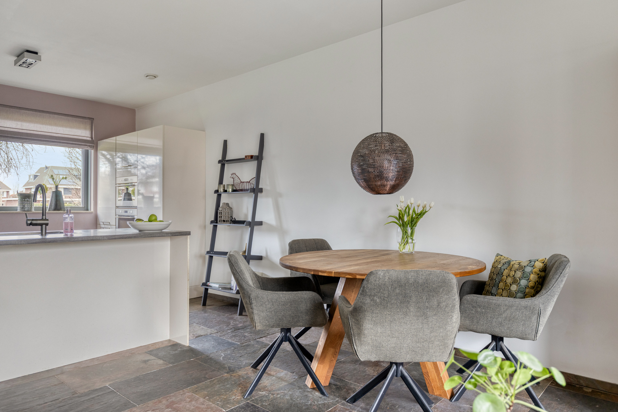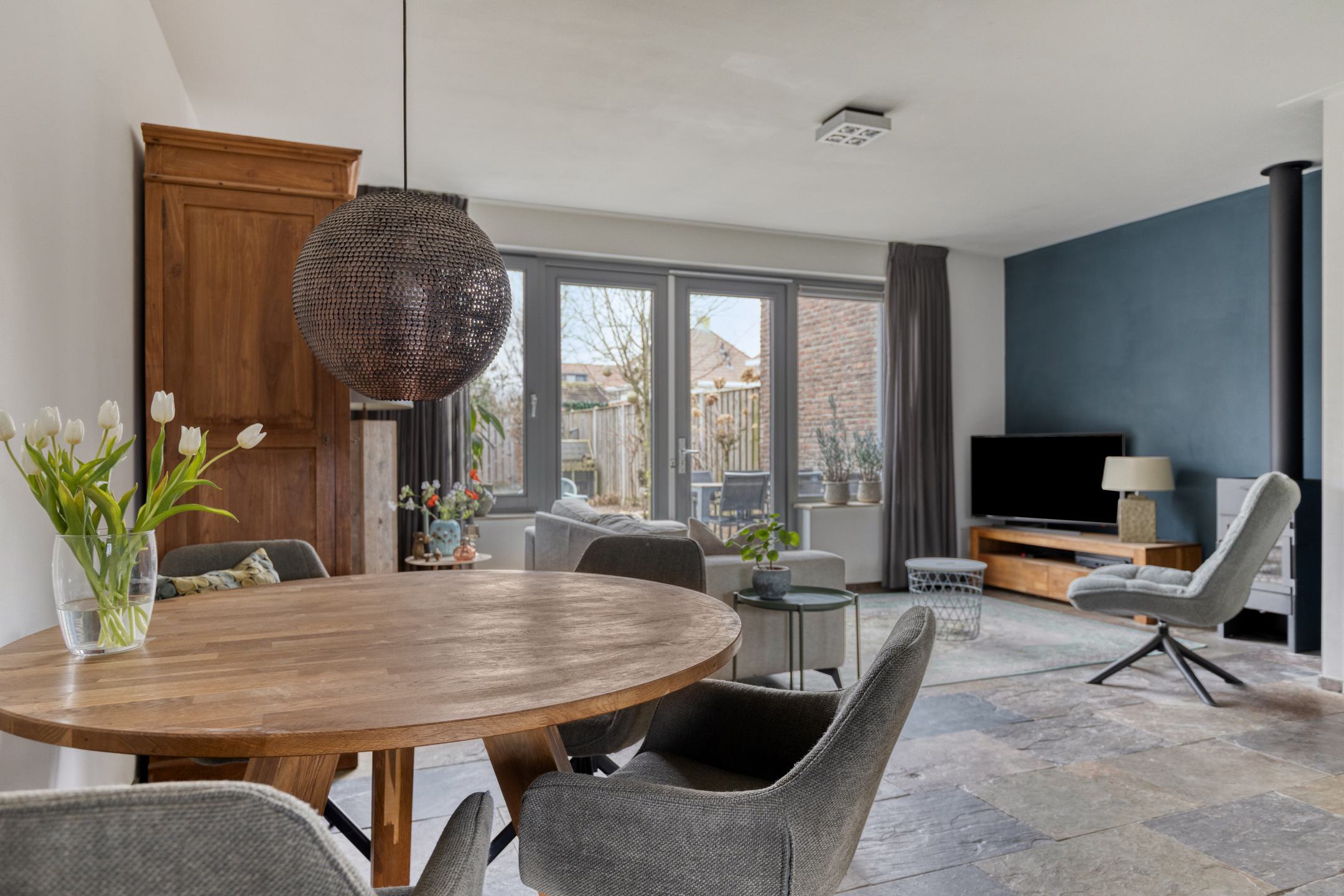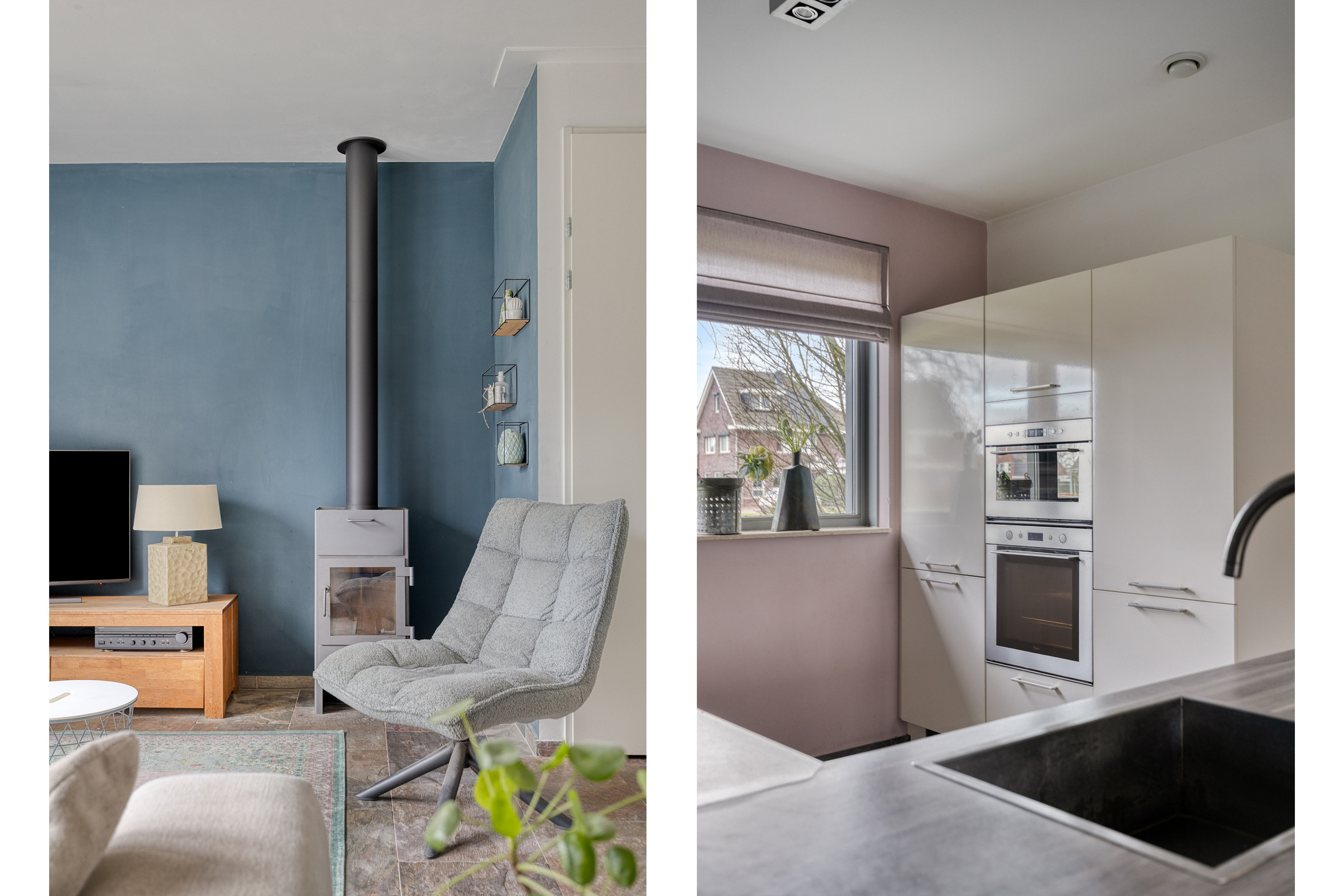 Begane grond: hal/ entree met meterkast en de cv-opstelling, toiletruimte, woonkamer met een sfeervolle houtkachel, provisieruimte en moderne keuken…
