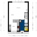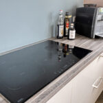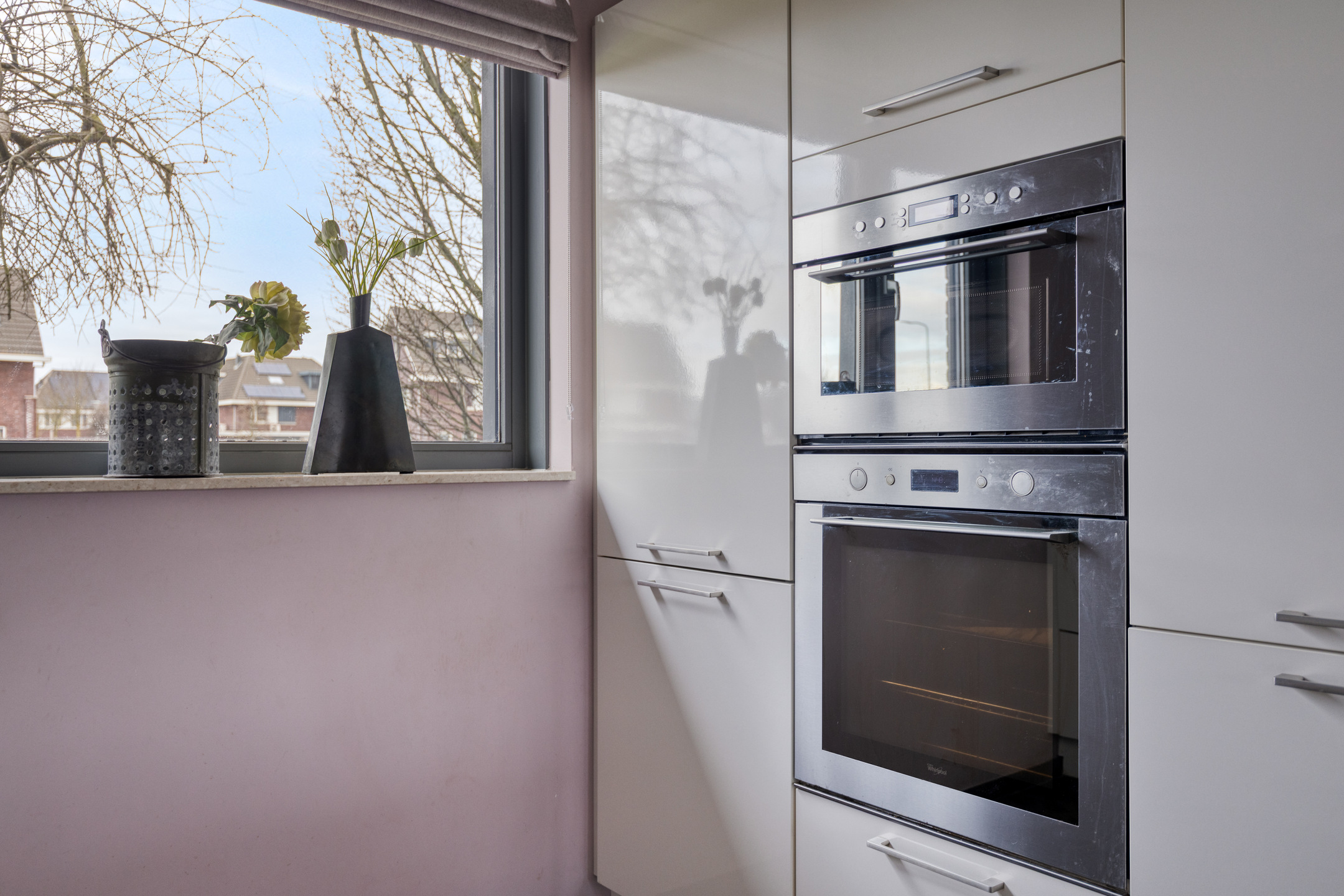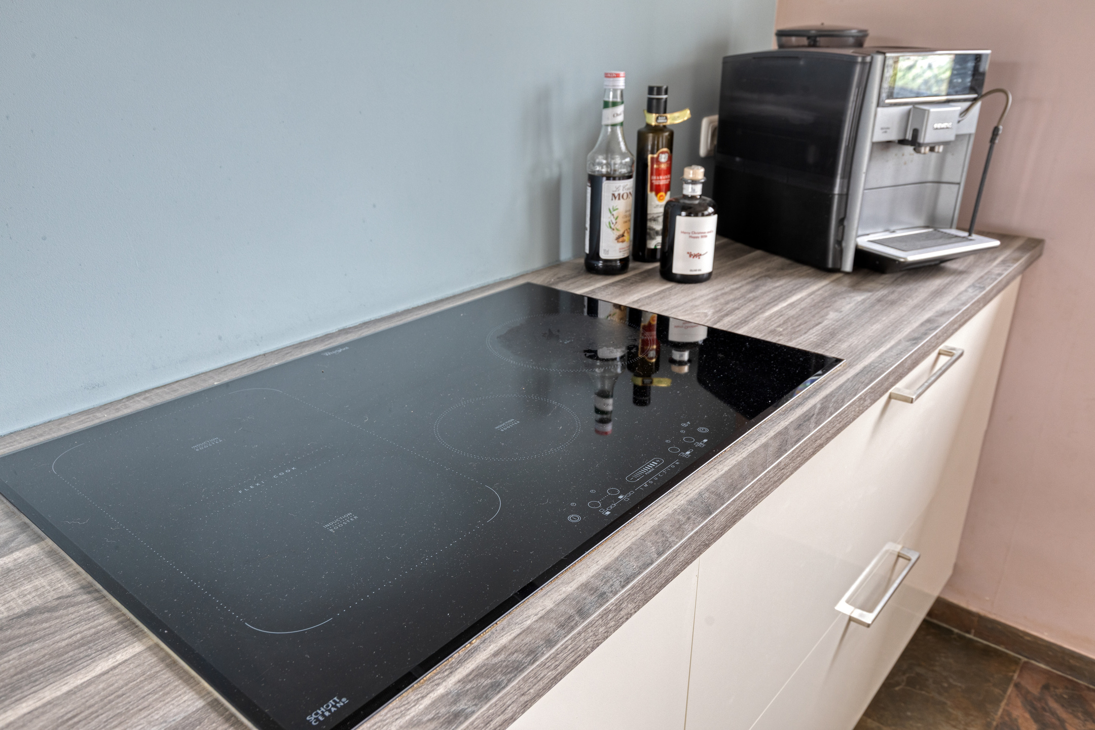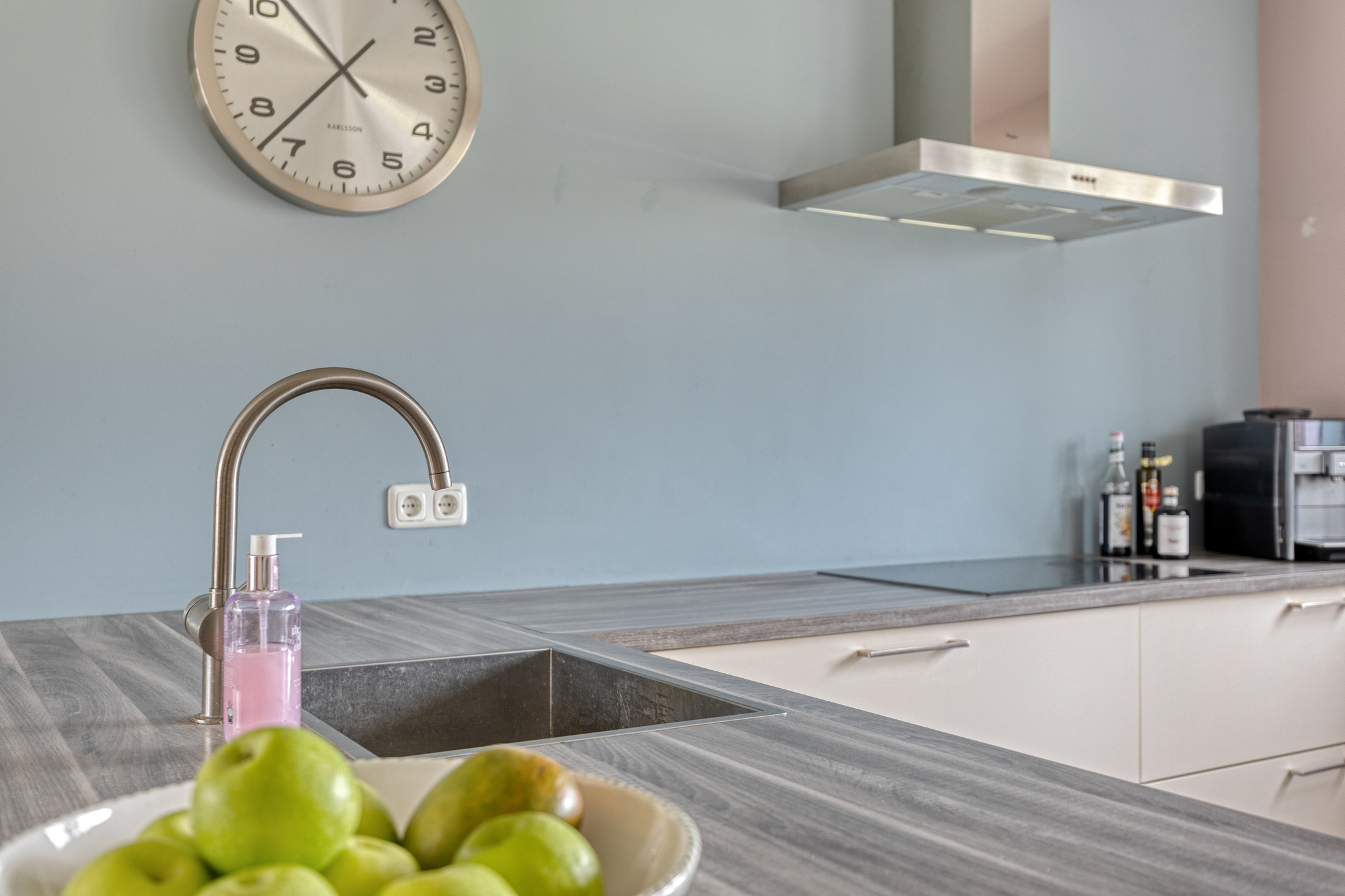 De keukenopstelling is voorzien van een inductiekookplaat, afzuigkap (defect), combioven, oven, vaatwasser, koelkast, vriezer en spoelbak.