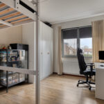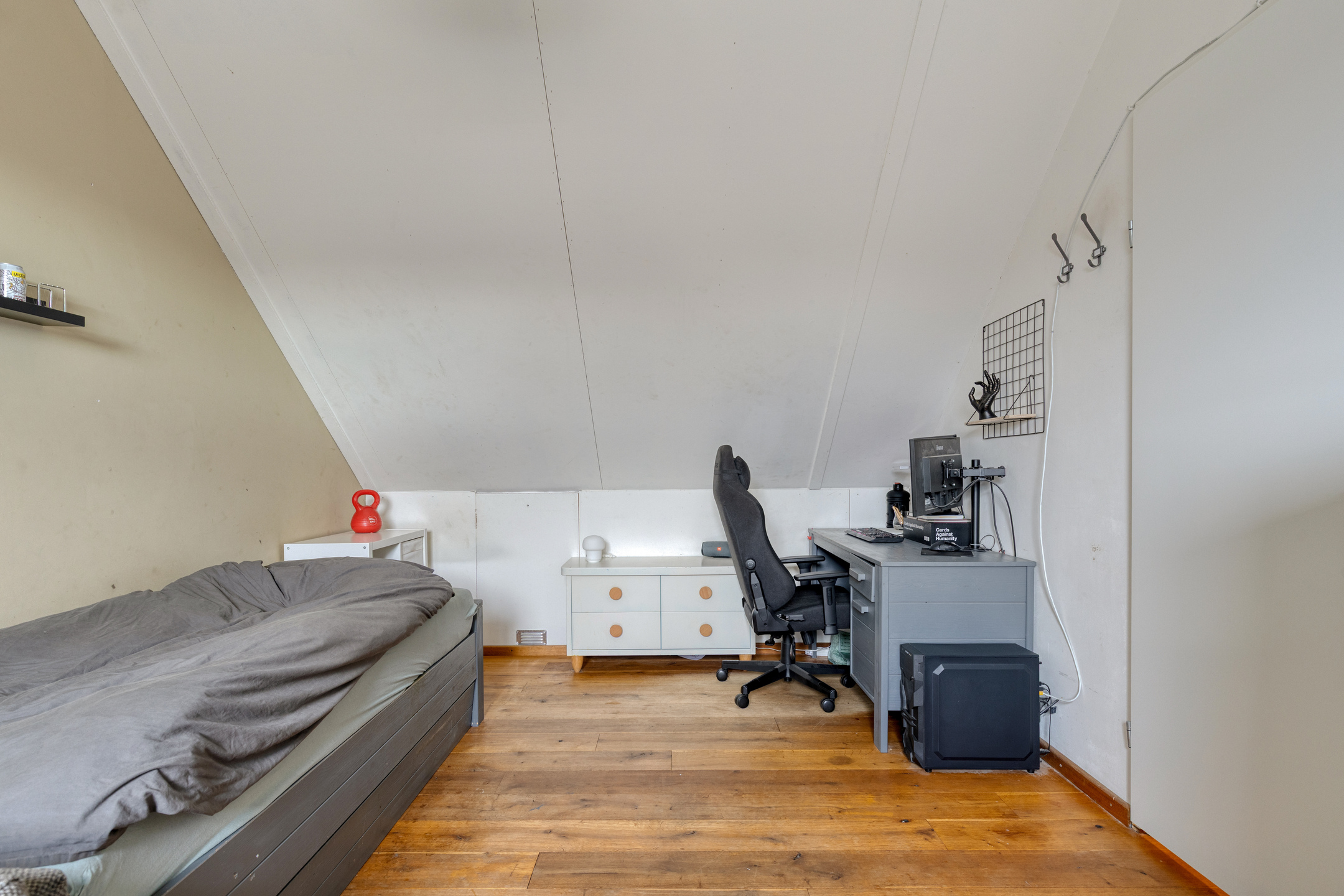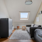 2e verdieping: via een vaste trap bereikbare voorzolder met de witgoedaansluitingen, zolderkamer met Velux-dakraam en airconditioning.