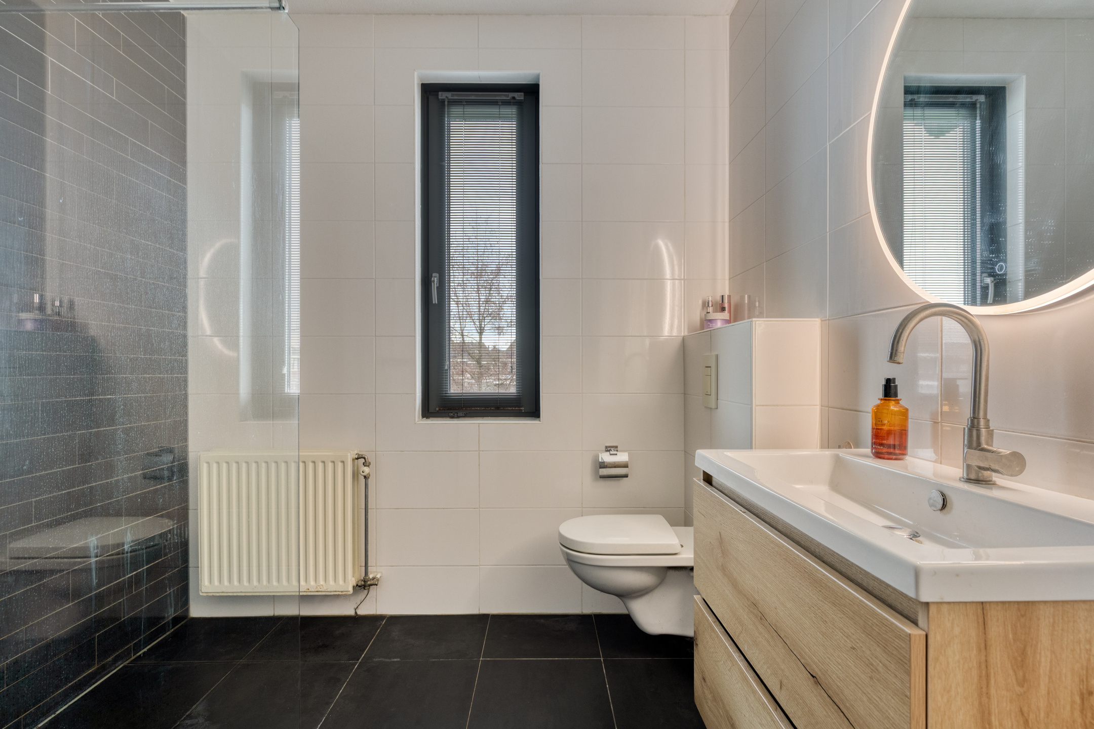 1e verdieping: overloop, 3 slaapkamers, badkamer voorzien van een inloopdouche, toilet, wastafelmeubel.