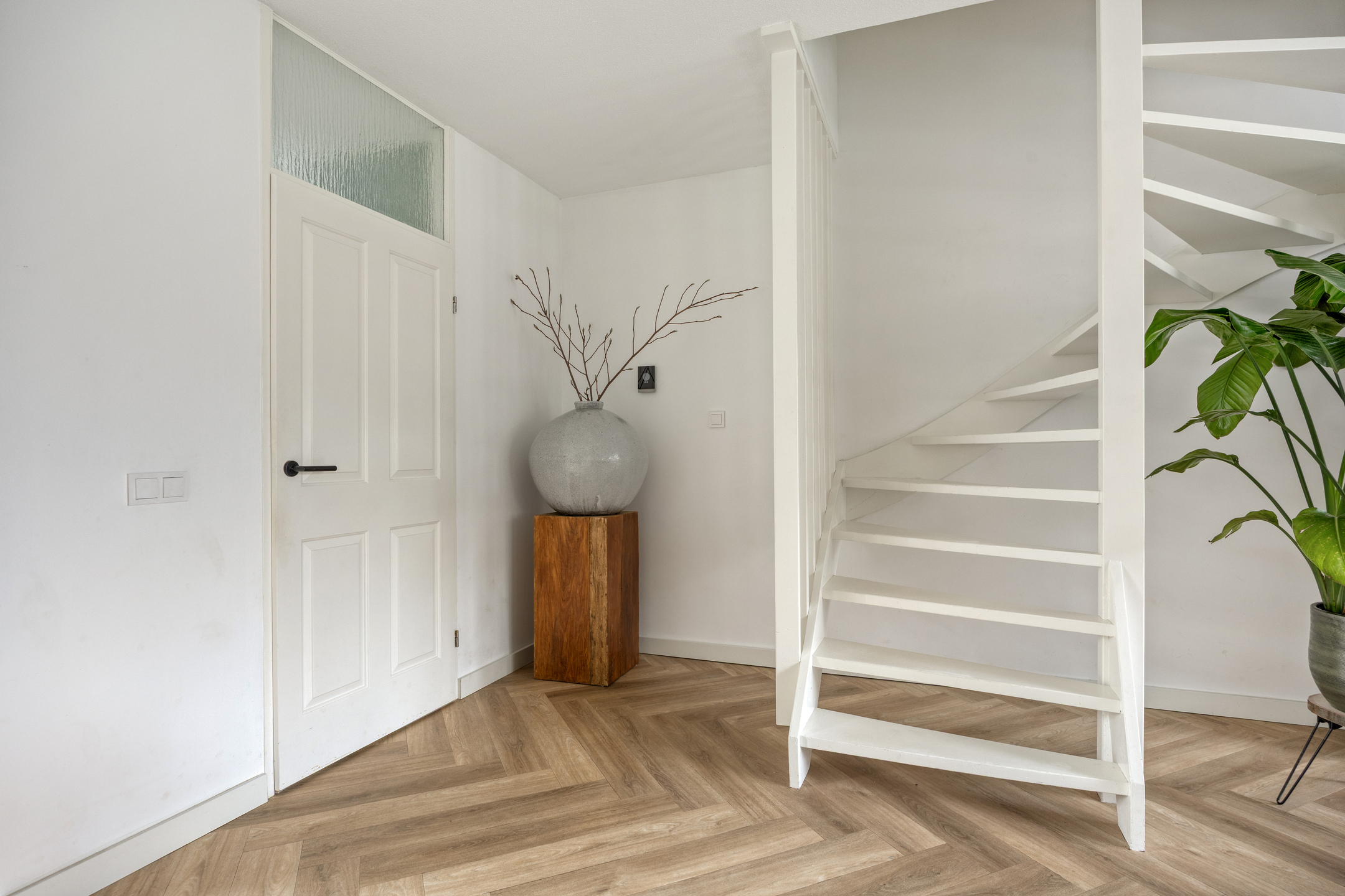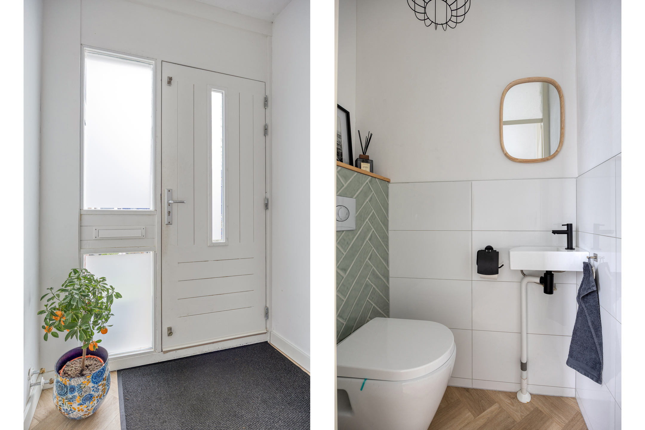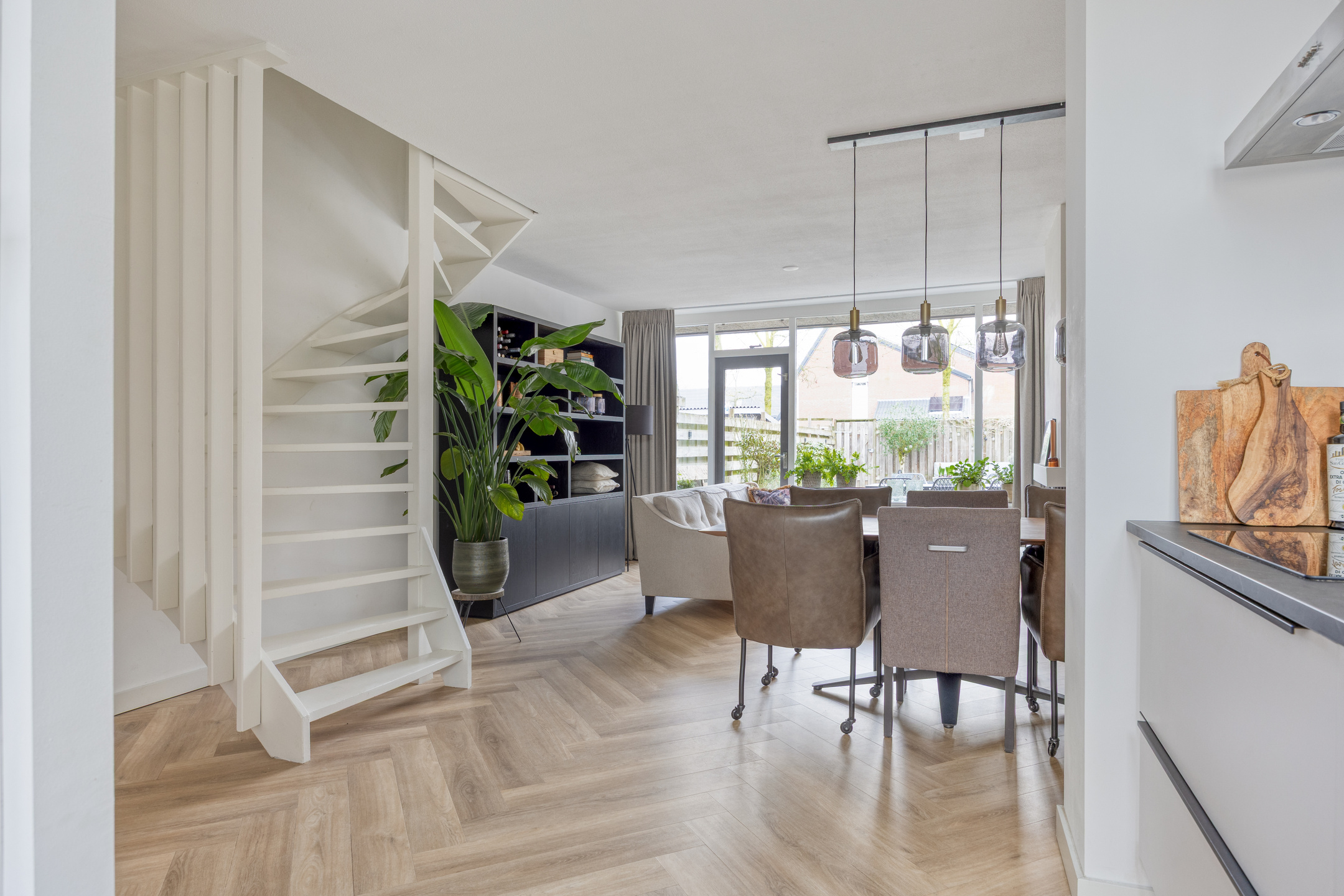 Begane grond: entree, ruime hal met modern zwevend toilet en fonteintje. Sfeervolle woonkamer voorzien van een pvc visgraatvloer. Via de openslaande tuindeur kom je in de heerlijke achtertuin. De moderne en lichte keuken (2023) aan de voorzijde is voorzien van diverse inbouwapparatuur.