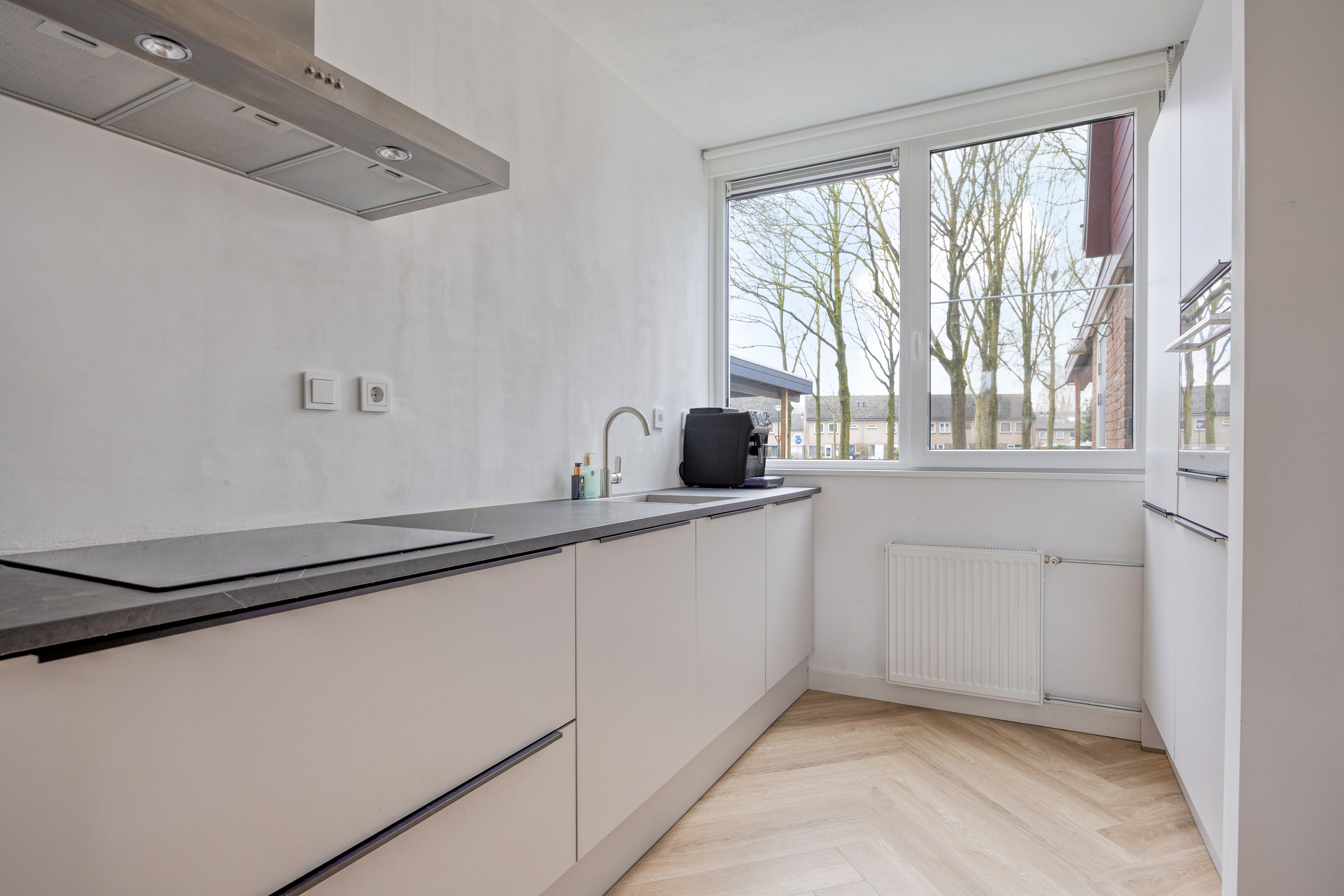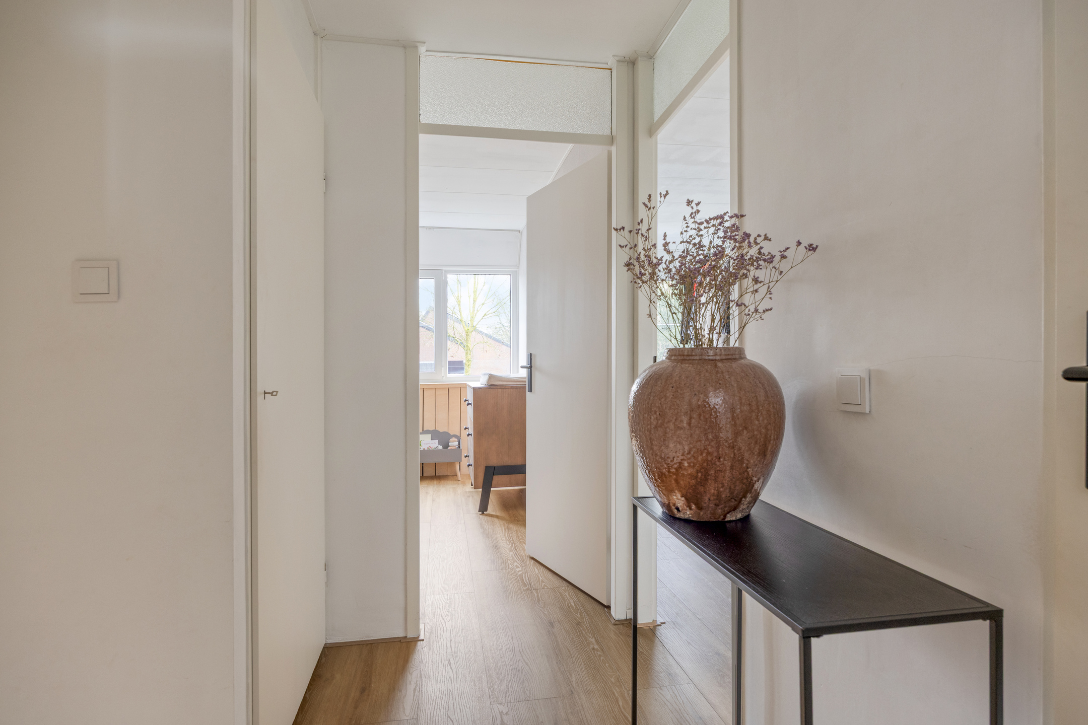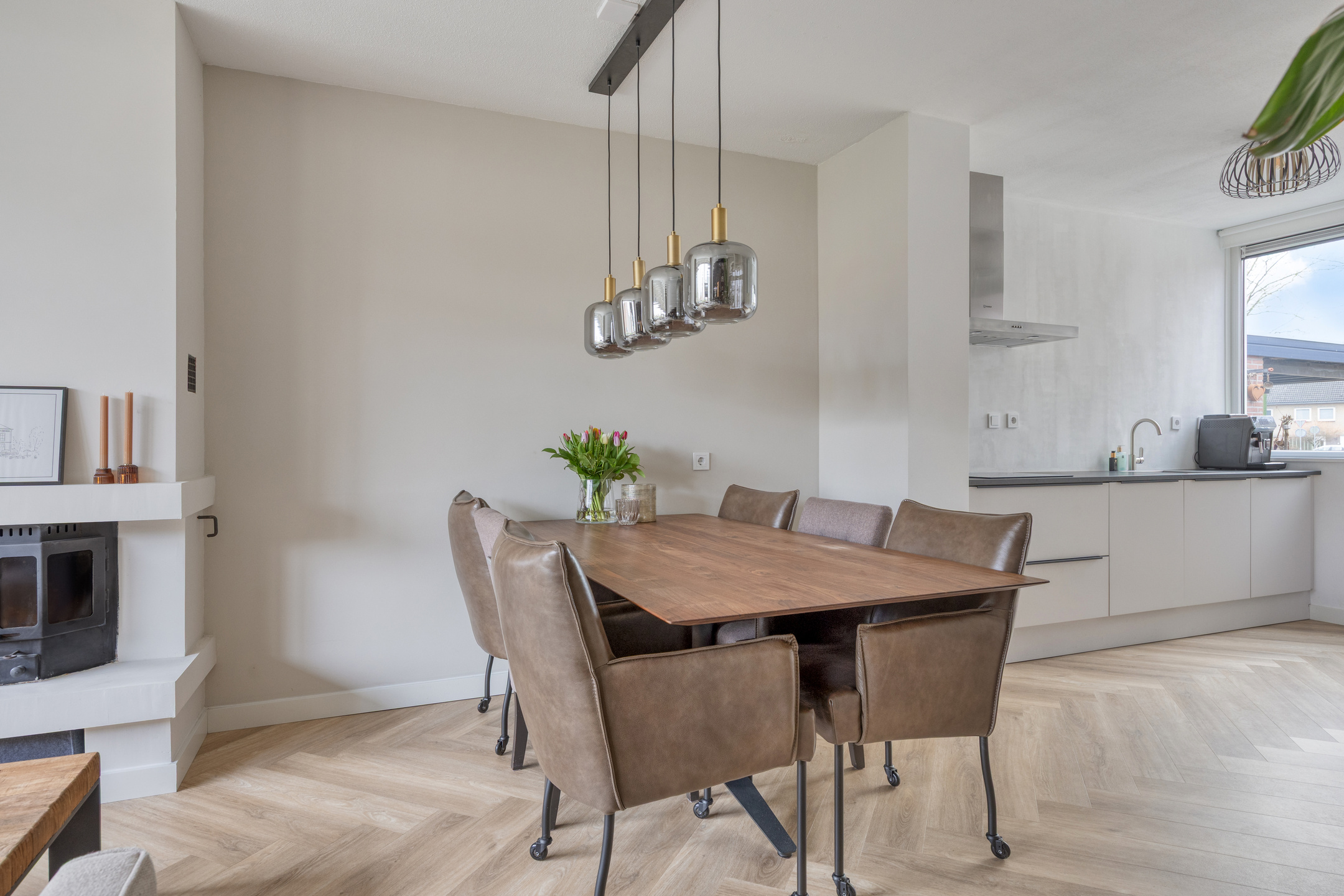 Begane grond: entree, ruime hal met modern zwevend toilet en fonteintje. Sfeervolle woonkamer voorzien van een pvc visgraatvloer. Via de openslaande tuindeur kom je in de heerlijke achtertuin. De moderne en lichte keuken (2023) aan de voorzijde is voorzien van diverse inbouwapparatuur.