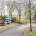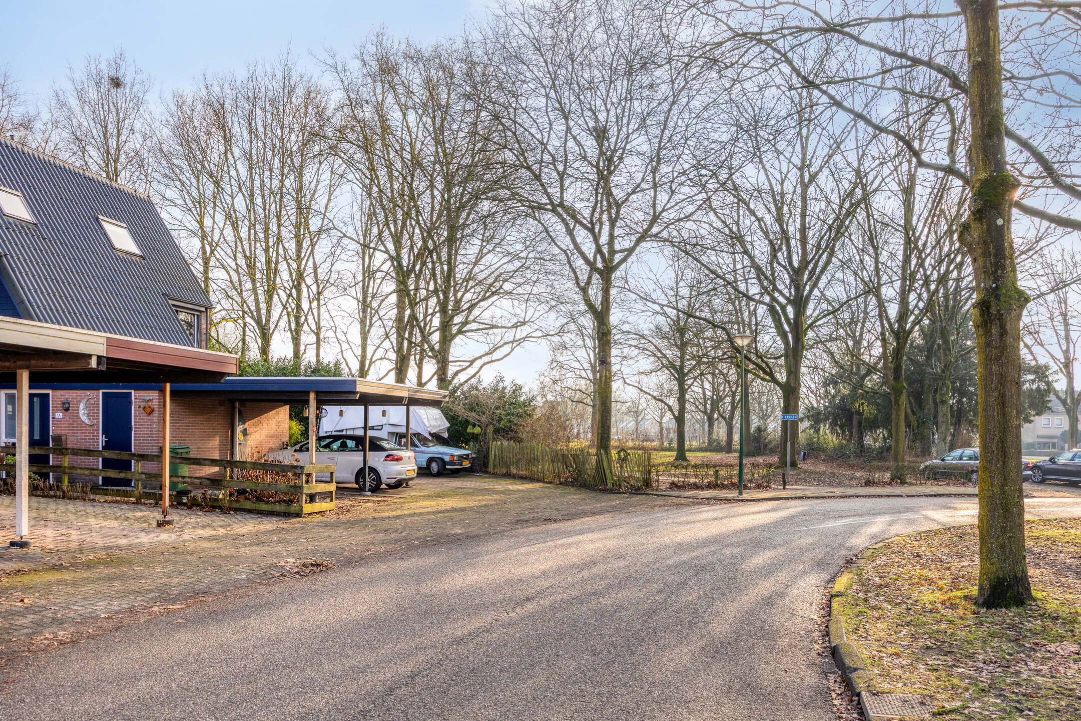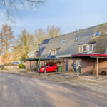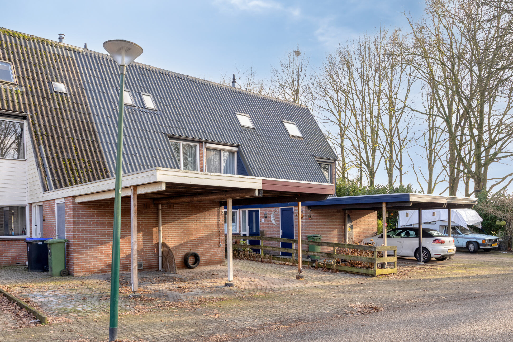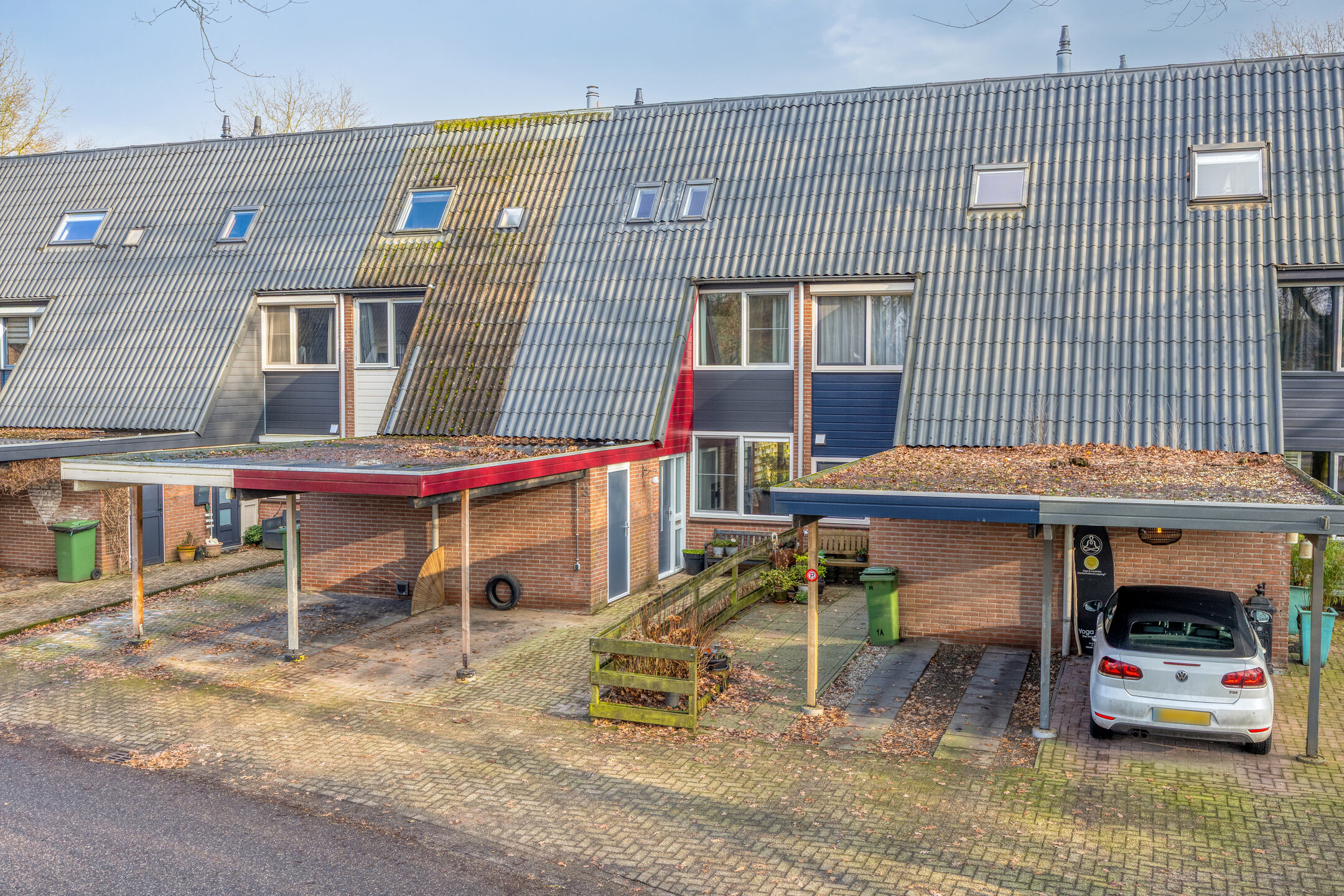 Aan de voorzijde is een oprit met carport aanwezig en een stenen berging.