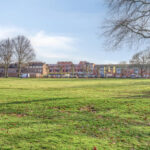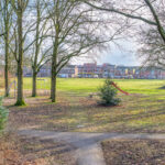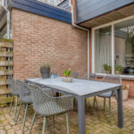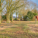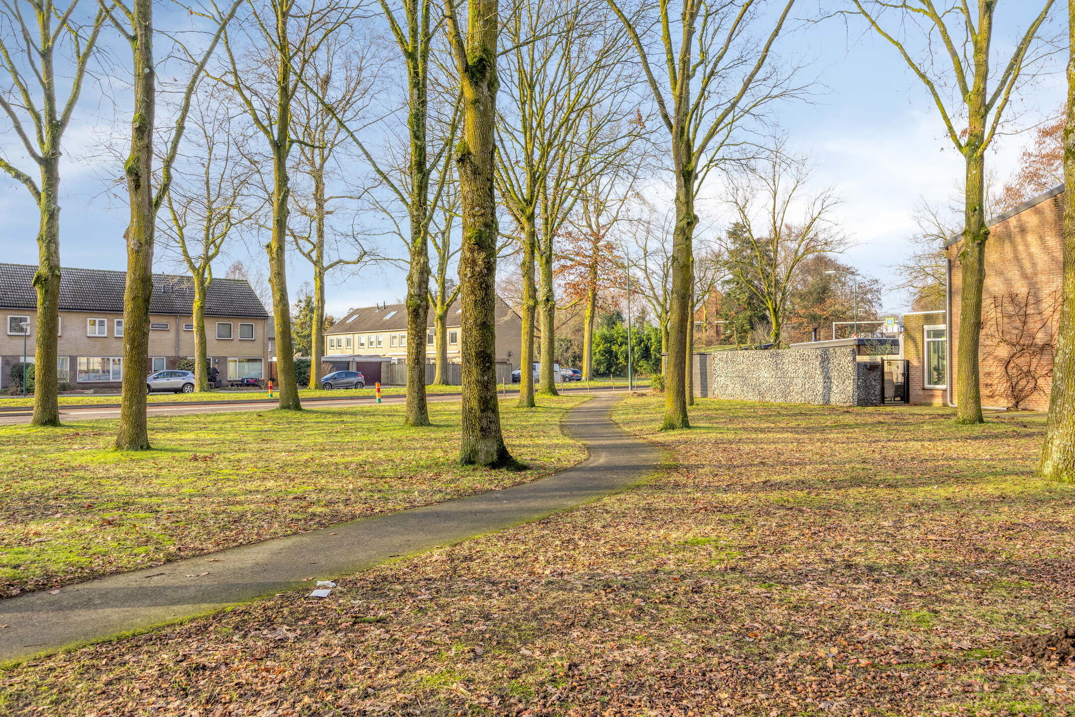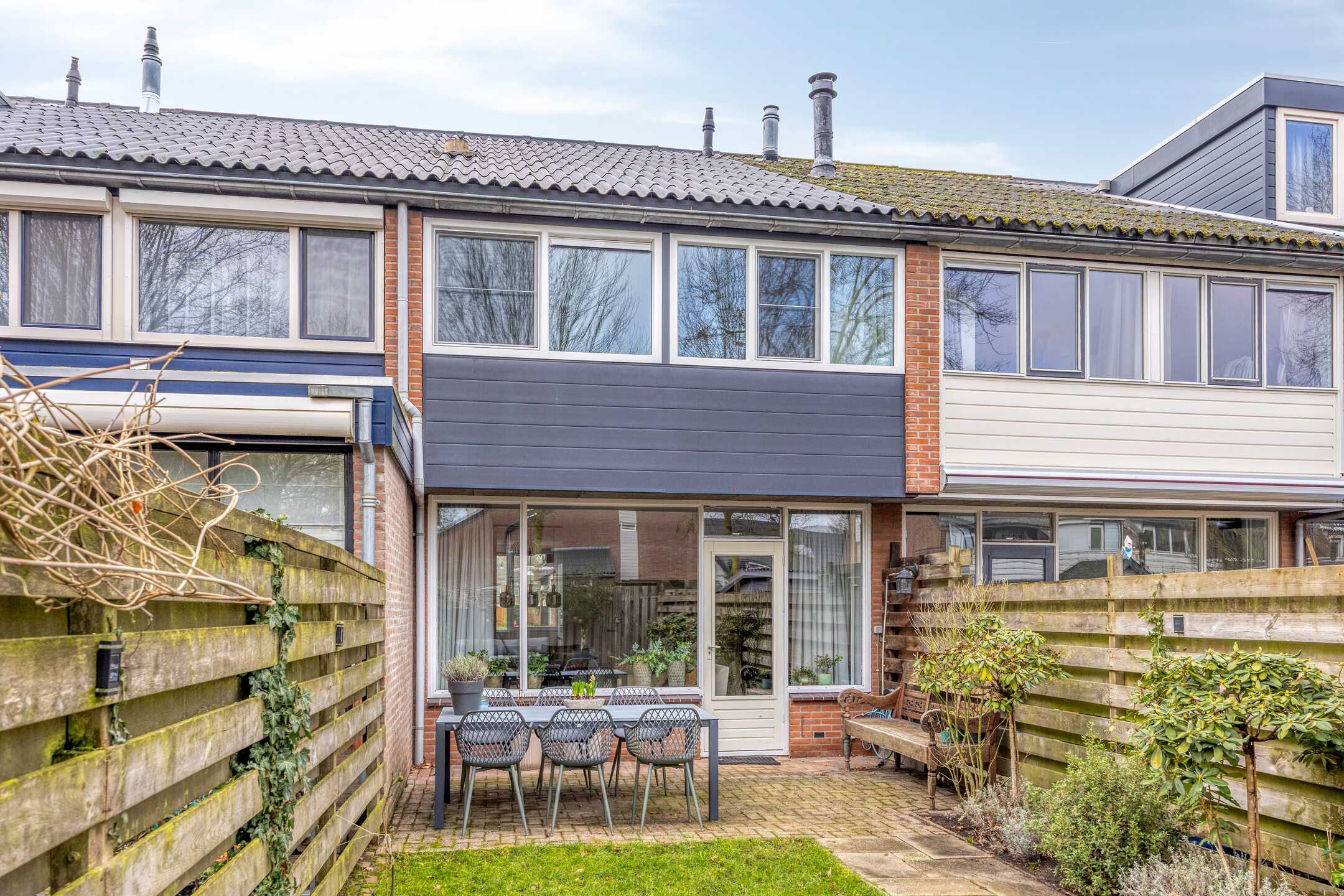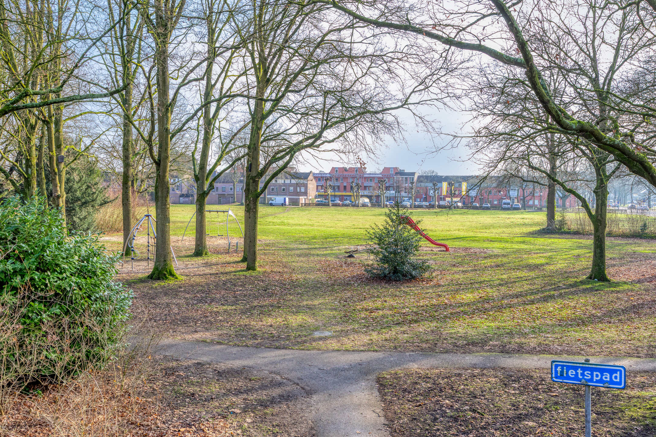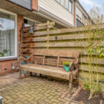 De tuin is keurig aangelegd en grenst aan een wandelpad wat leidt naar het nabijgelegen park.