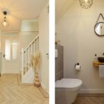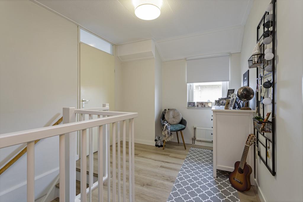 Begane grond: hal met meterkast en de opstelling van de cv-ketel, toiletruimte met wandcloset en fonteintje. Speels ingedeelde en sfeervolle woonkamer met gashaard, een aparte studeerkamer die o.a. ingericht kan worden als speelkamer,…