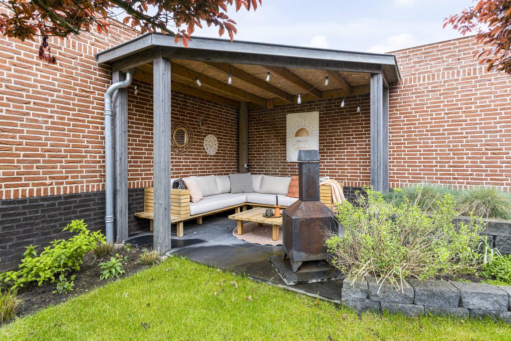 Een fraai aangelegde en zonnige achtertuin, ideaal gelegen op het westen