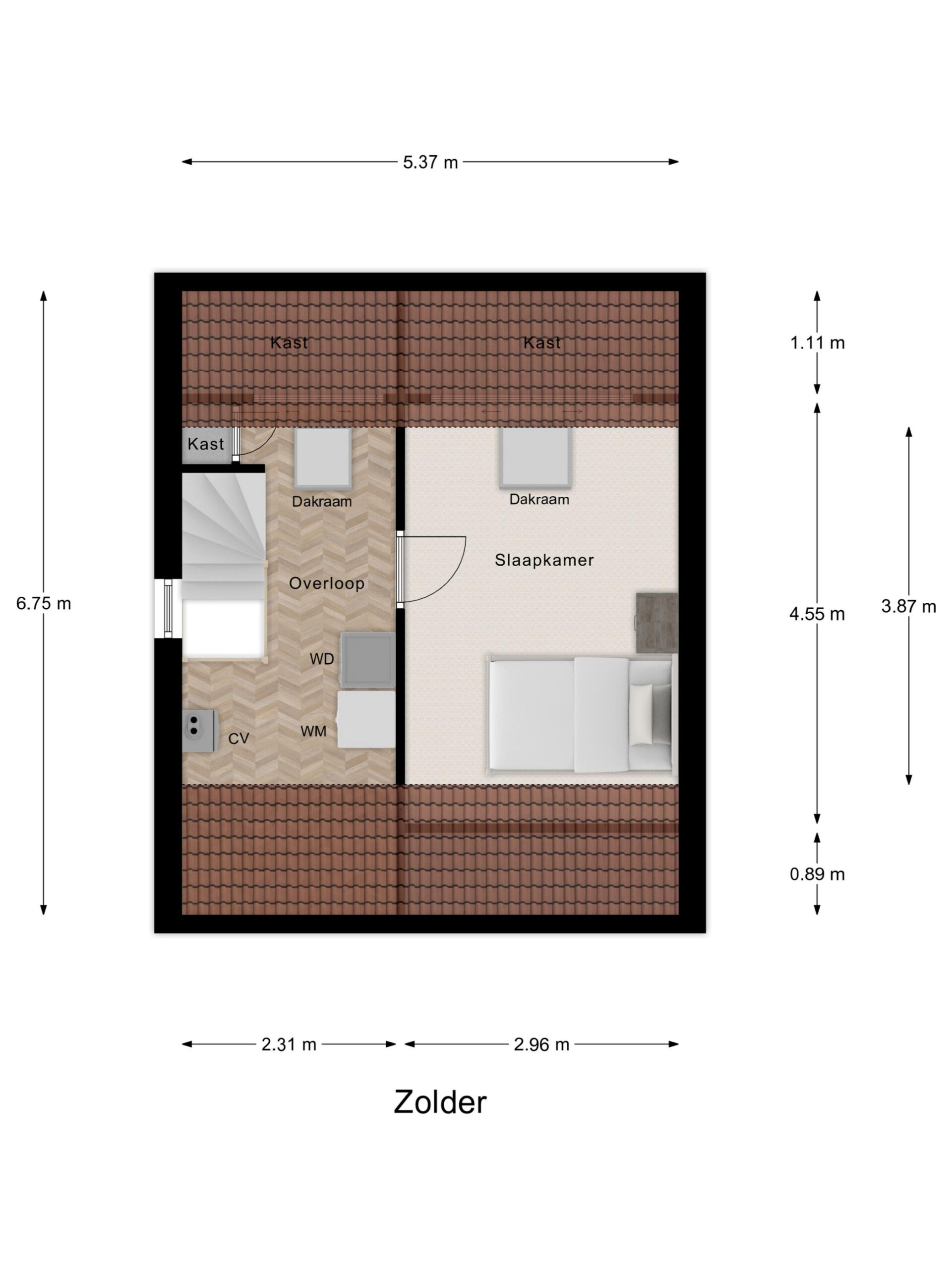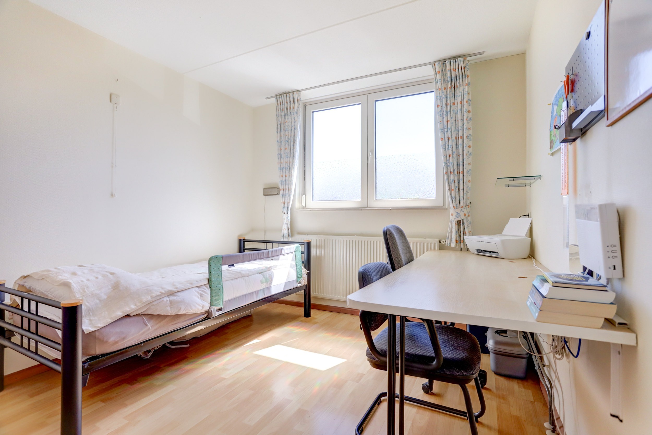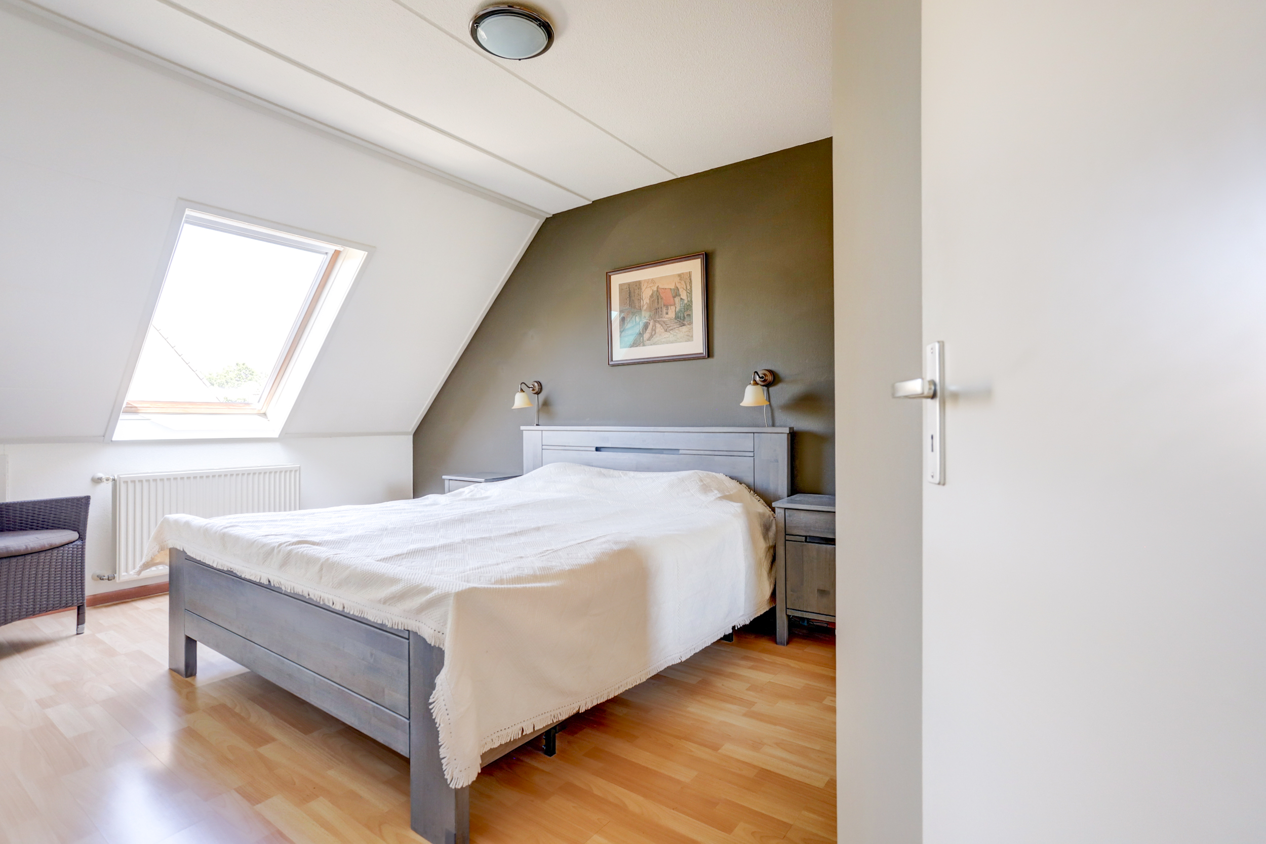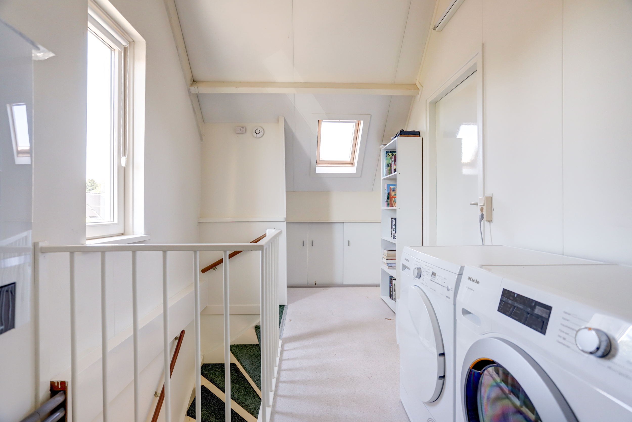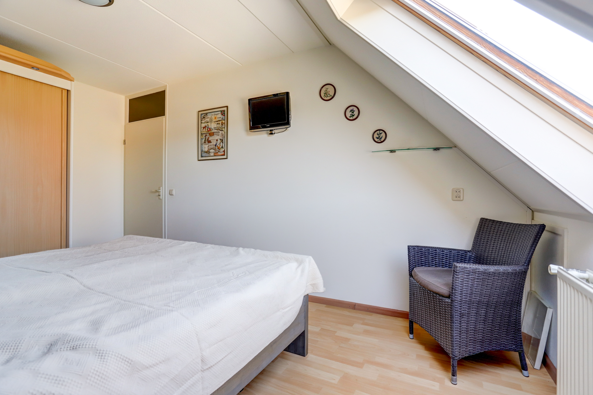 2e verdieping: middels vaste trap te bereiken voorzolder met de cv-opstelling en witgoedaansluitingen en een 4e slaapkamer voorzien van een dakraam.
