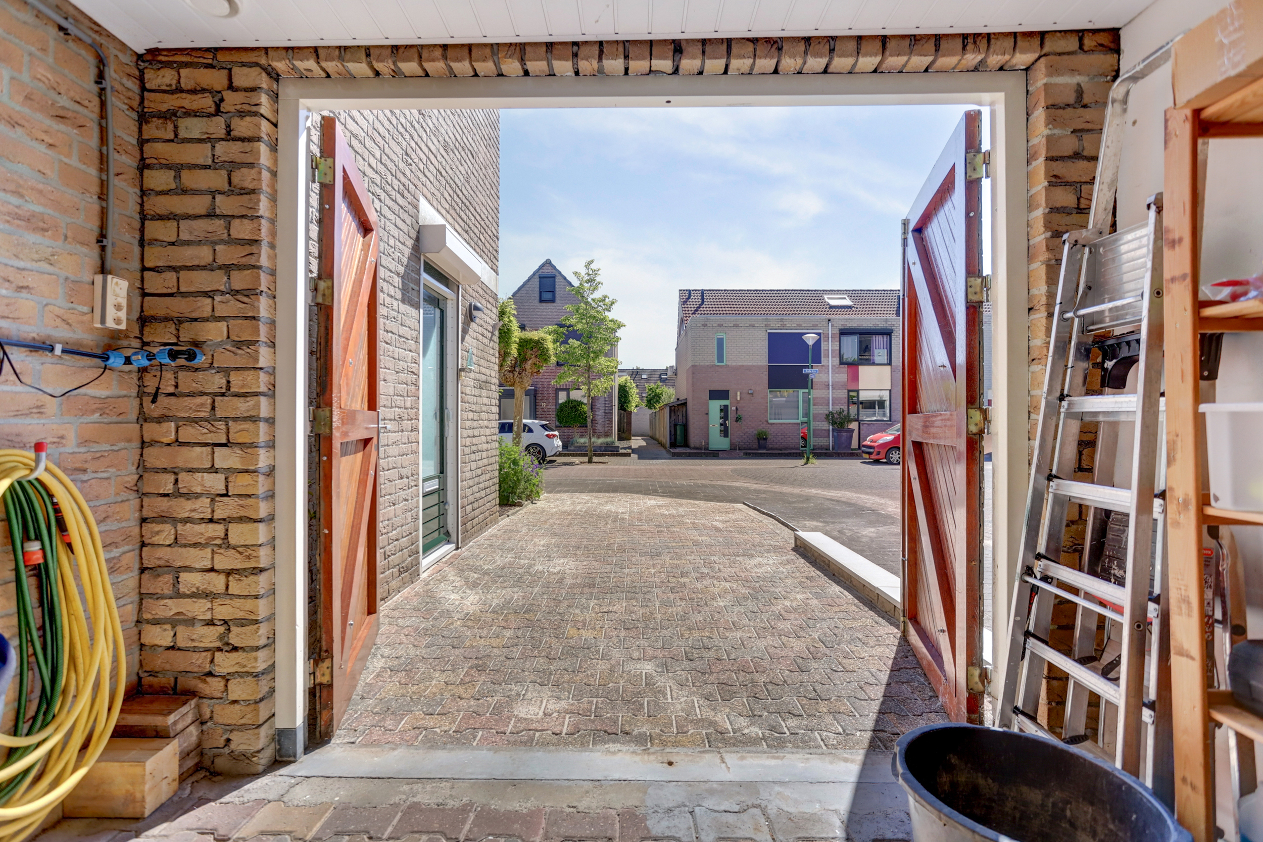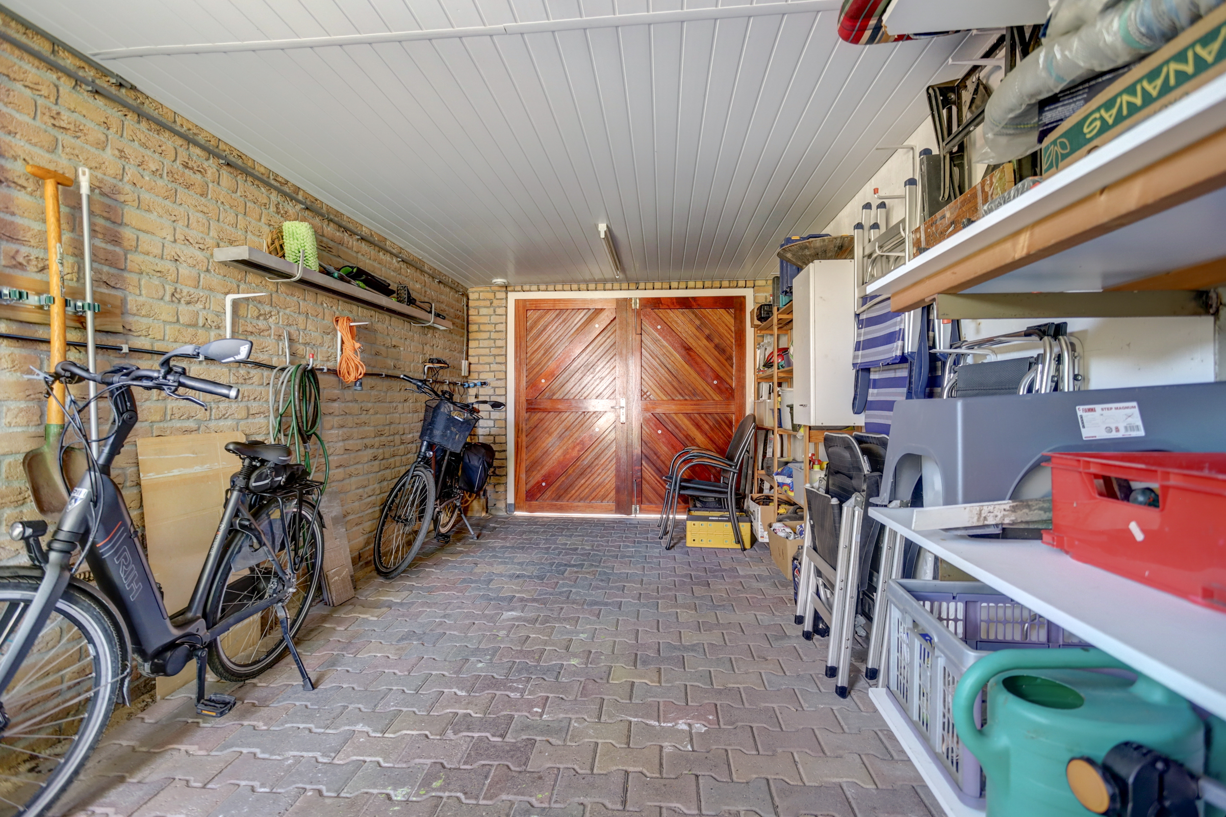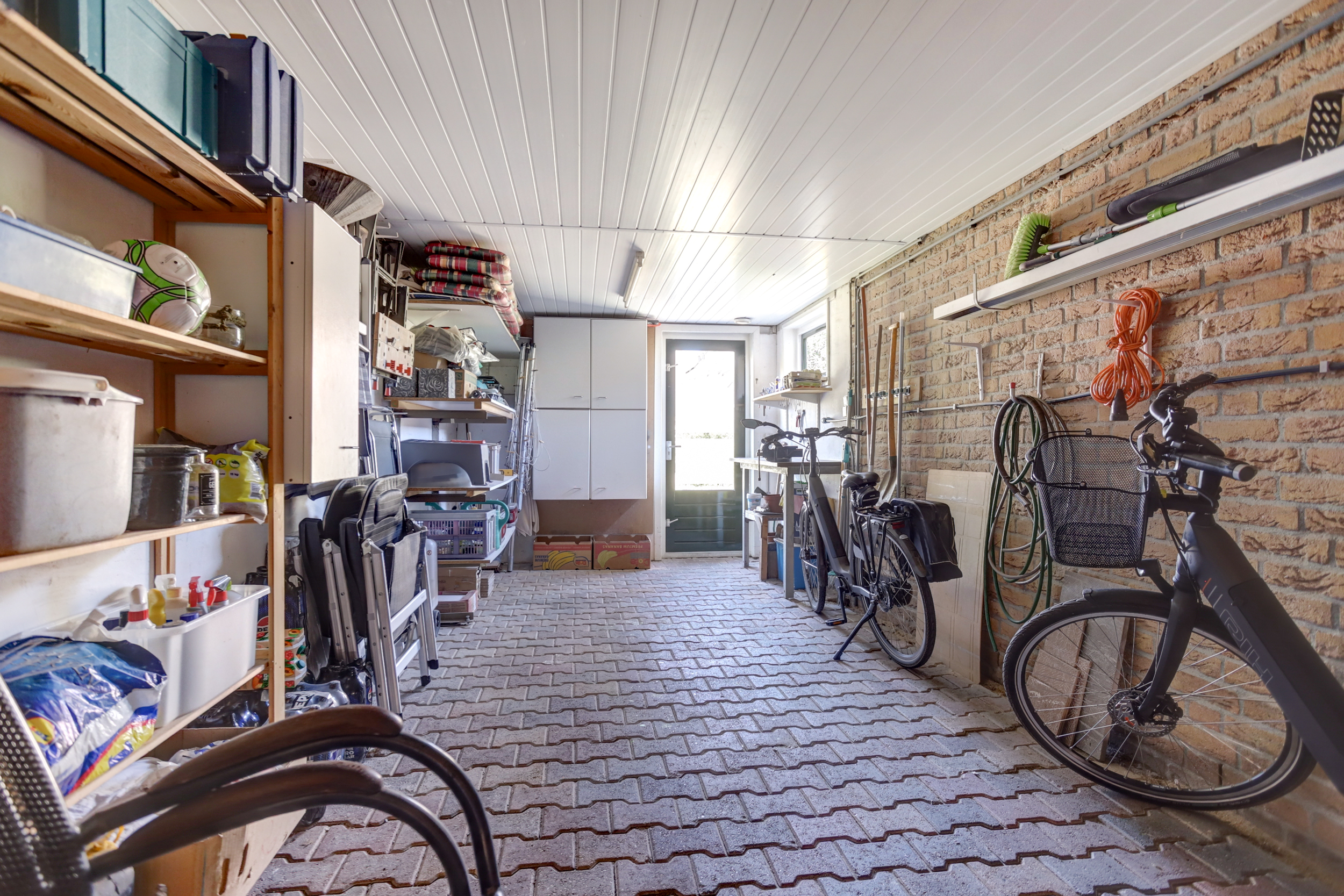 De aangebouwde stenen garage is voorzien van elektra.