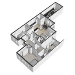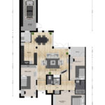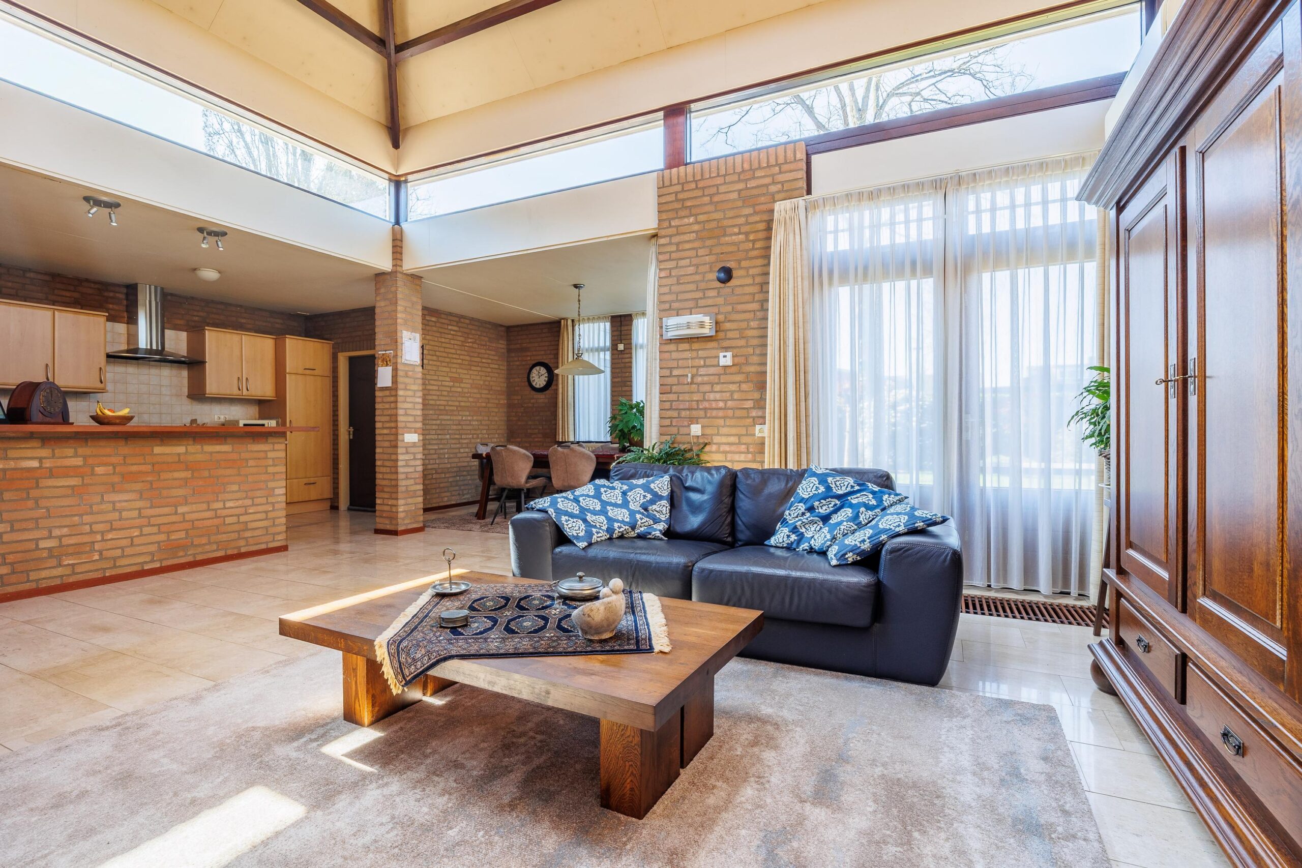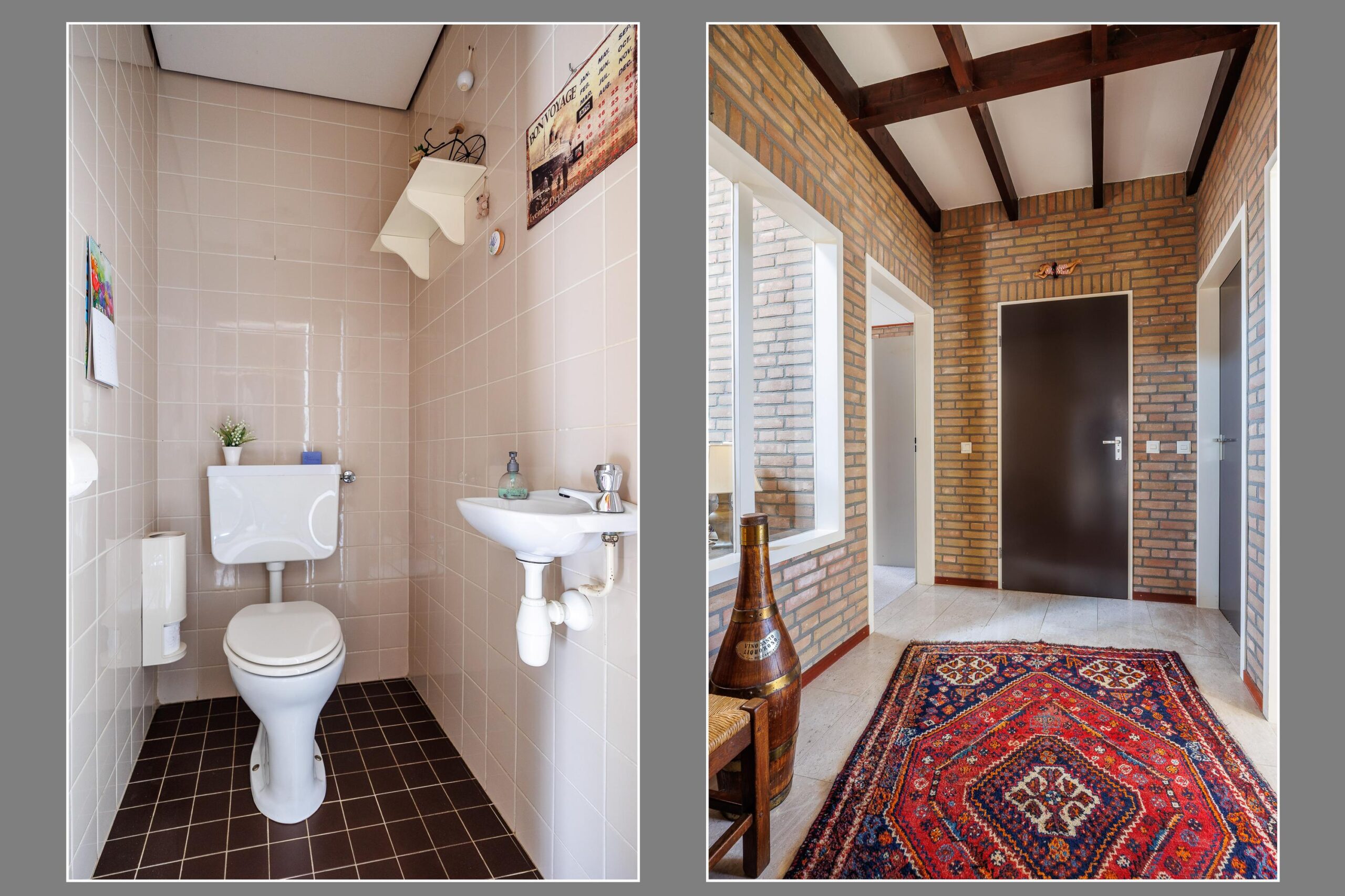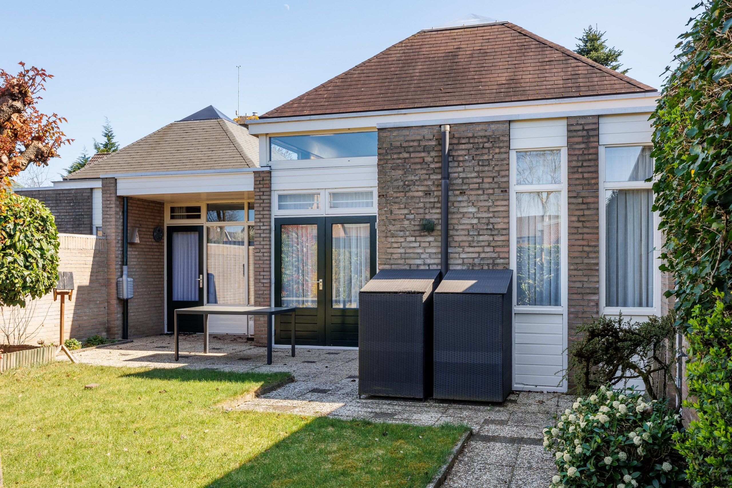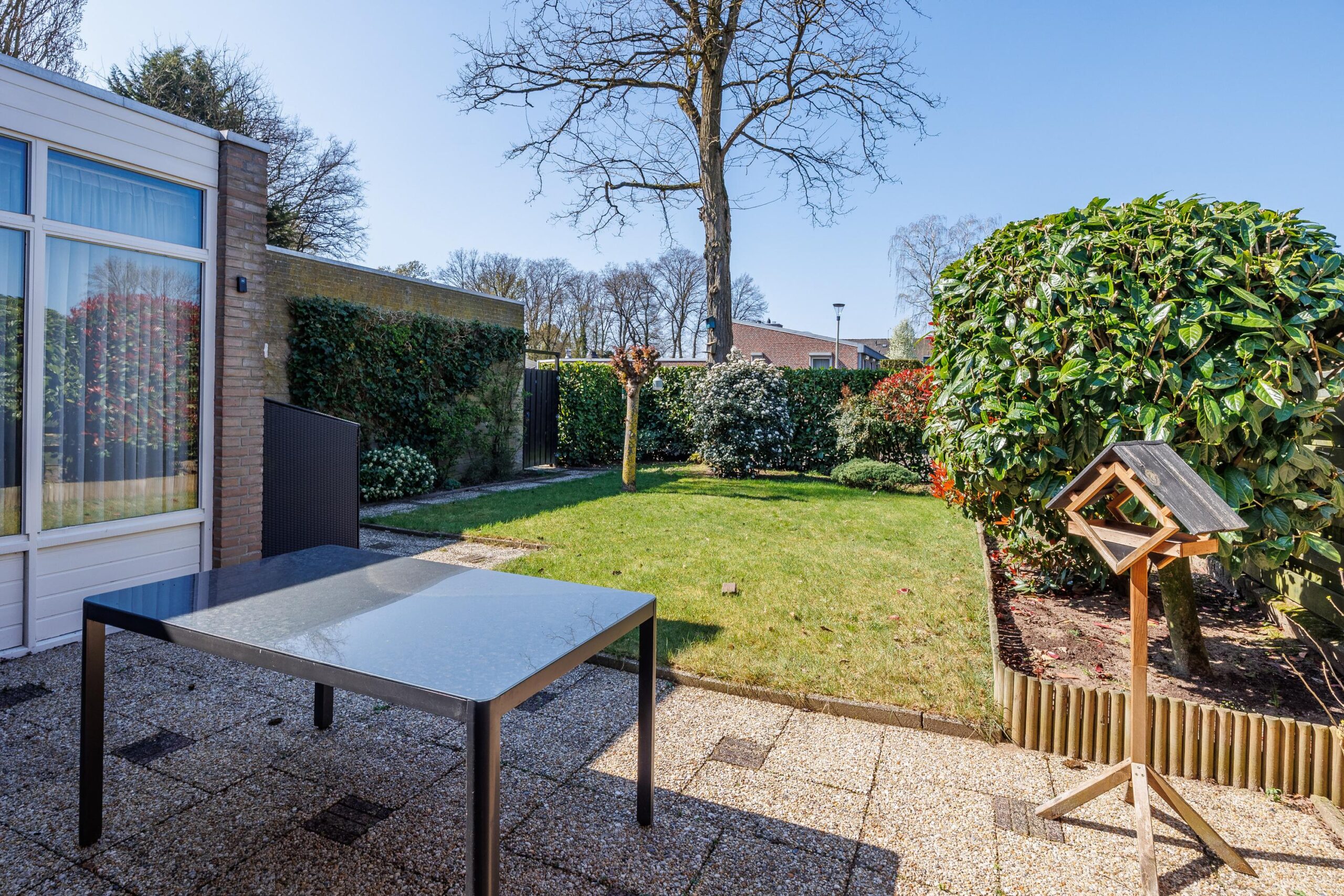 Begane grond: hal, toilet, cv-ruimte, ruime woonkamer met airco, openslaande deuren naar de ruime tuin en een open keuken met een functionele keukenopstelling voorzien van inbouwapparatuur, een geheel betegelde en in lichte kleuren afgewerkte badkamer voorzien van een vaste wastafel, een douche en een ligbad, 3 grote slaapkamers (voorheen vier), waarvan er één met direct toegang tot de tuin. Ook is er een bijkeuken/ berging met een witgoedaansluiting van waaruit de inpandige garage bereikbaar is.