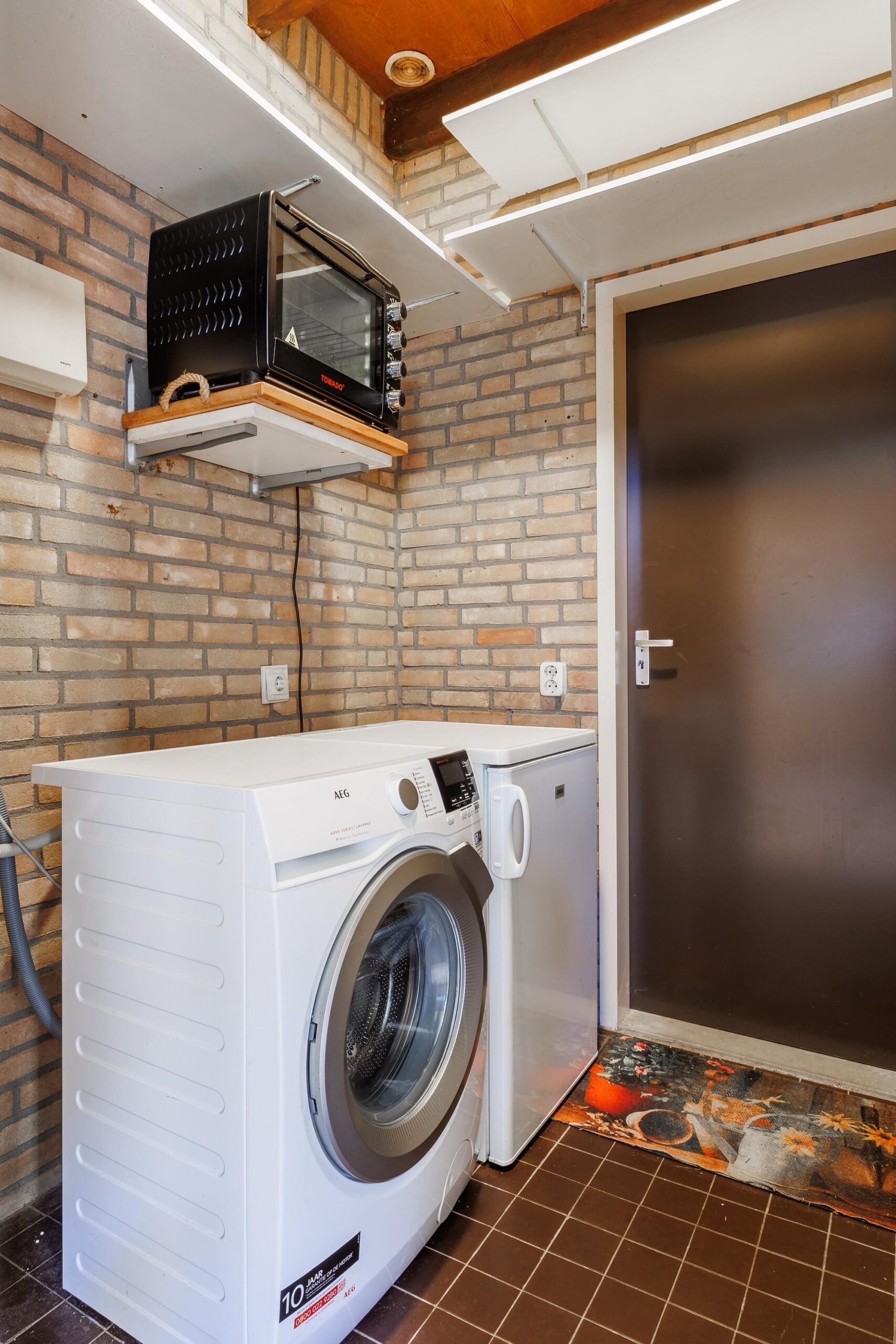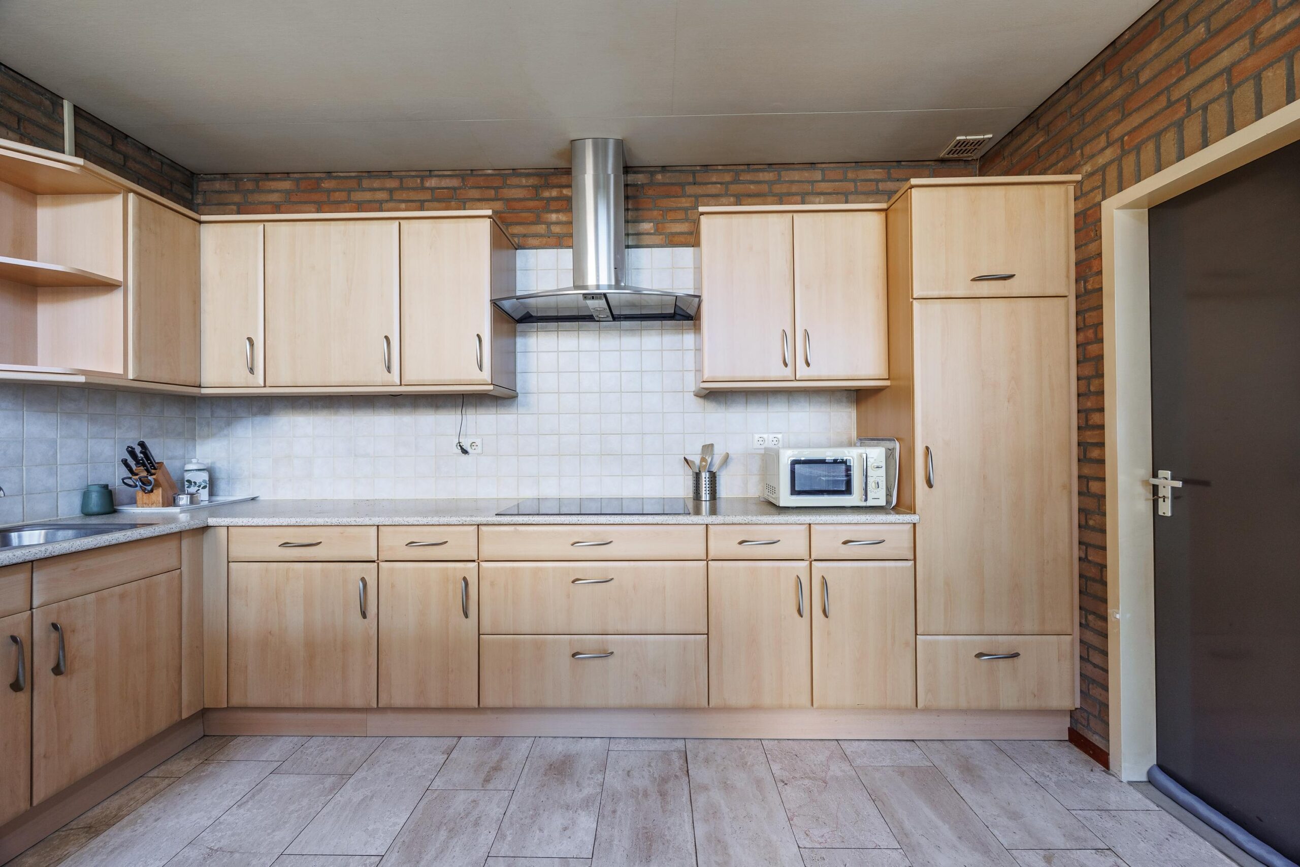 De keukenopstelling is voorzien van de volgende inbouwapparatuur: koelkast met vriesvak, vaatwasser (2024), keramische kookplaat, boiler en een afzuigkap.