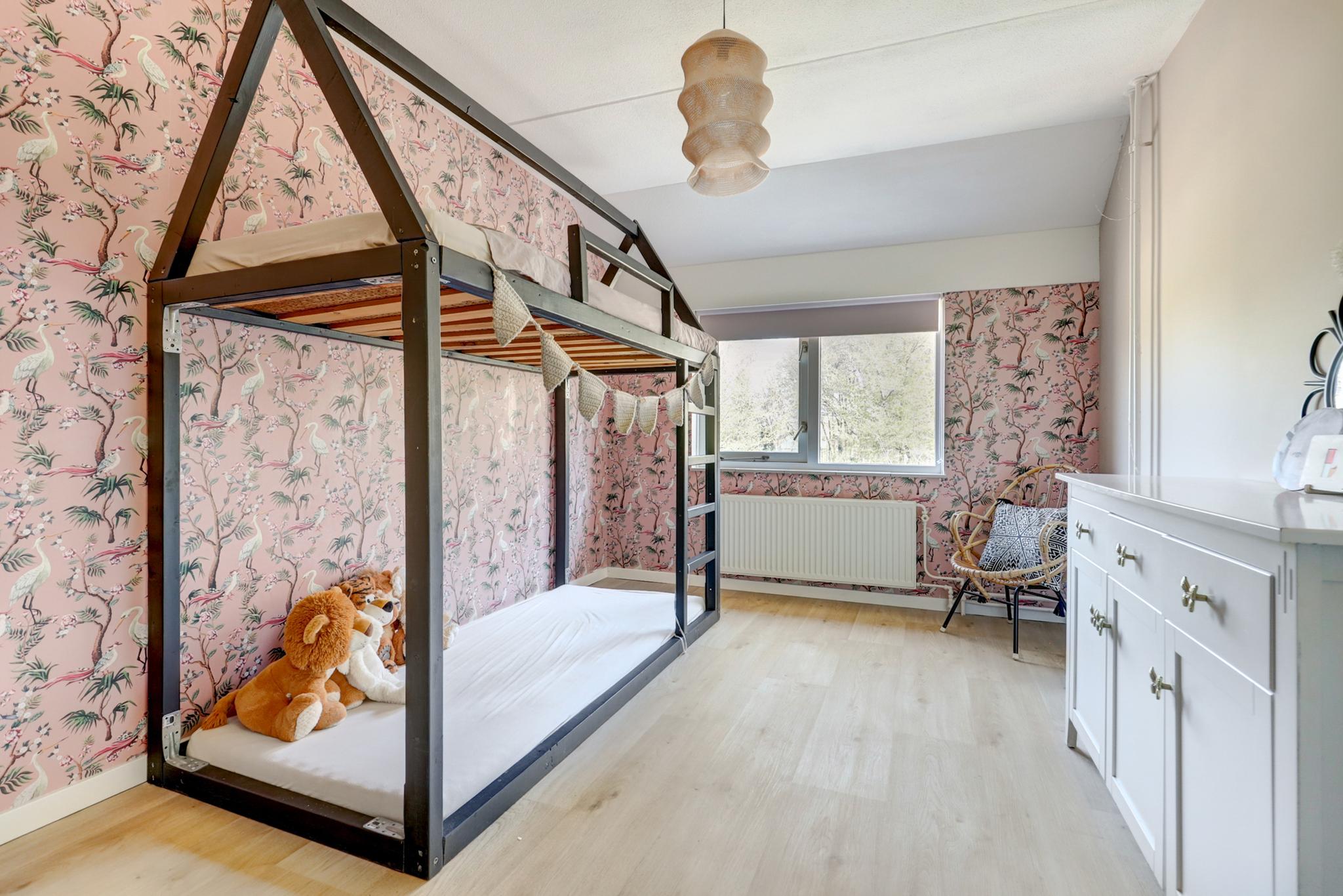 2e verdieping: middels vaste trap te bereiken royale voorzolder met de witgoedaansluitingen en de cv-opstelling. 4e slaapkamer voorzien van een Velux-dakraam en een ruime dakkapel met elektrisch bedienbare rolluiken, wastafel met meubel en praktische schuifkastenwand.