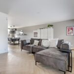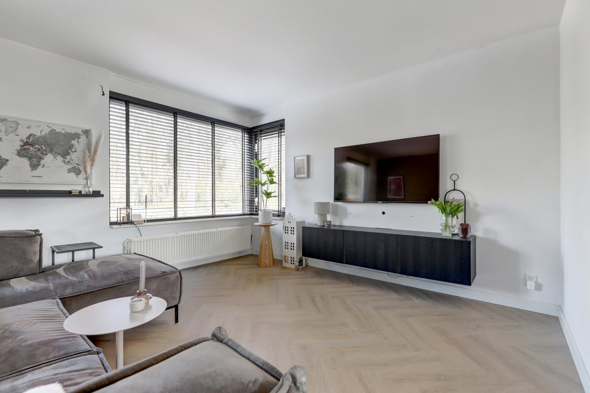 In de woonkamer en keuken is een visgraat pvc vloer gelegd (2022).
