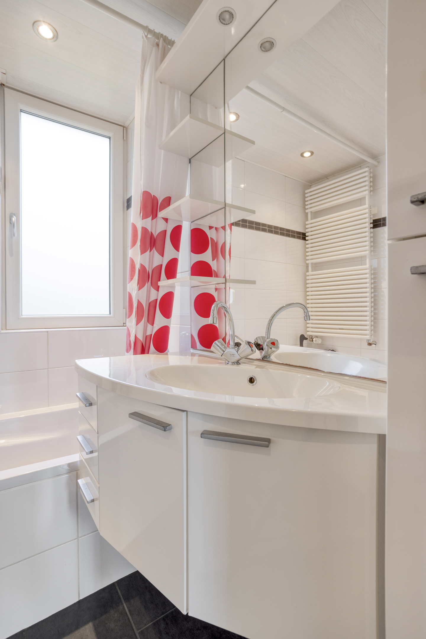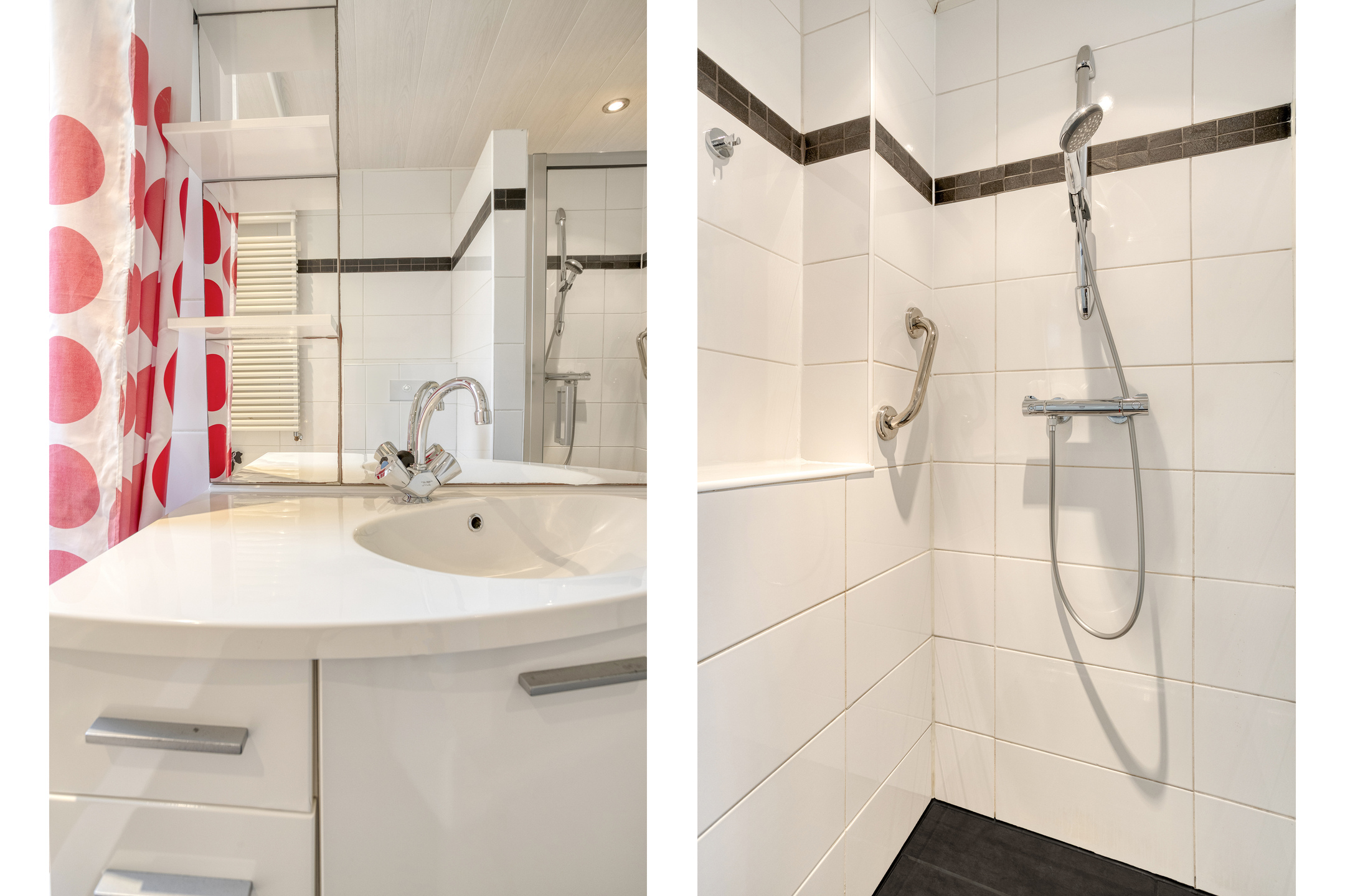 1e verdieping: overloop, 3 slaapkamers, badkamer voorzien van een ligbad, douchecabine, wandcloset en wastafel met meubel.