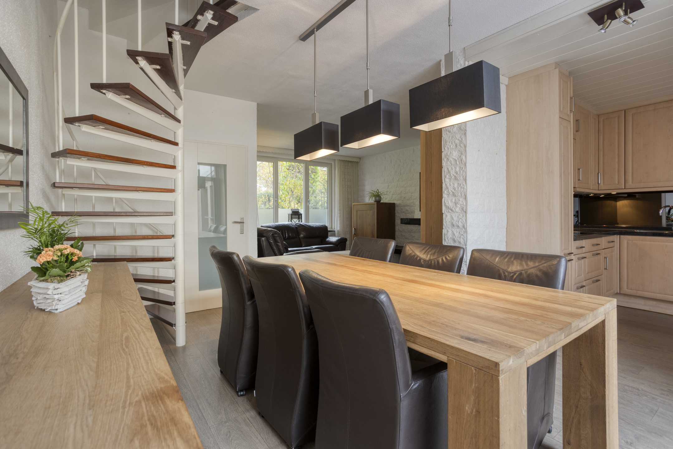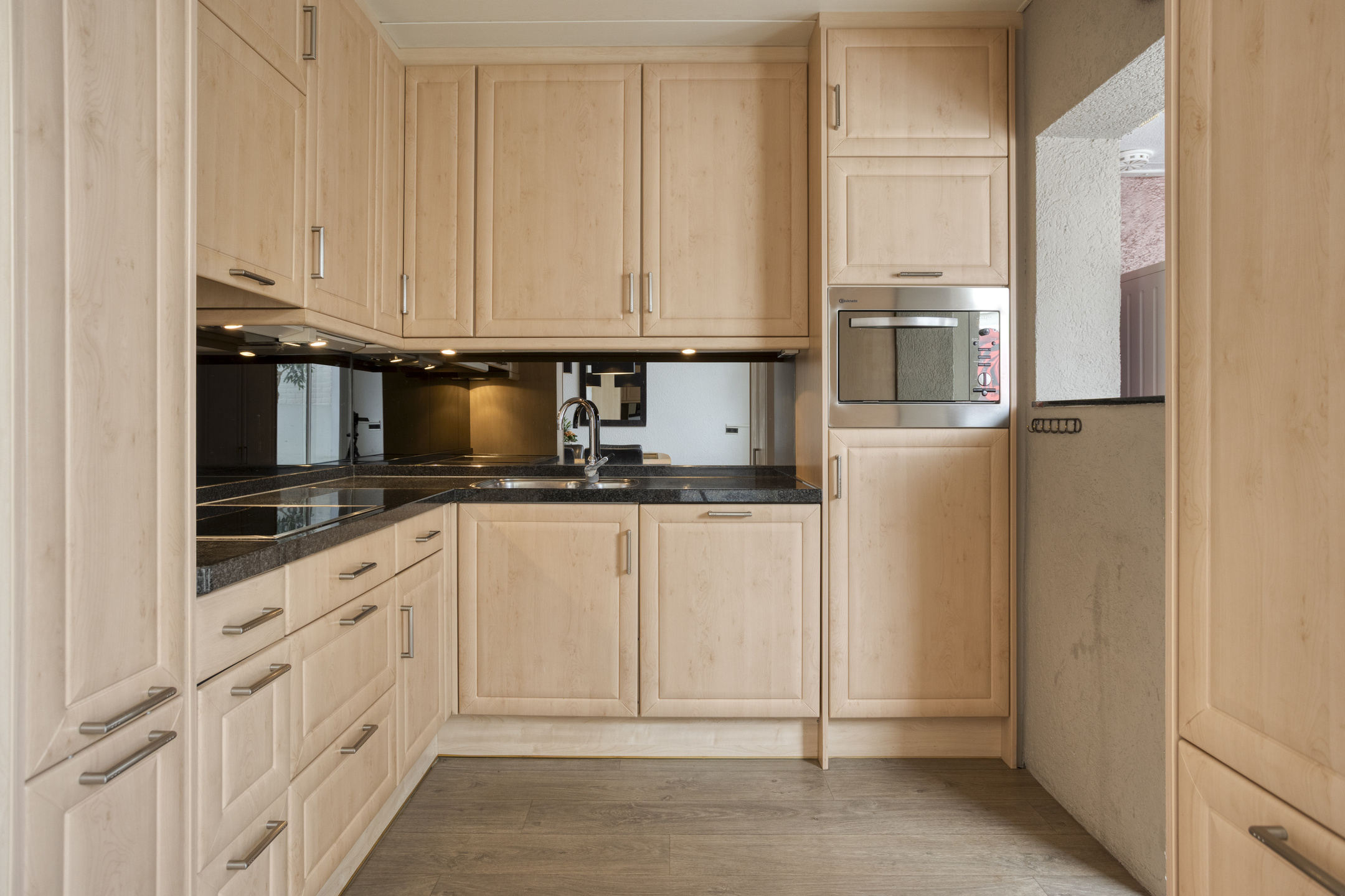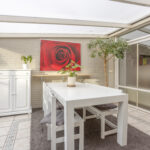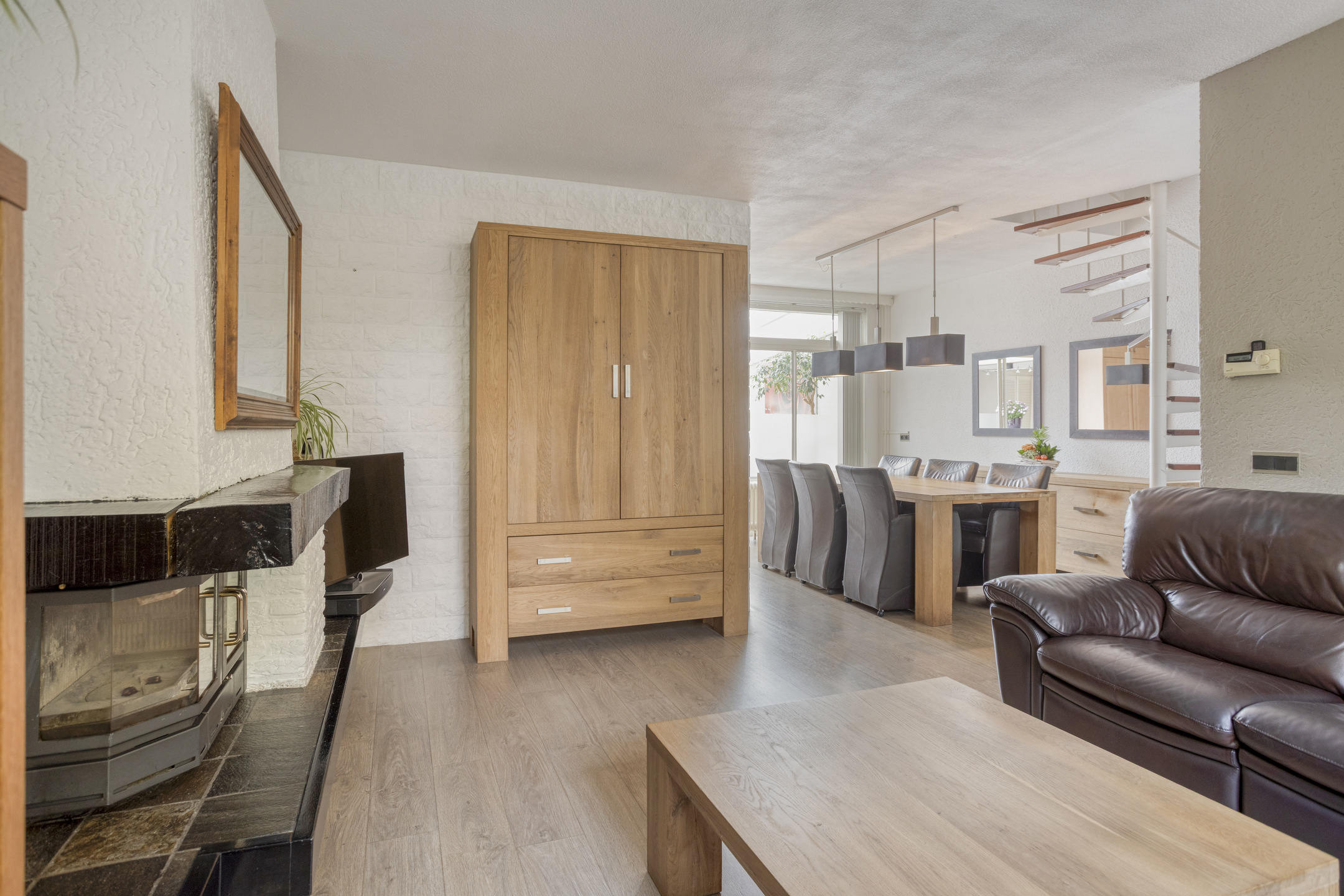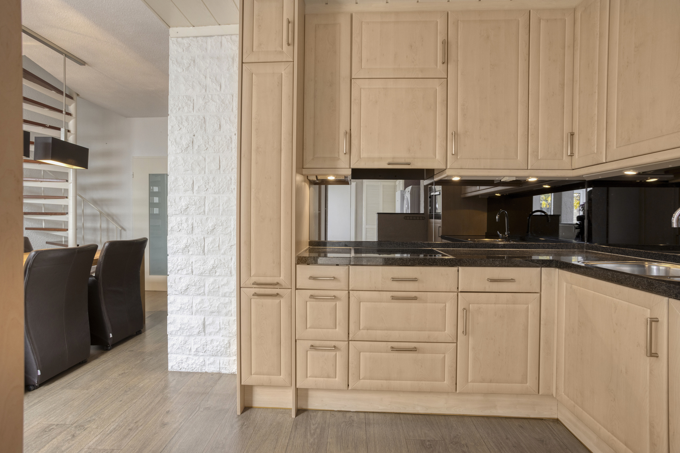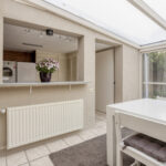 De keukenopstelling is voorzien van een koelkast, vaatwasser (2024), combioven, inductiekookplaat (2023), afzuigkap, close-in boiler en apothekerskast.