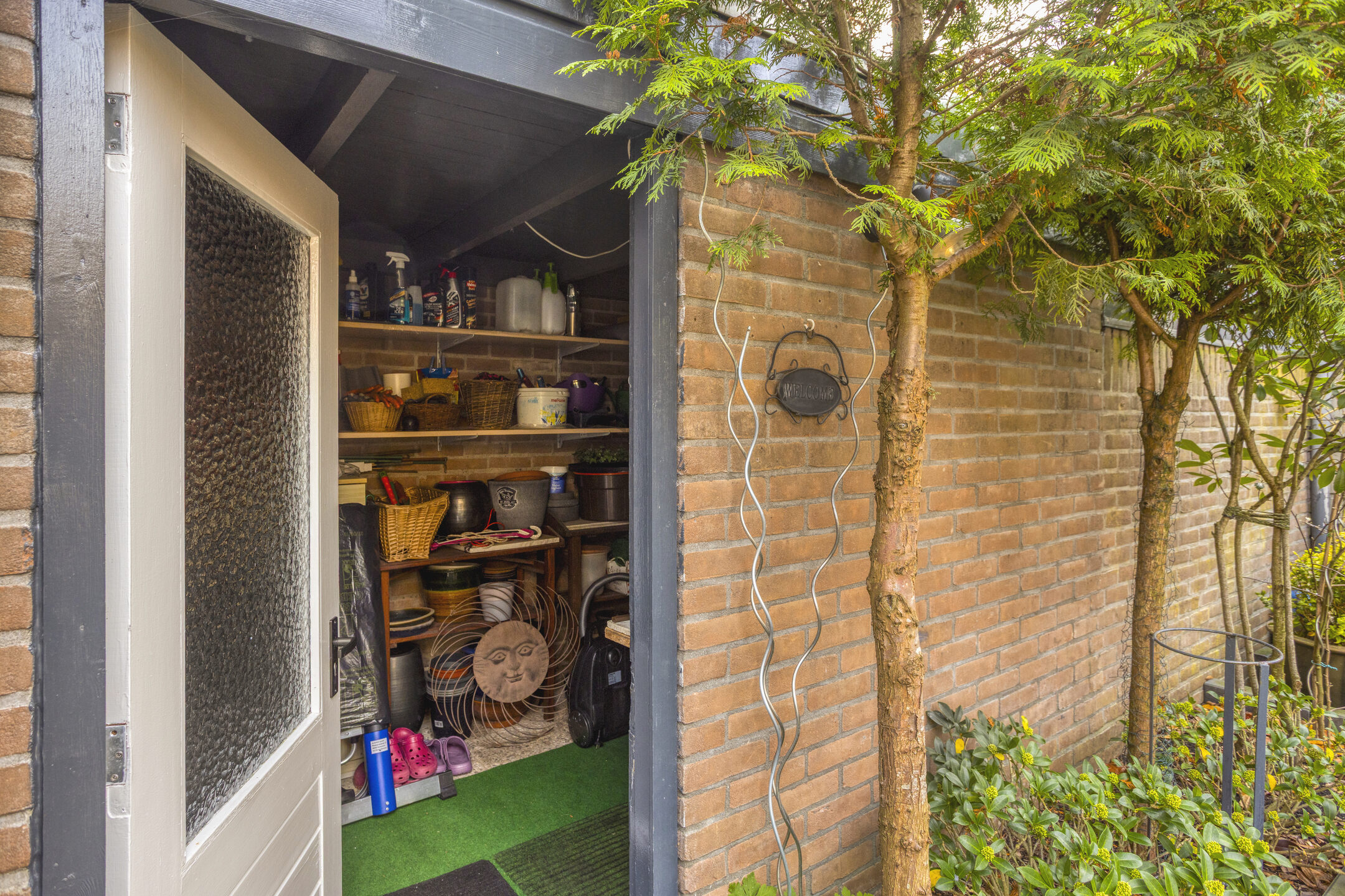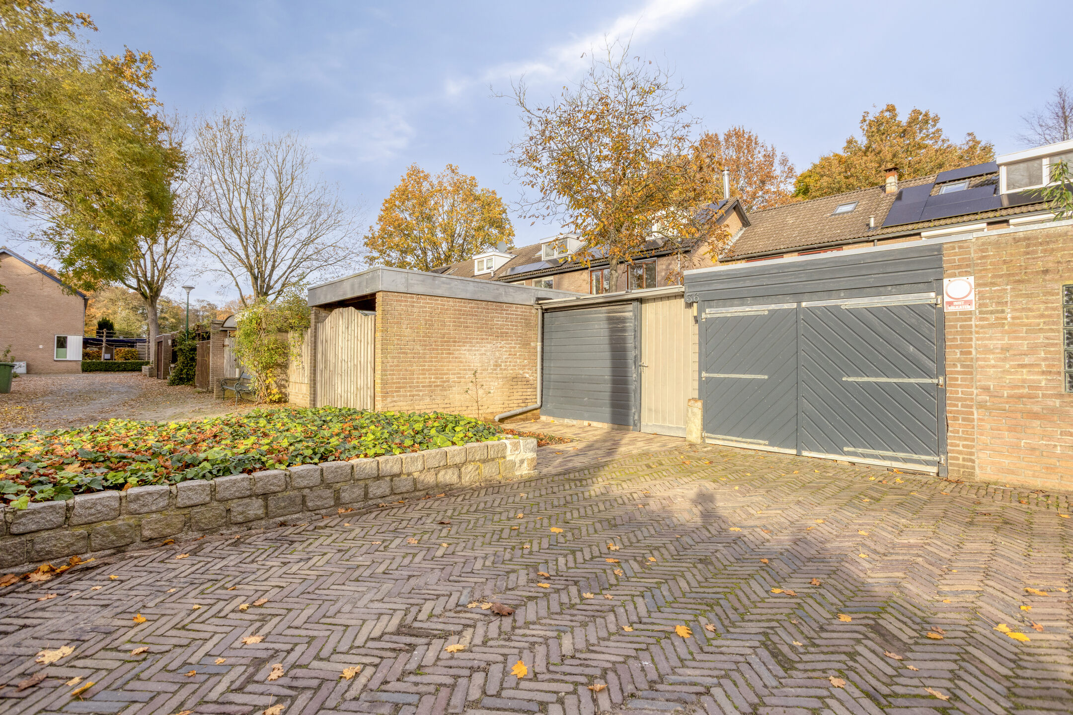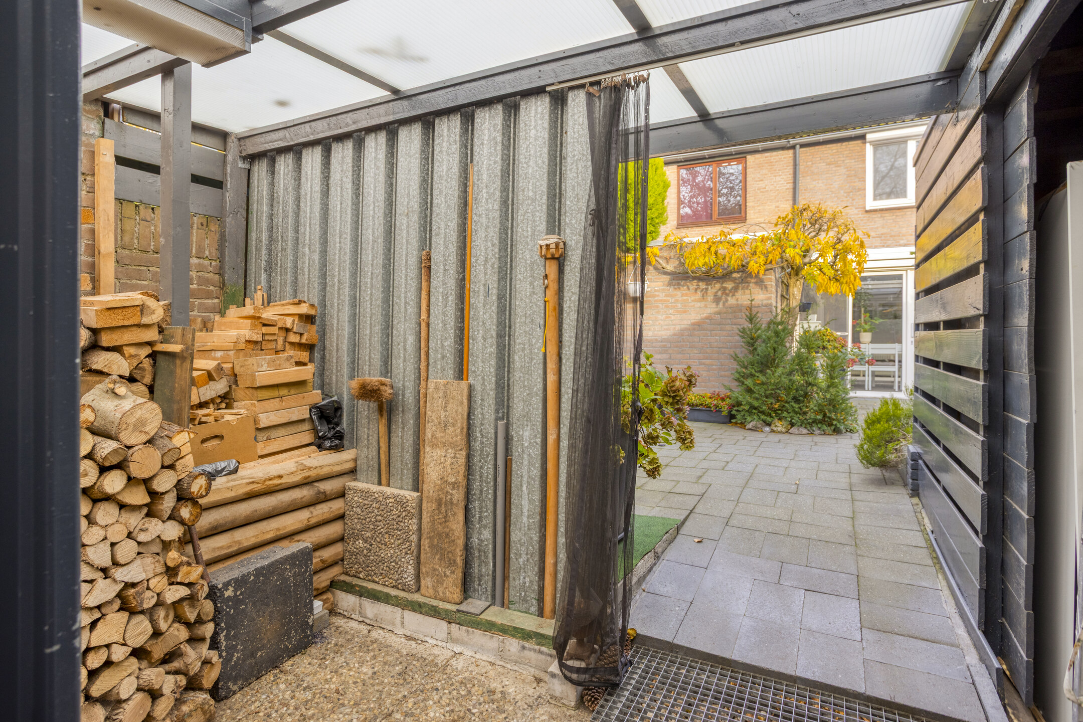 De stenen berging is voorzien van elektra, de carport is voorzien van openslaande deuren.