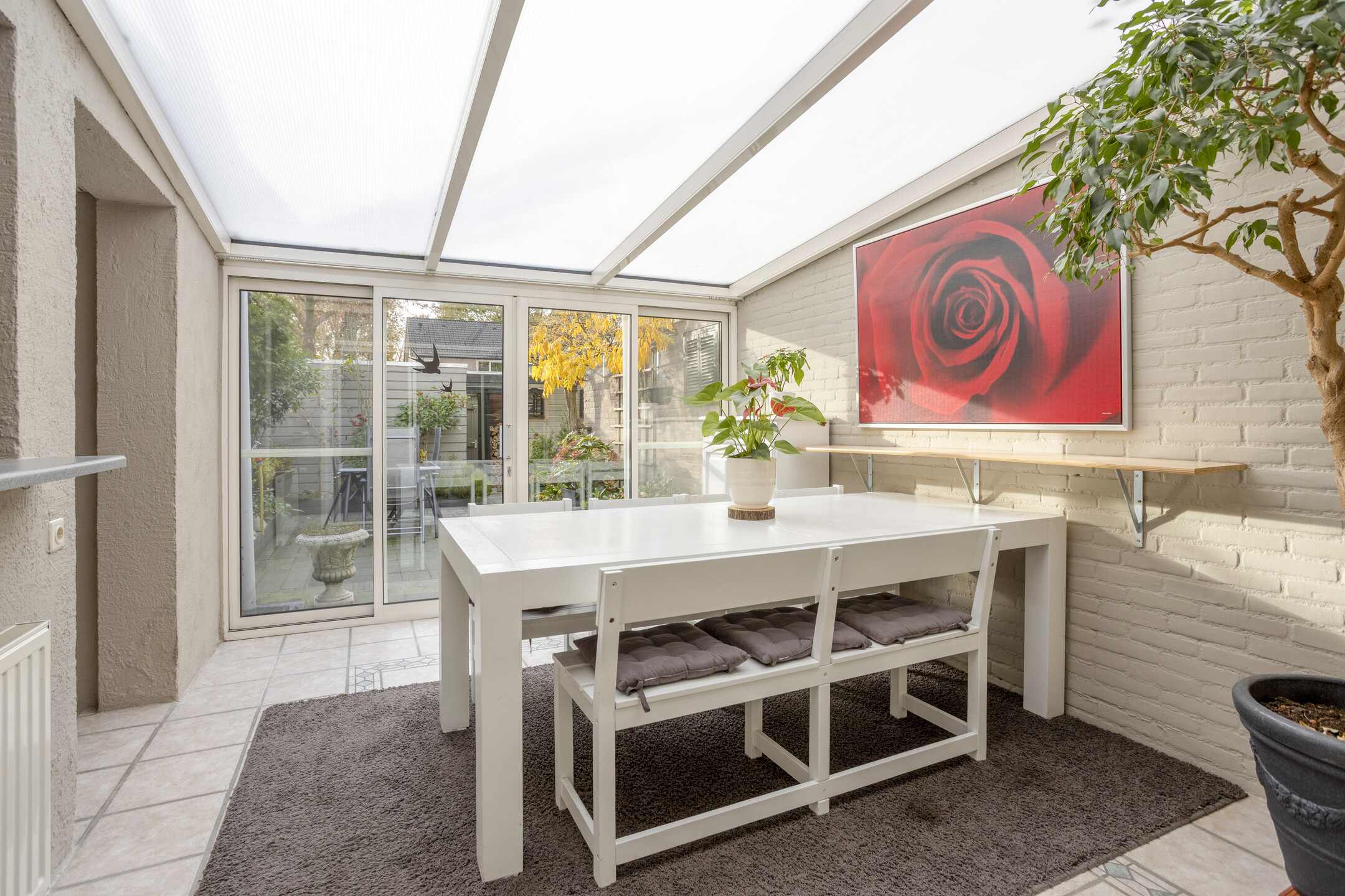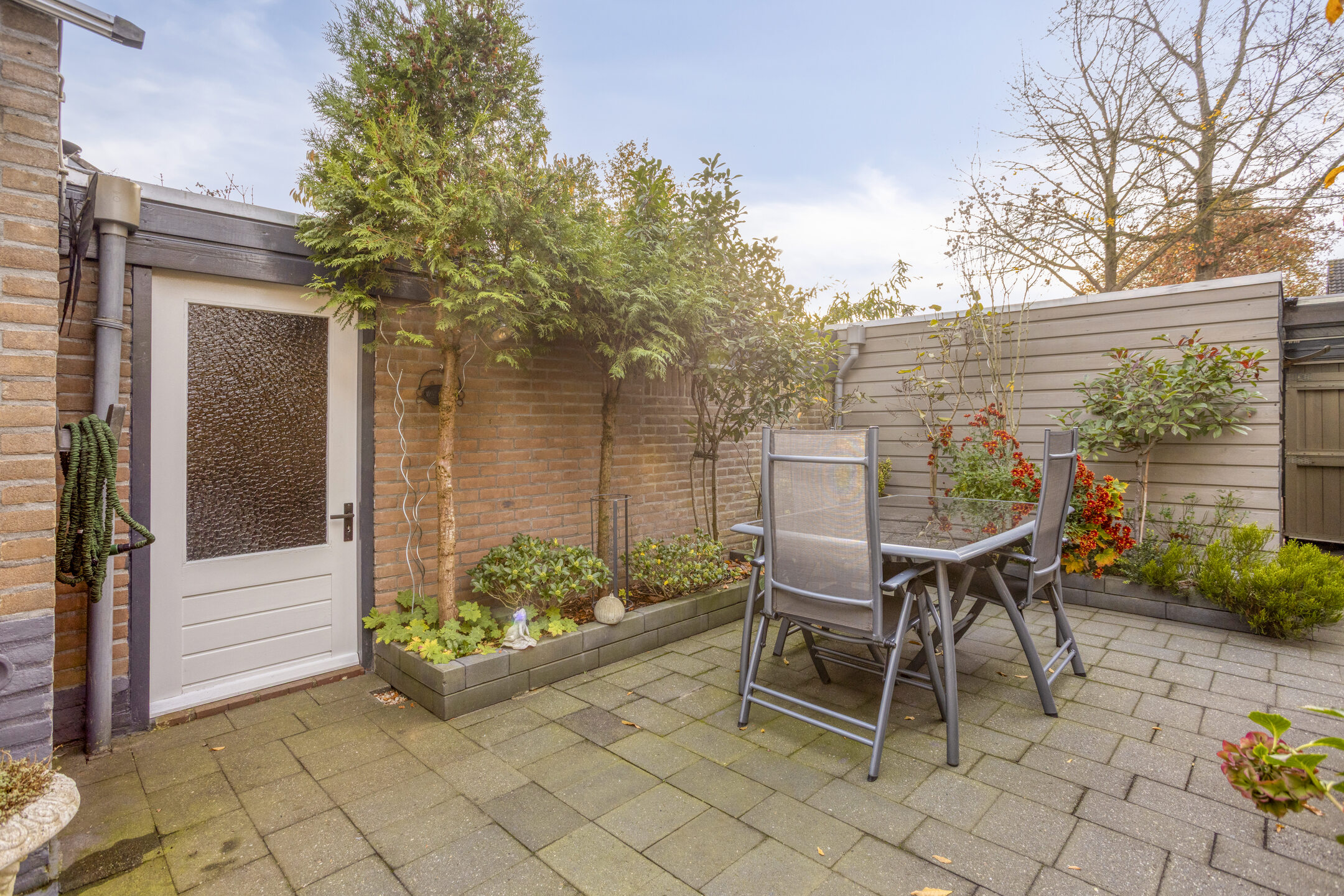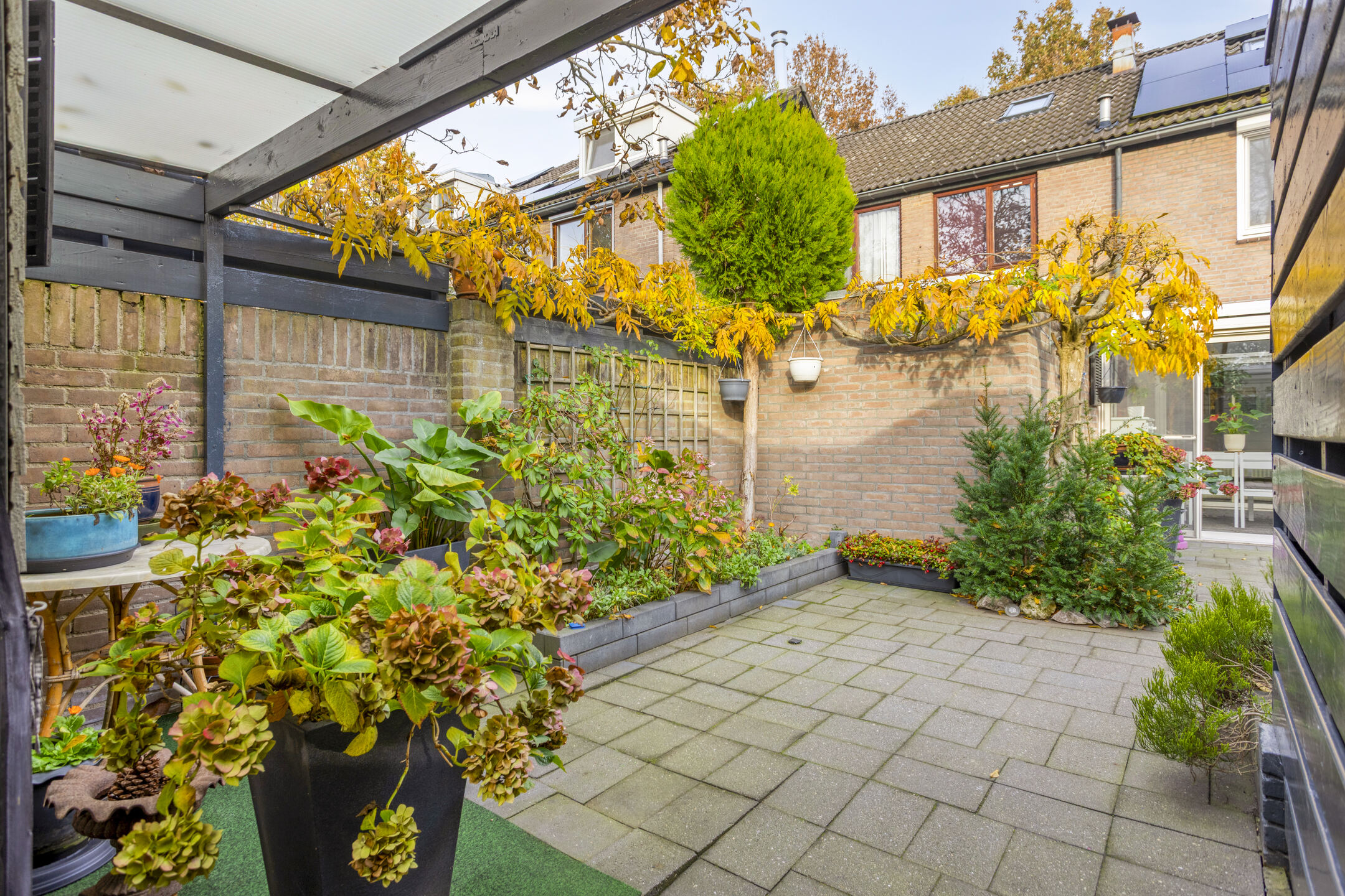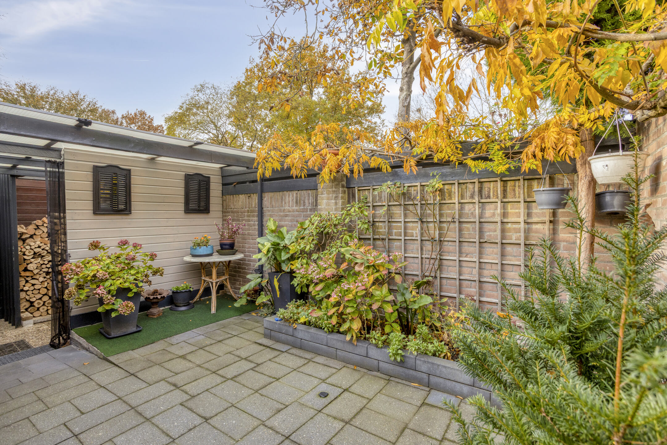De stenen berging is voorzien van elektra, de carport is voorzien van openslaande deuren.