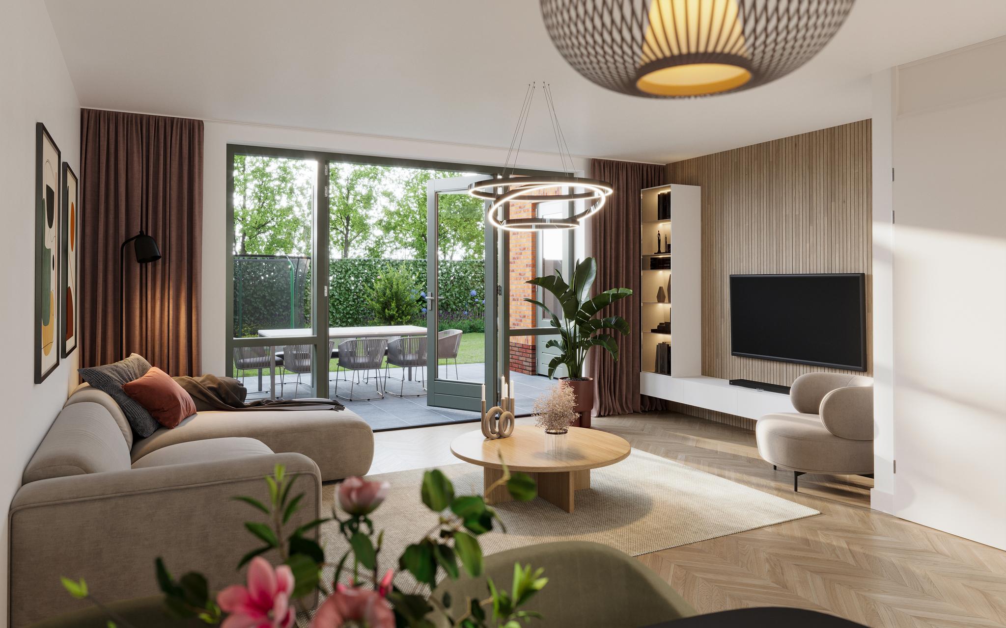 • Heerlijke woonkamer met dubbel openslaande deuren richting de achtertuin.