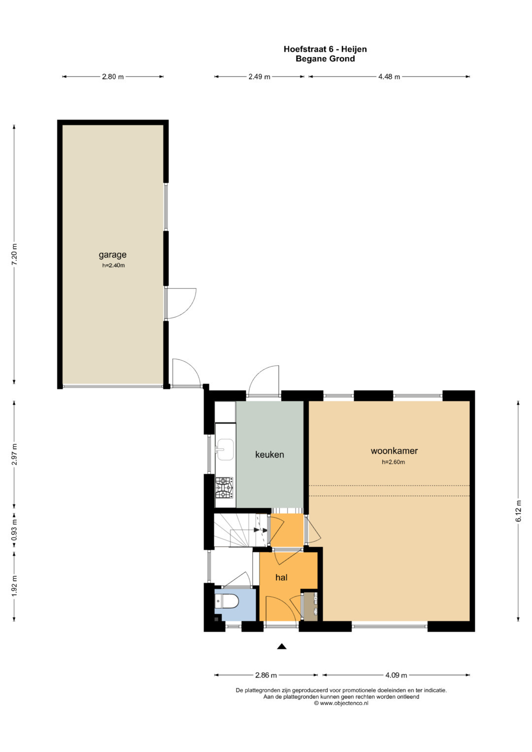 Begane grond: hal, toilet, kelderkast, een dichte keuken met een functionele keukenopstelling voorzien van inbouwapparatuur, doorzonwoonkamer.