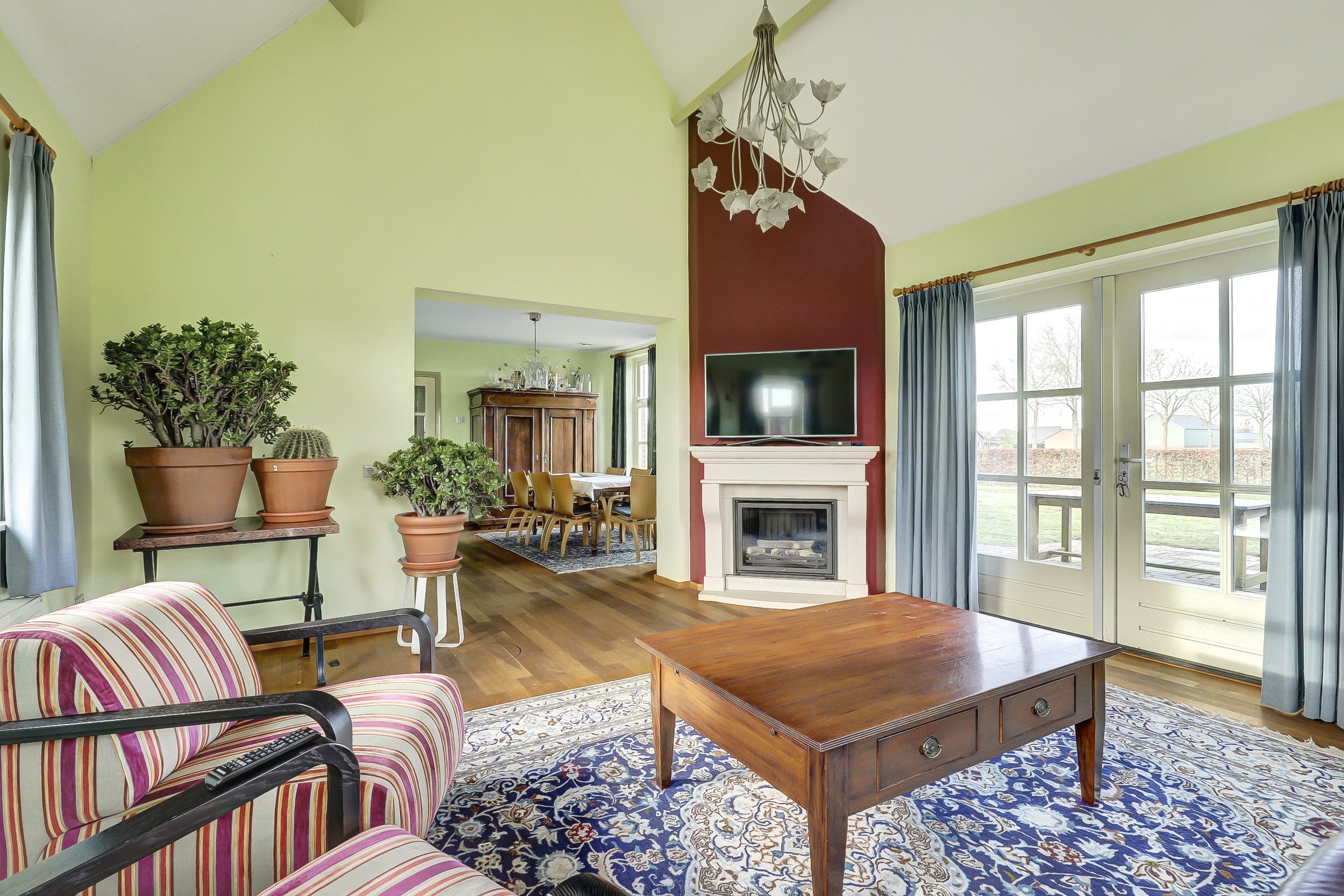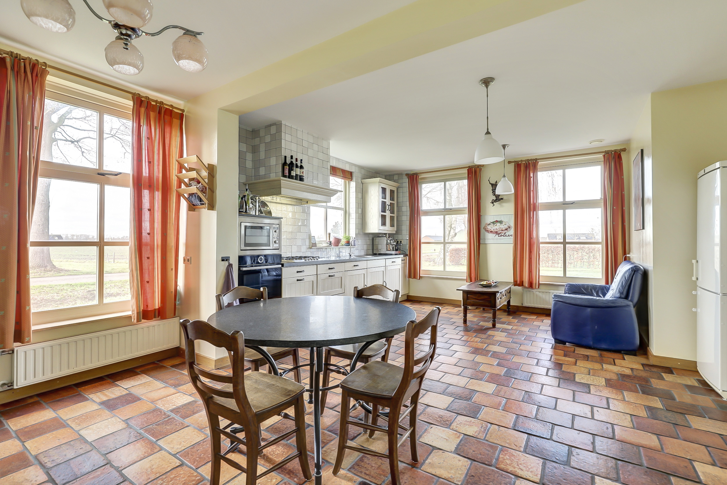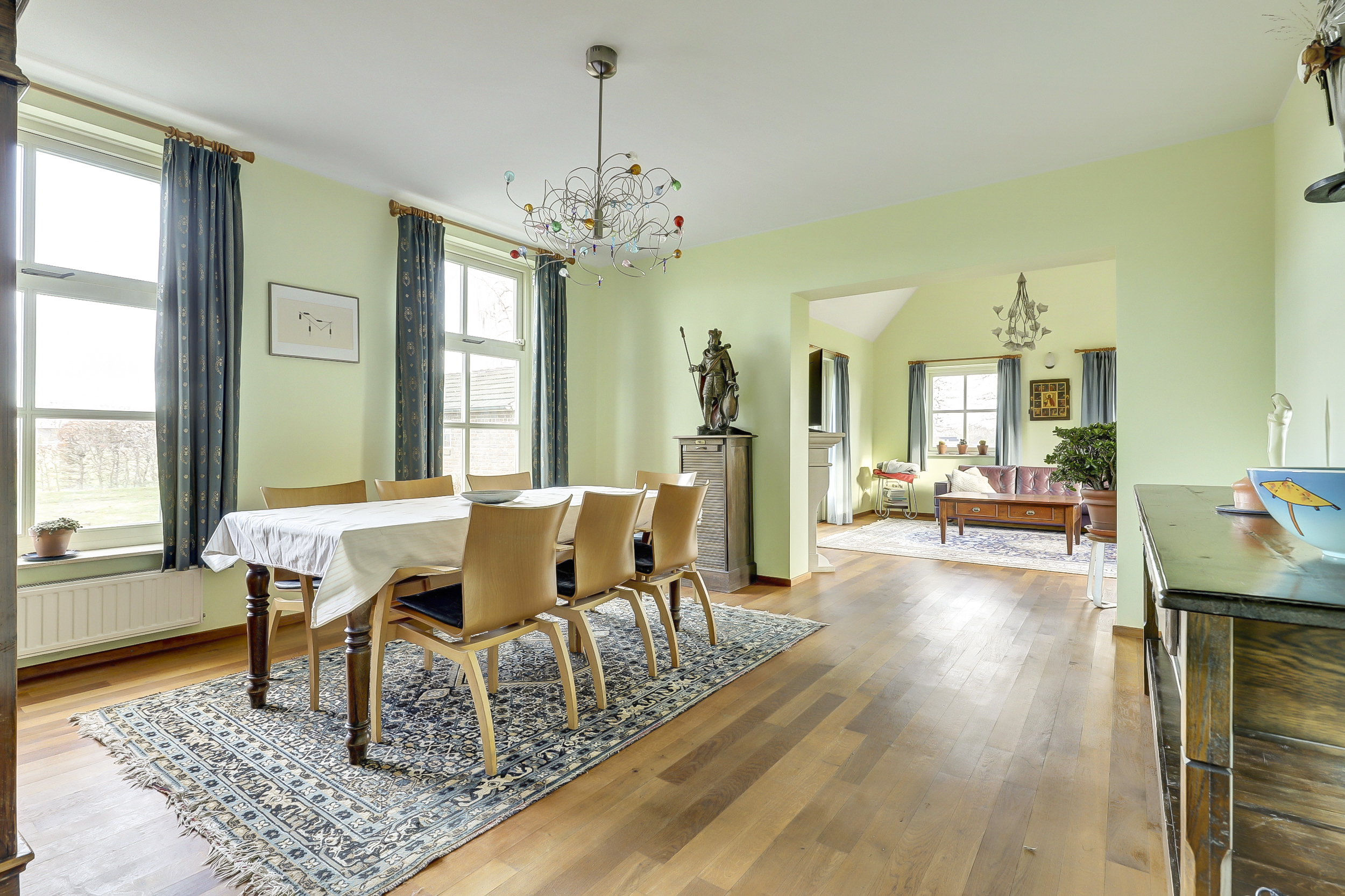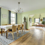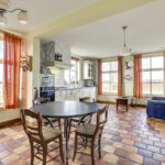 Begane grond: hal met meterkast en toilet met wandcloset en fonteintje. Een zeer ruime woonkamer die opgedeeld is een eetkamer en een zitkamer. Deze sfeervolle woonvertrekken…