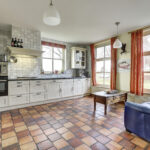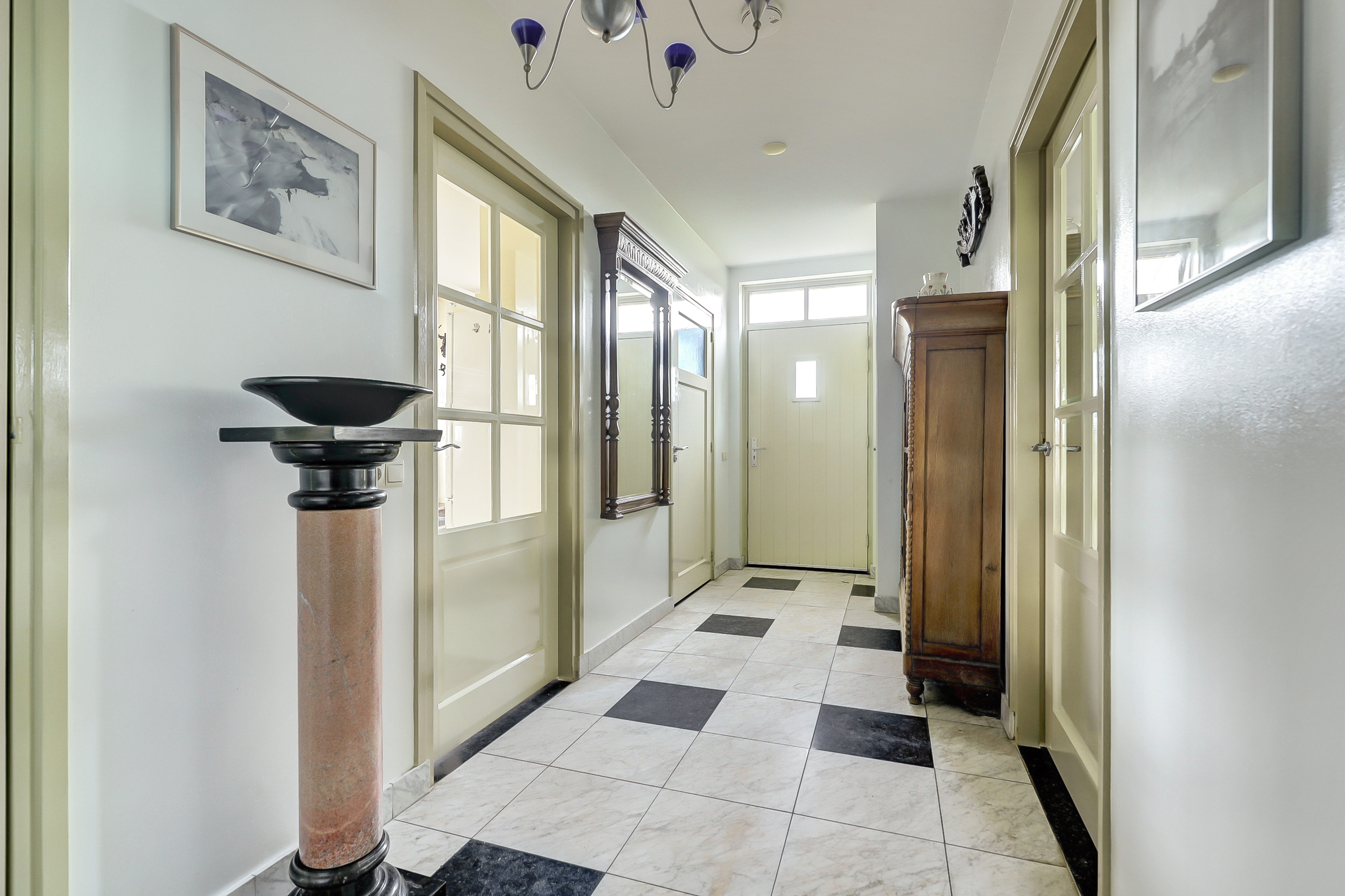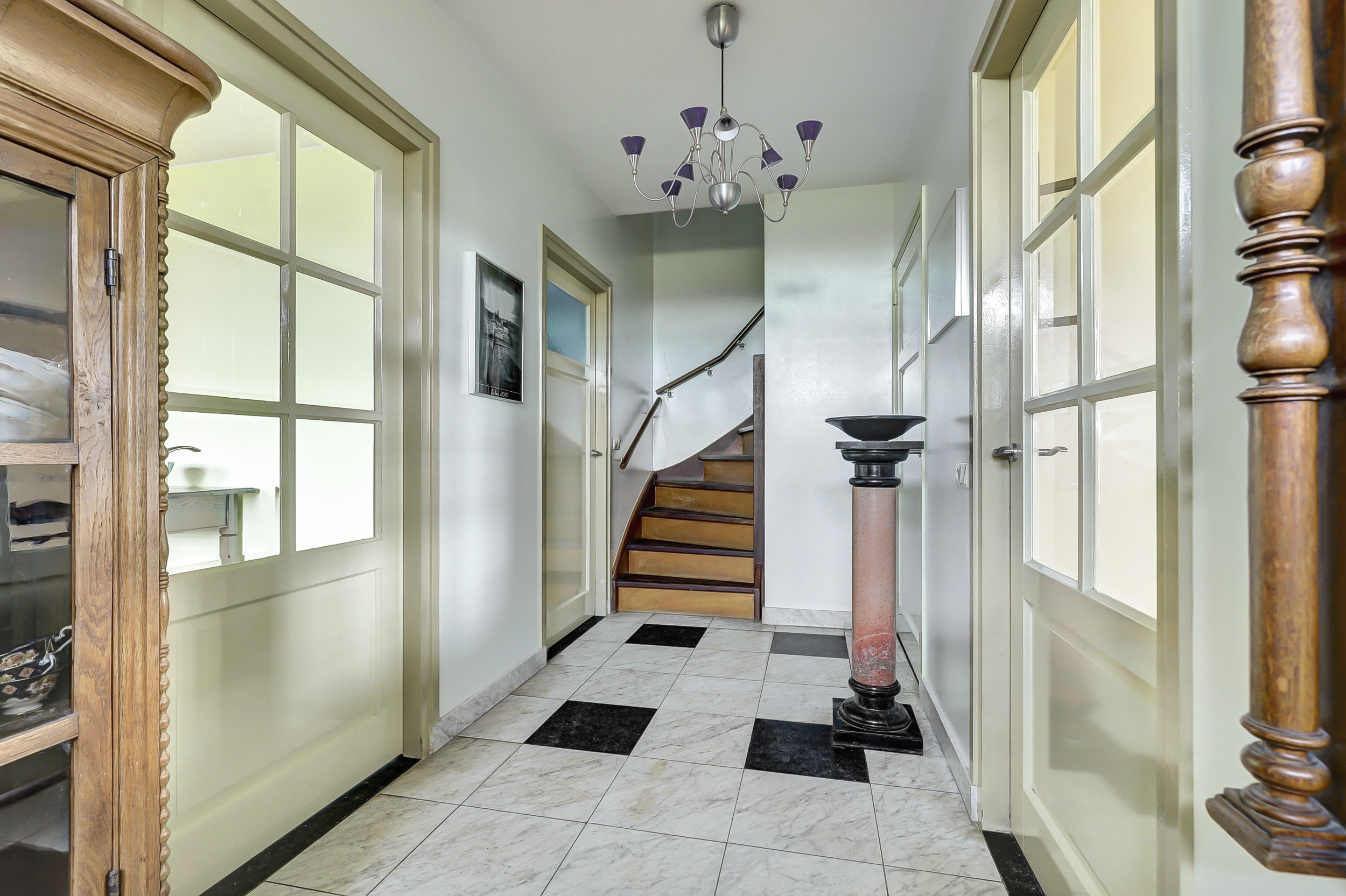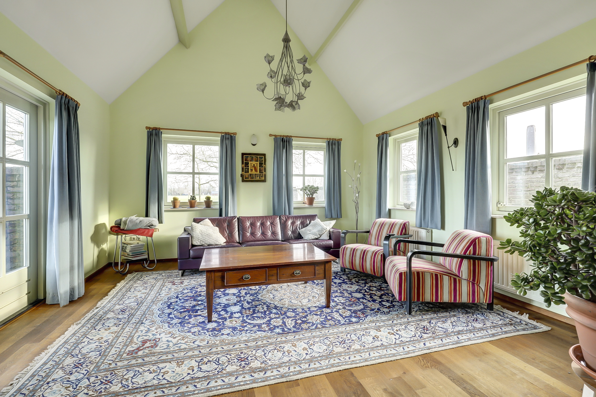 Begane grond: hal met meterkast en toilet met wandcloset en fonteintje. Een zeer ruime woonkamer die opgedeeld is een eetkamer en een zitkamer. Deze sfeervolle woonvertrekken…