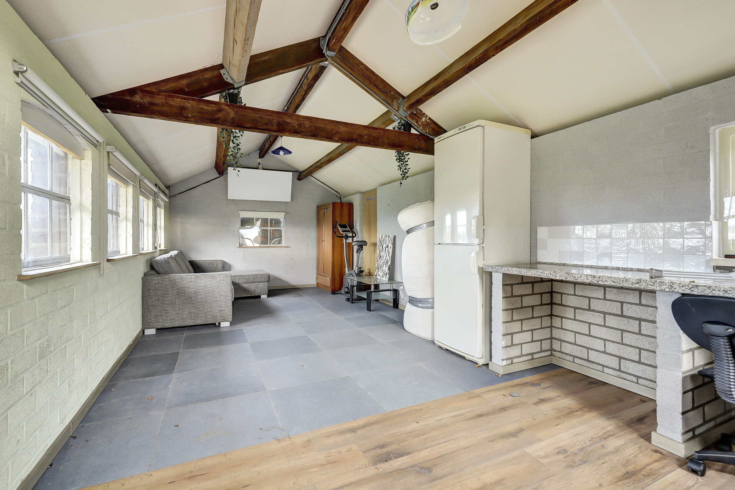 De 2 vrijstaande schuren zijn voorzien van elektra en water.
