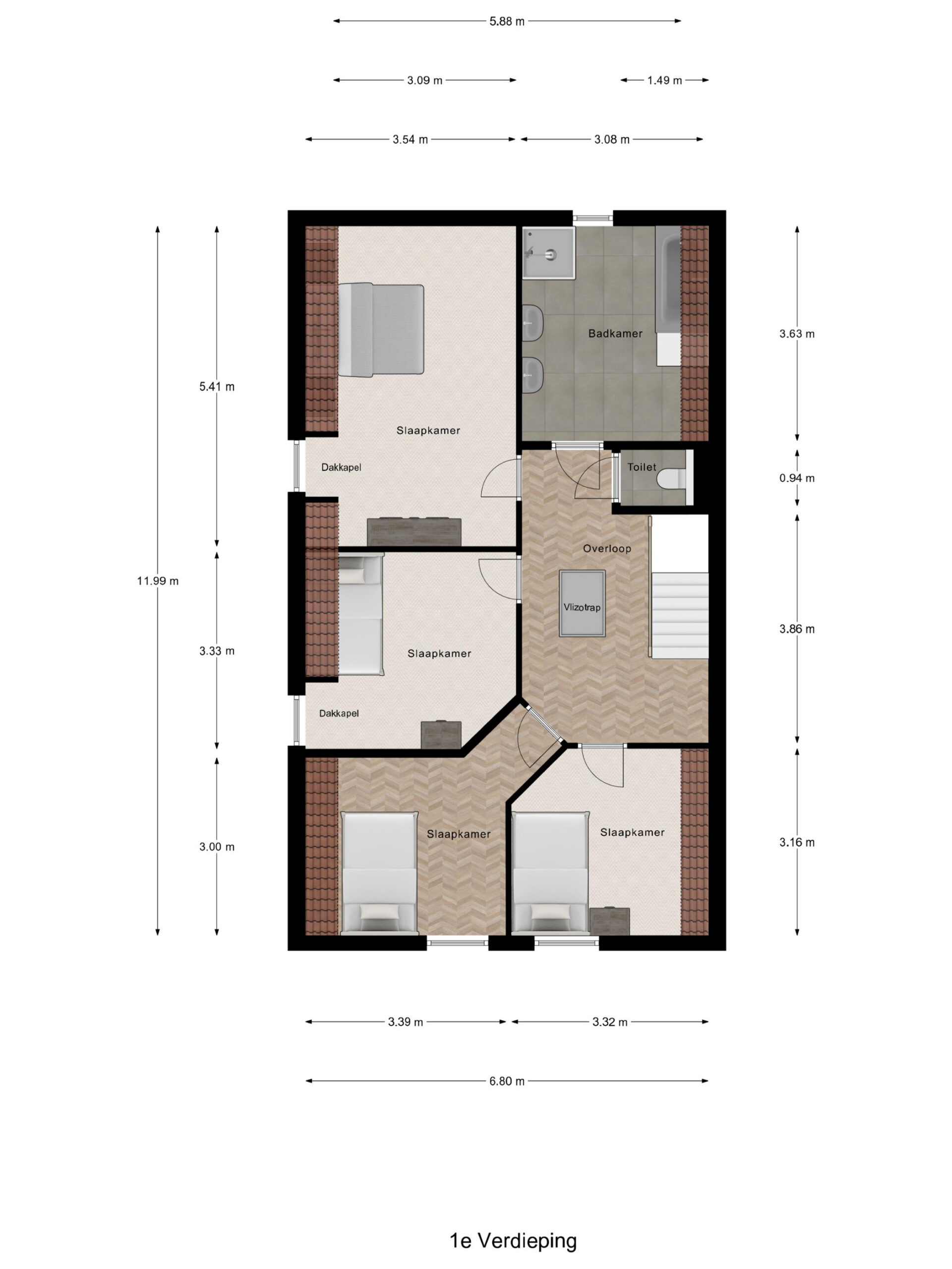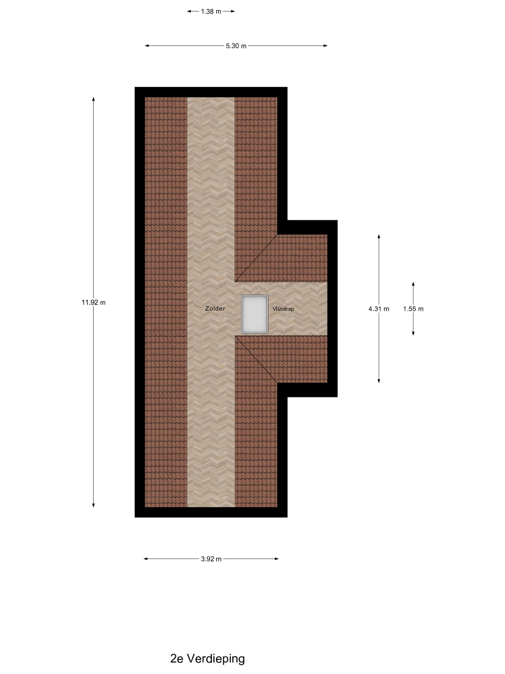 2e verdieping: via een vlizotrap bereikbare bergzolder.