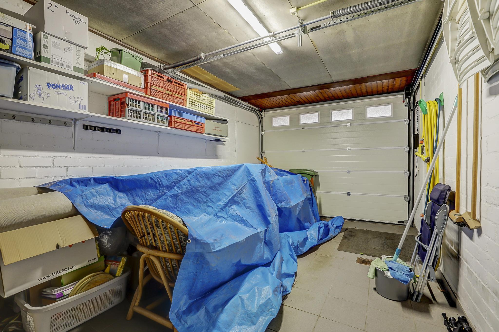 De houten berging is voorzien van elektra, de inpandige garage is voorzien van elektra, verwarming, water en een elektrische roldeur.