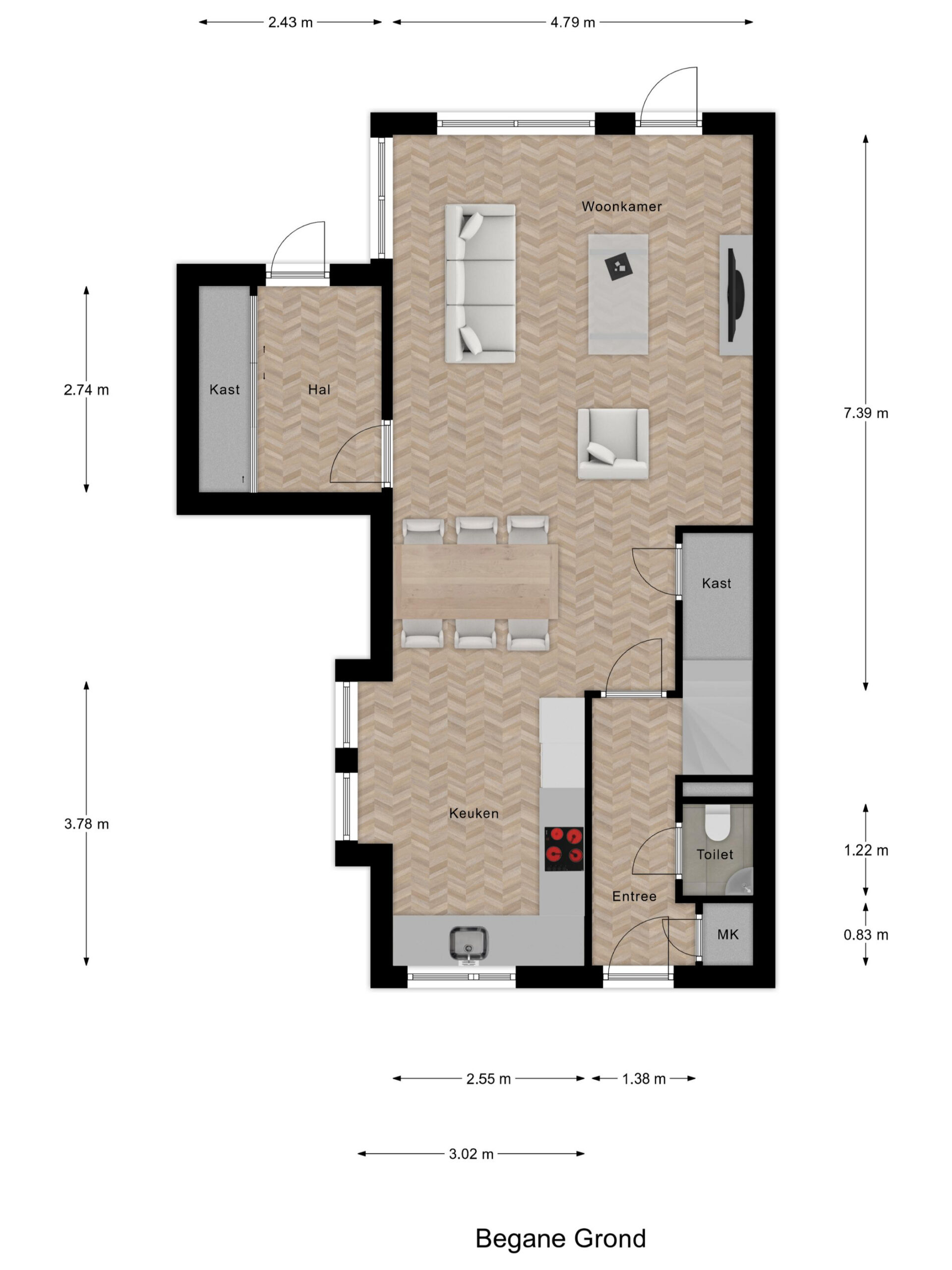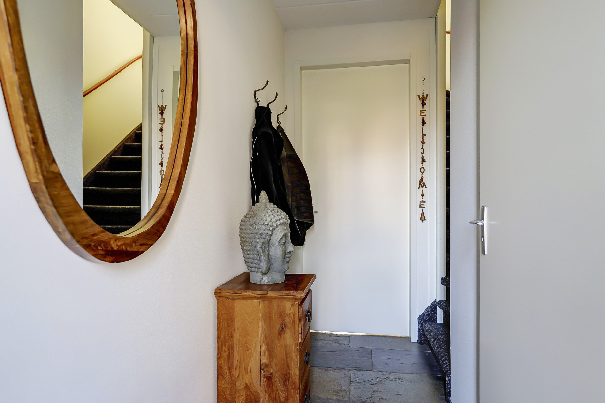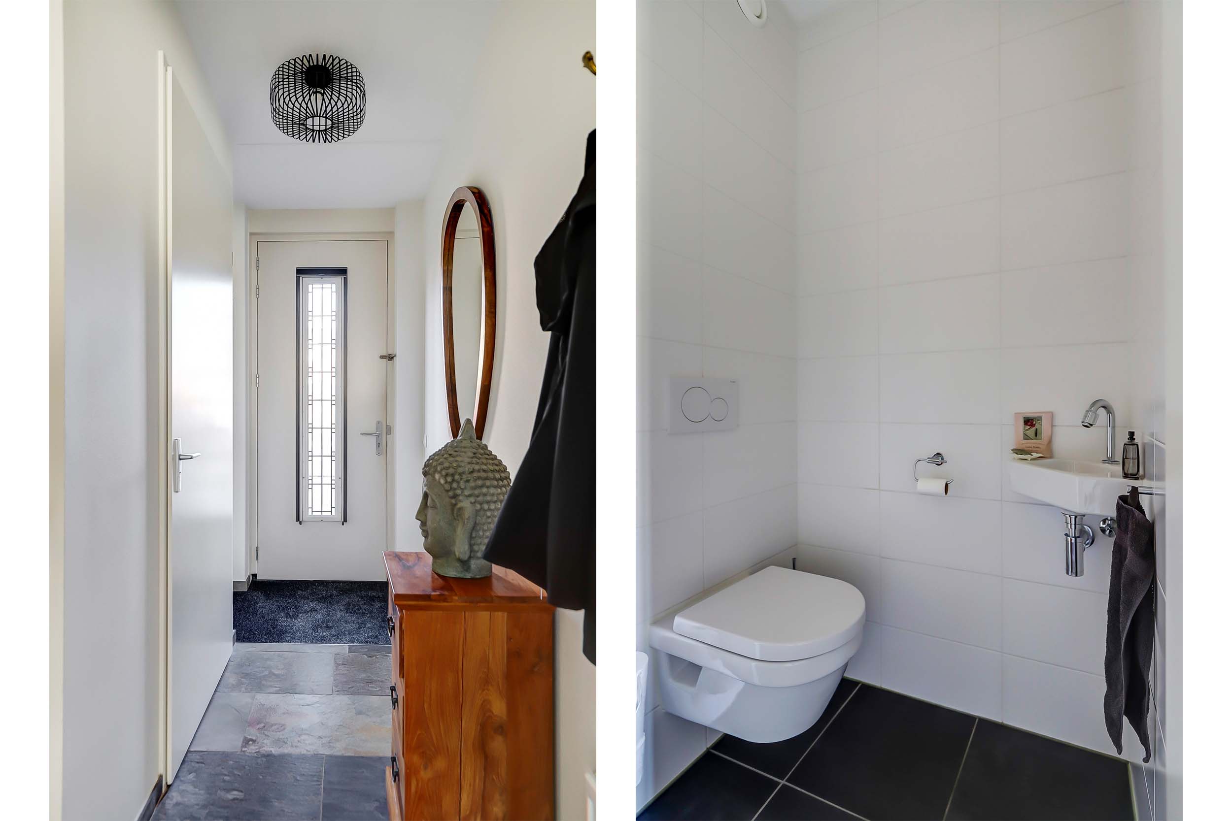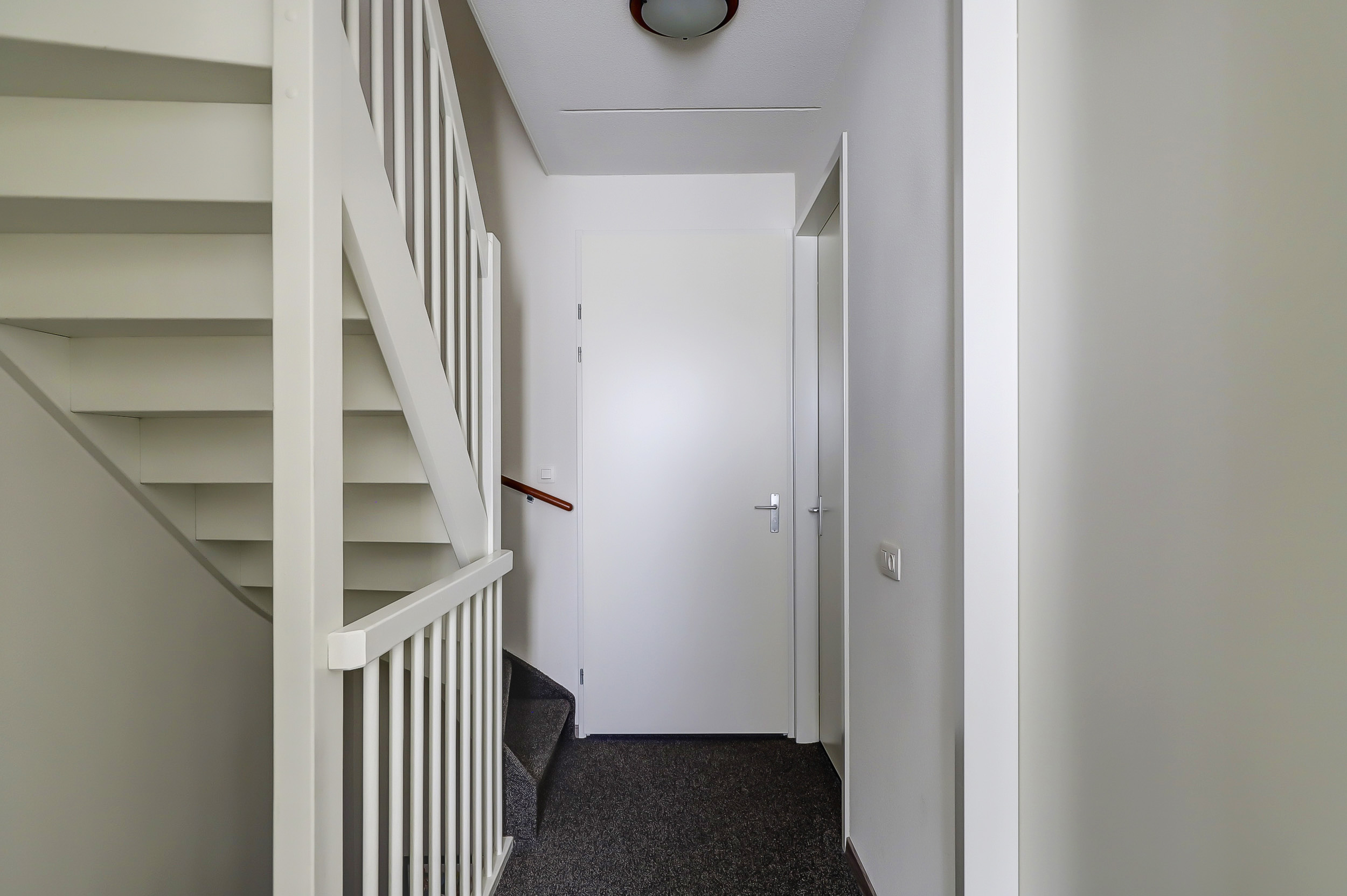 Begane grond: hal met meterkast en toiletruimte voorzien van wandcloset en fonteintje. Een ruime, lichte woonkamer met grote raampartij aan de achterzijde, moderne open keuken voorzien van de benodigde inbouwapparatuur, bijkeuken voorzien van een praktische schuifkastenwand.